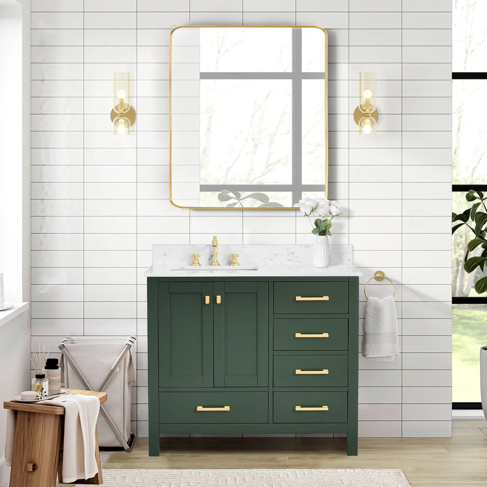 Green, Gold Trim, Carrara Cultured Marble Top