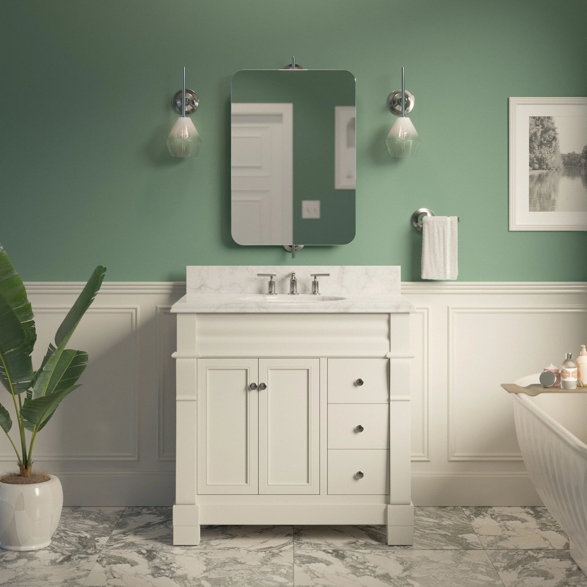 Green, Nickel Trim, Carrara Cultured Marble Top