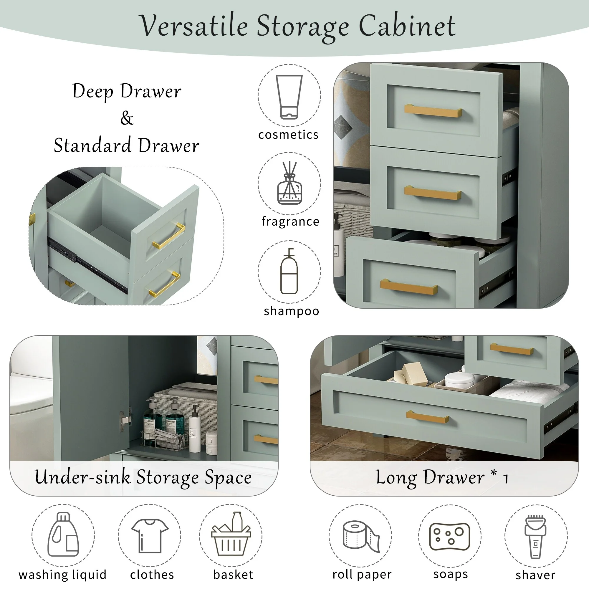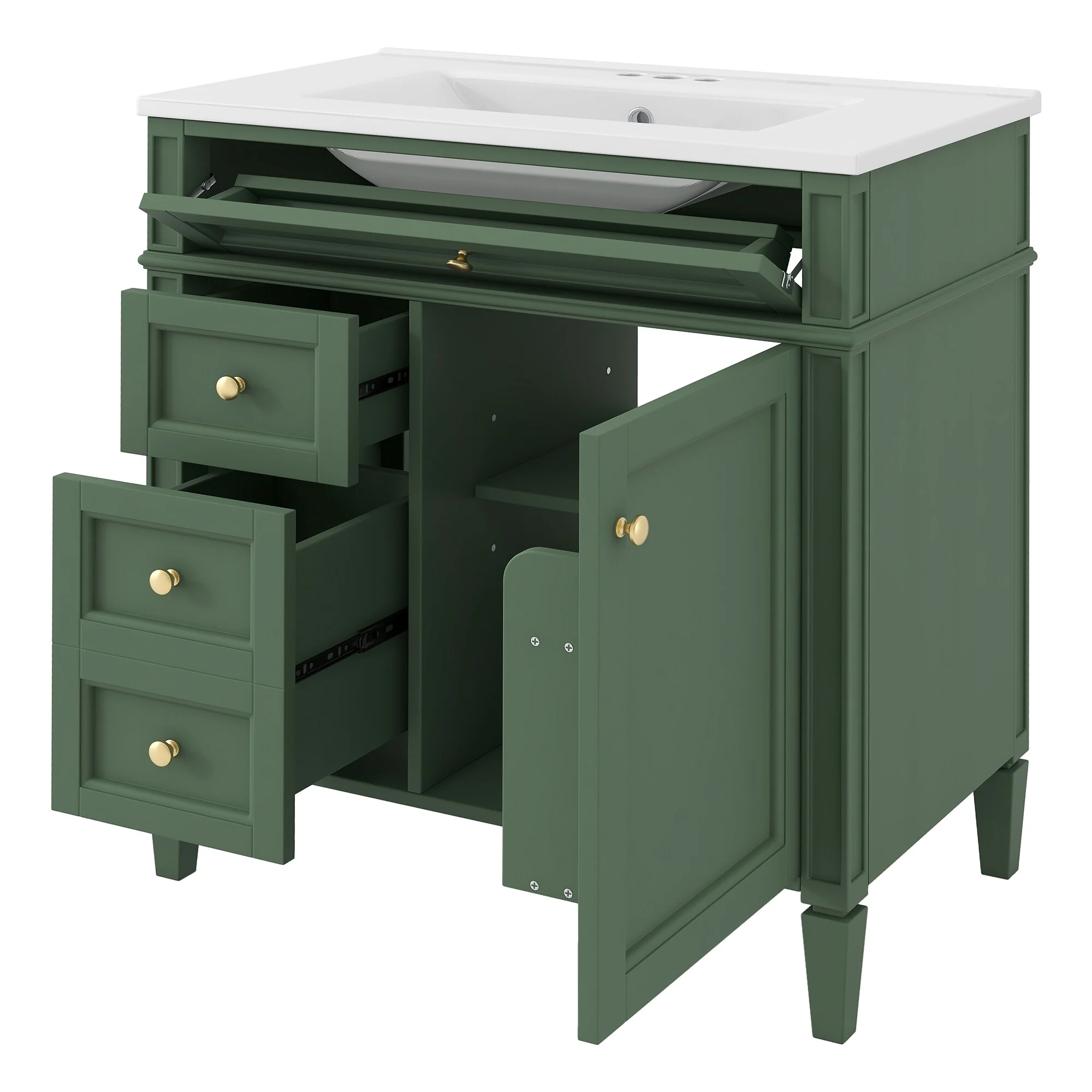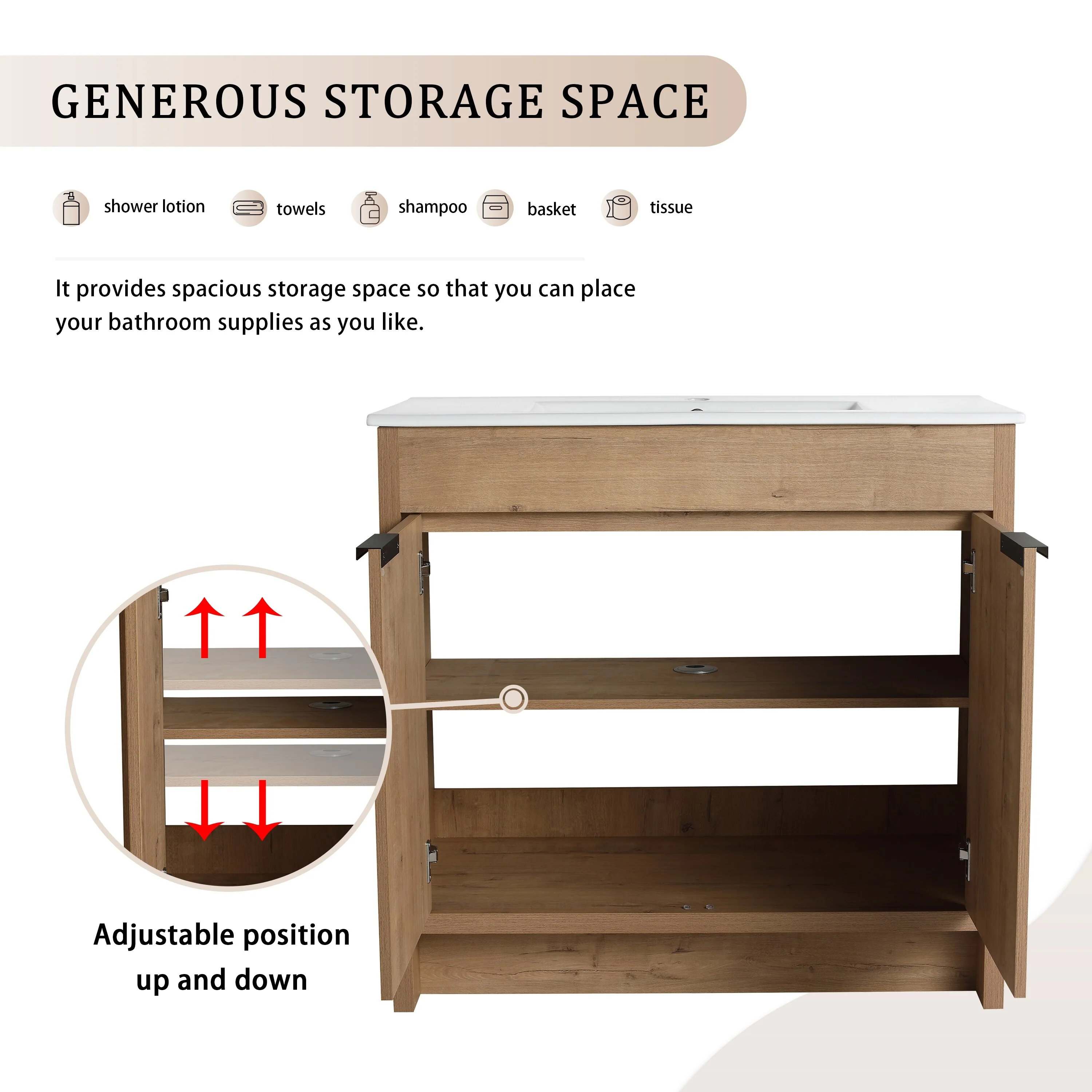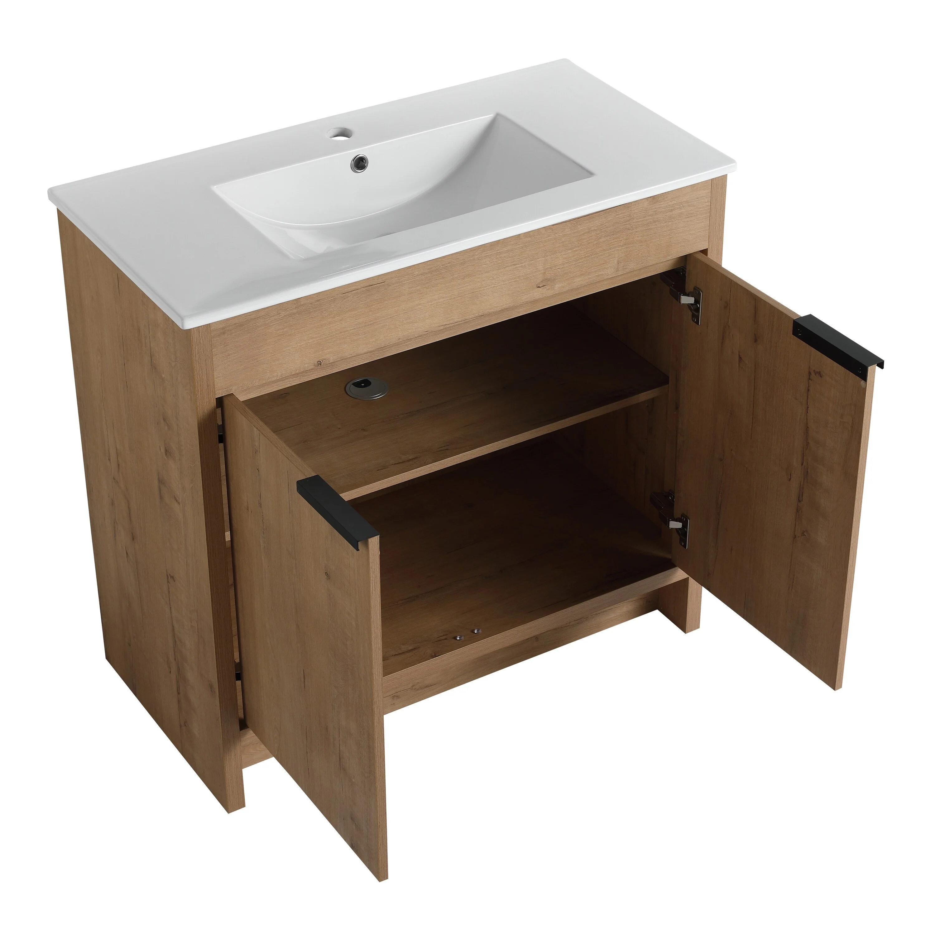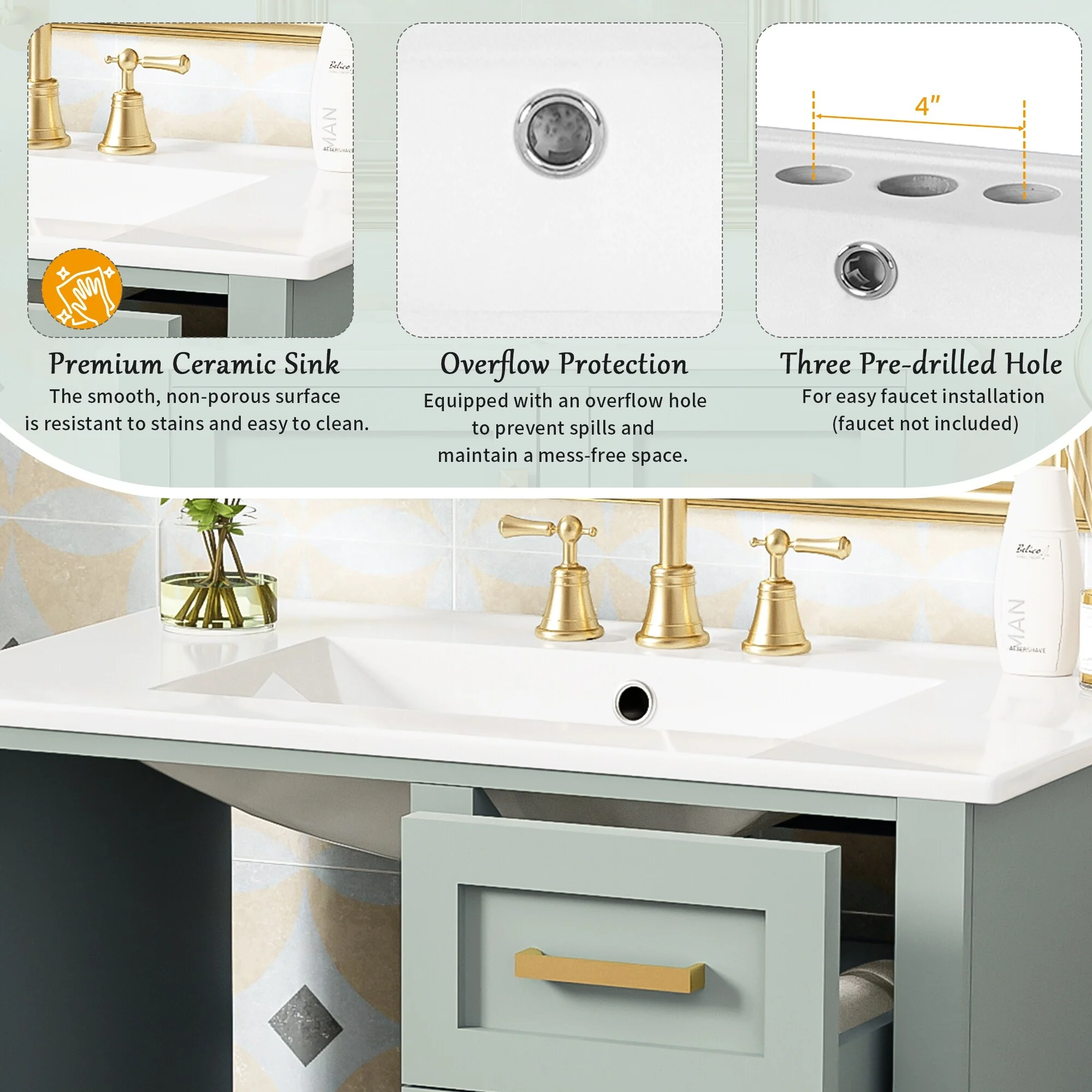 36" Bathroom Vanity with Ceramic Sink, Standard and Double-Layer Drawers, Soft Close Doors, Adjustable Shelves