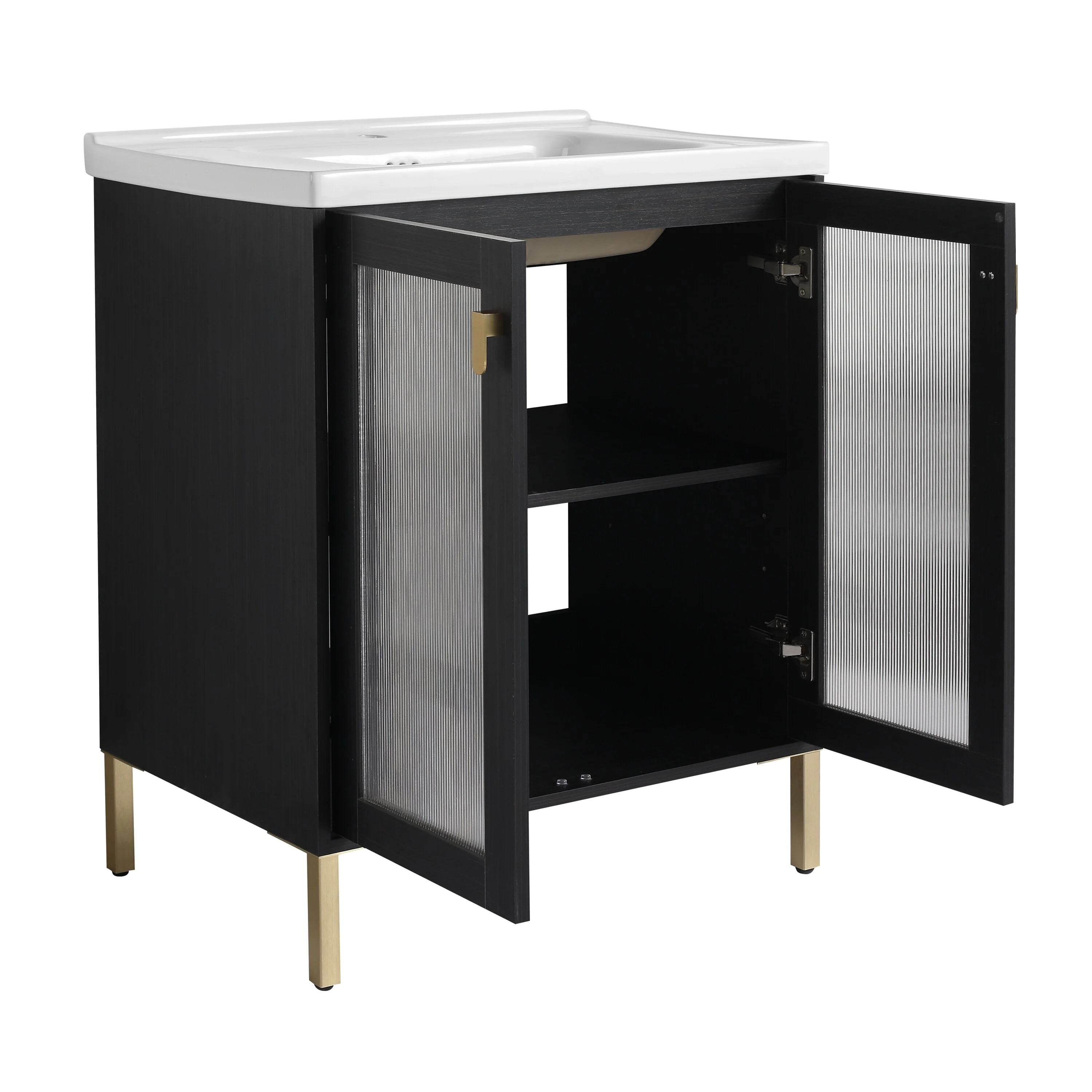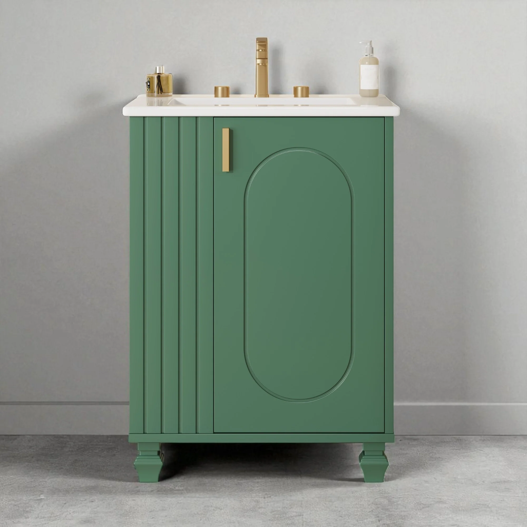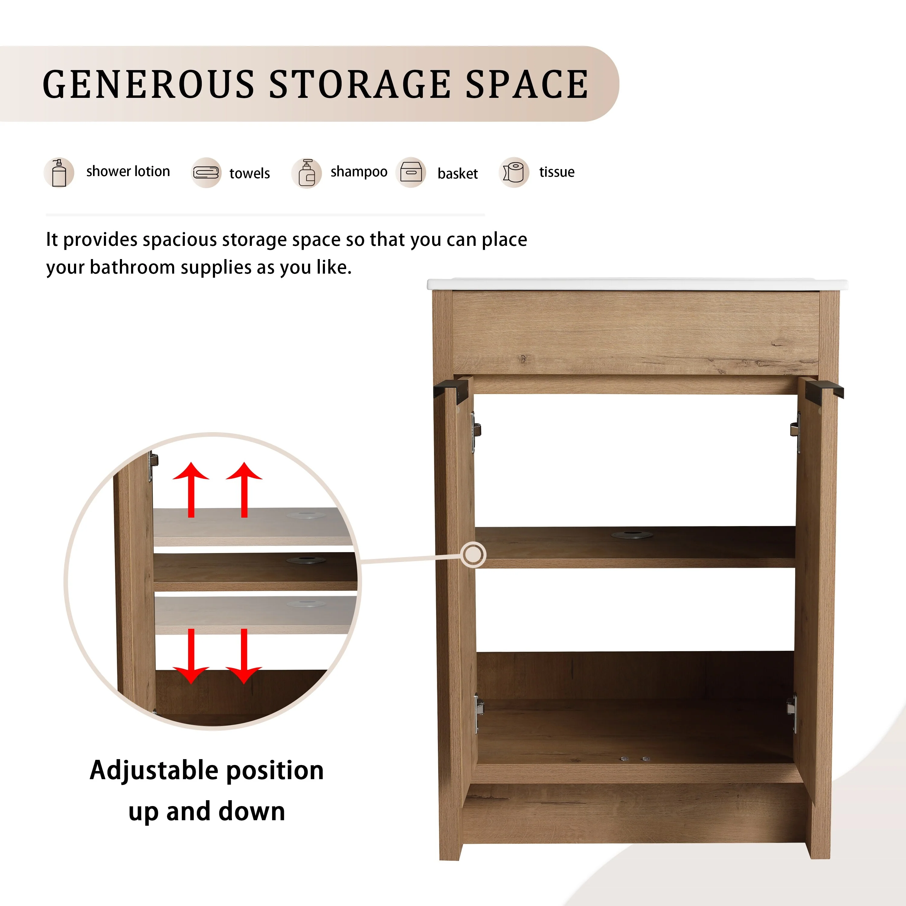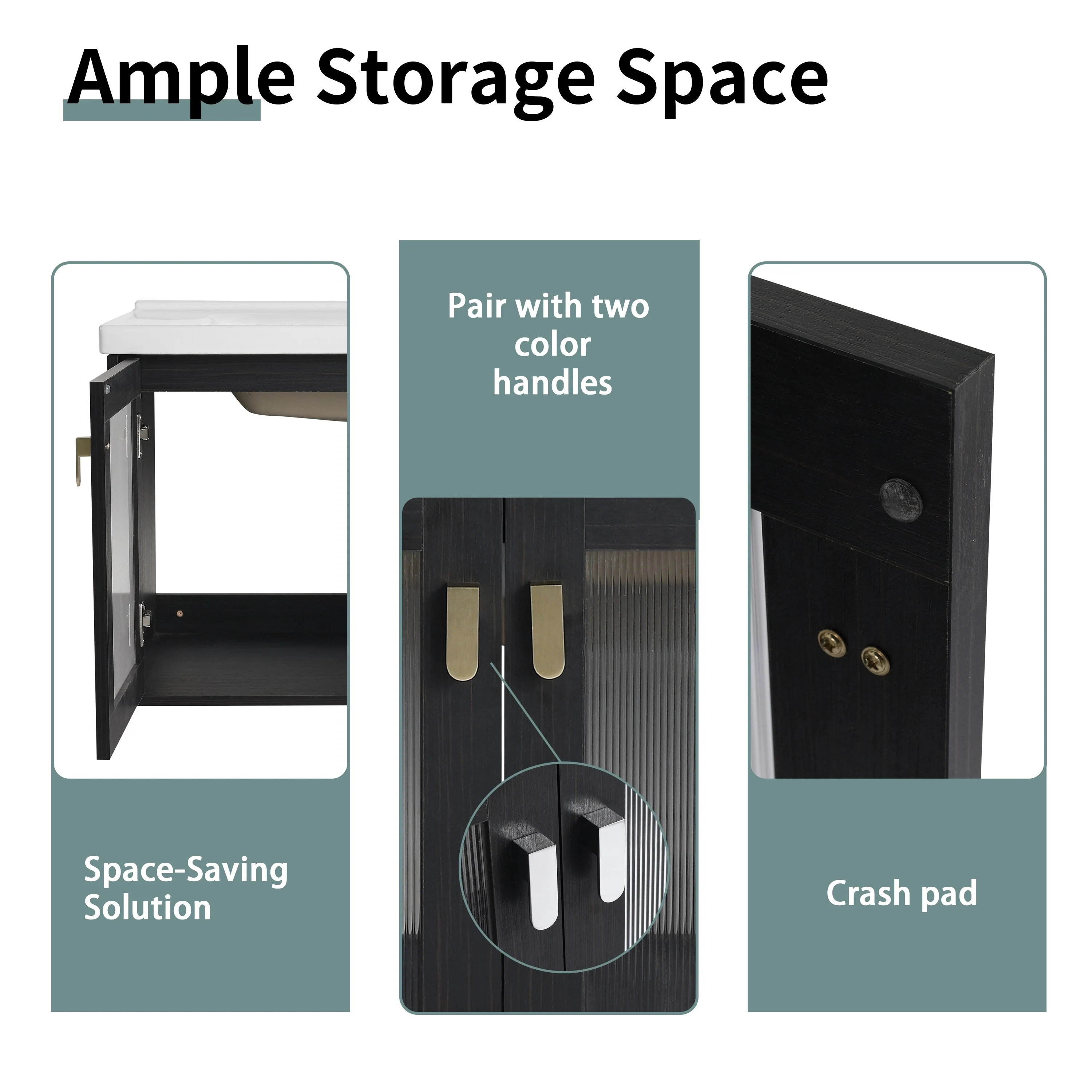 24" Bathroom Vanity with Ceramic Sink, Pine Wood Frame, Soft-Close Door & Side Open Storage