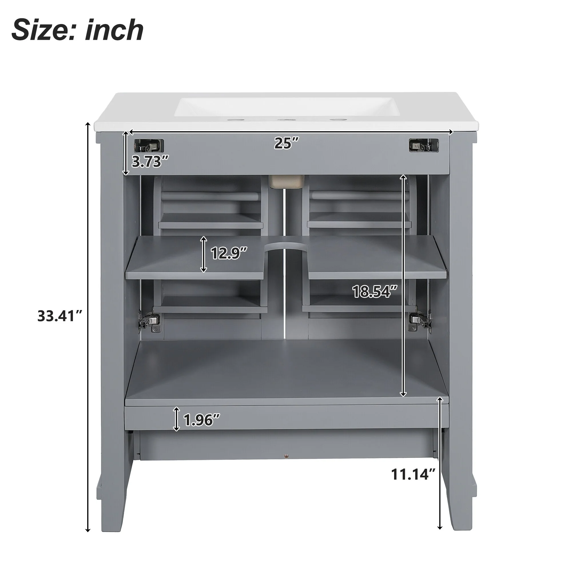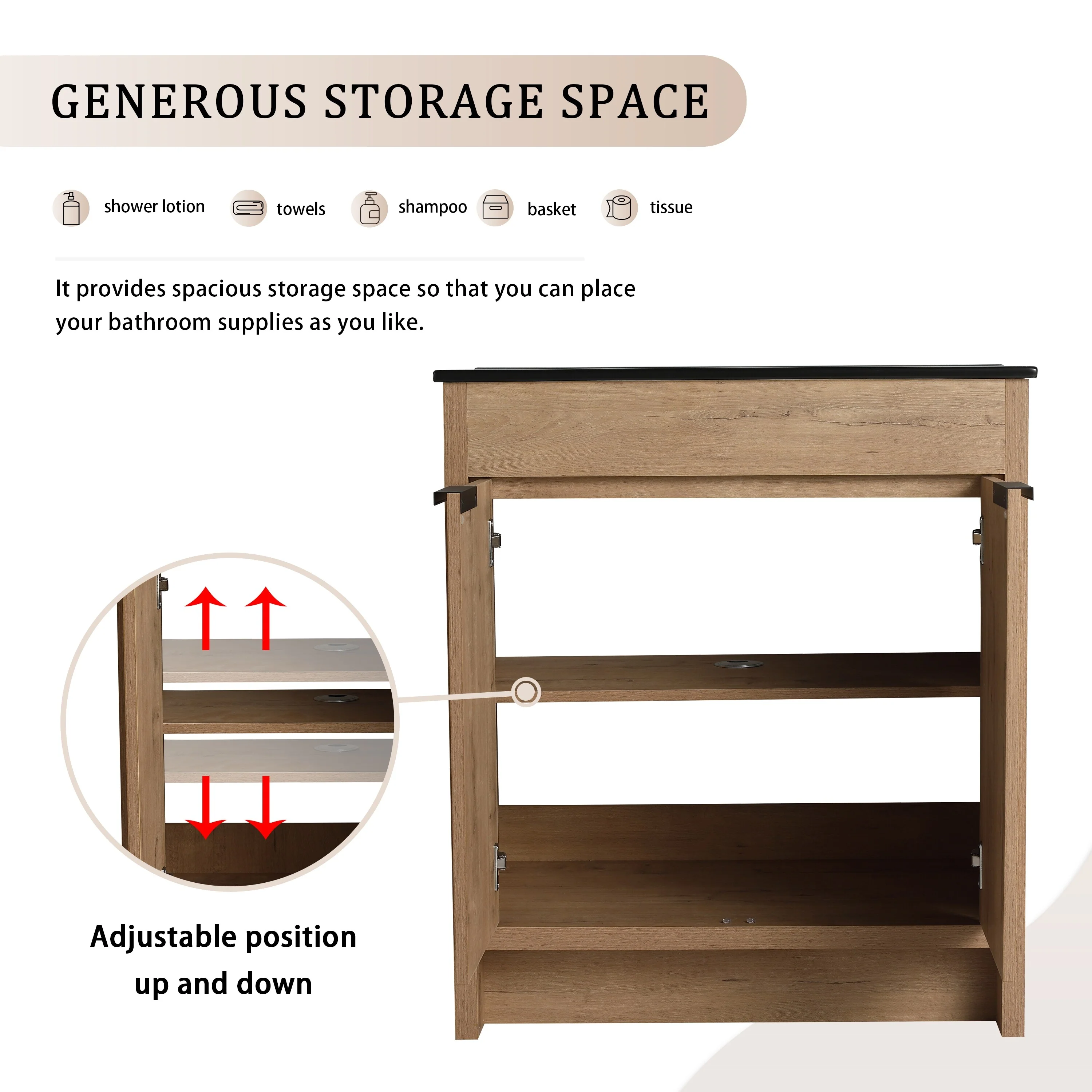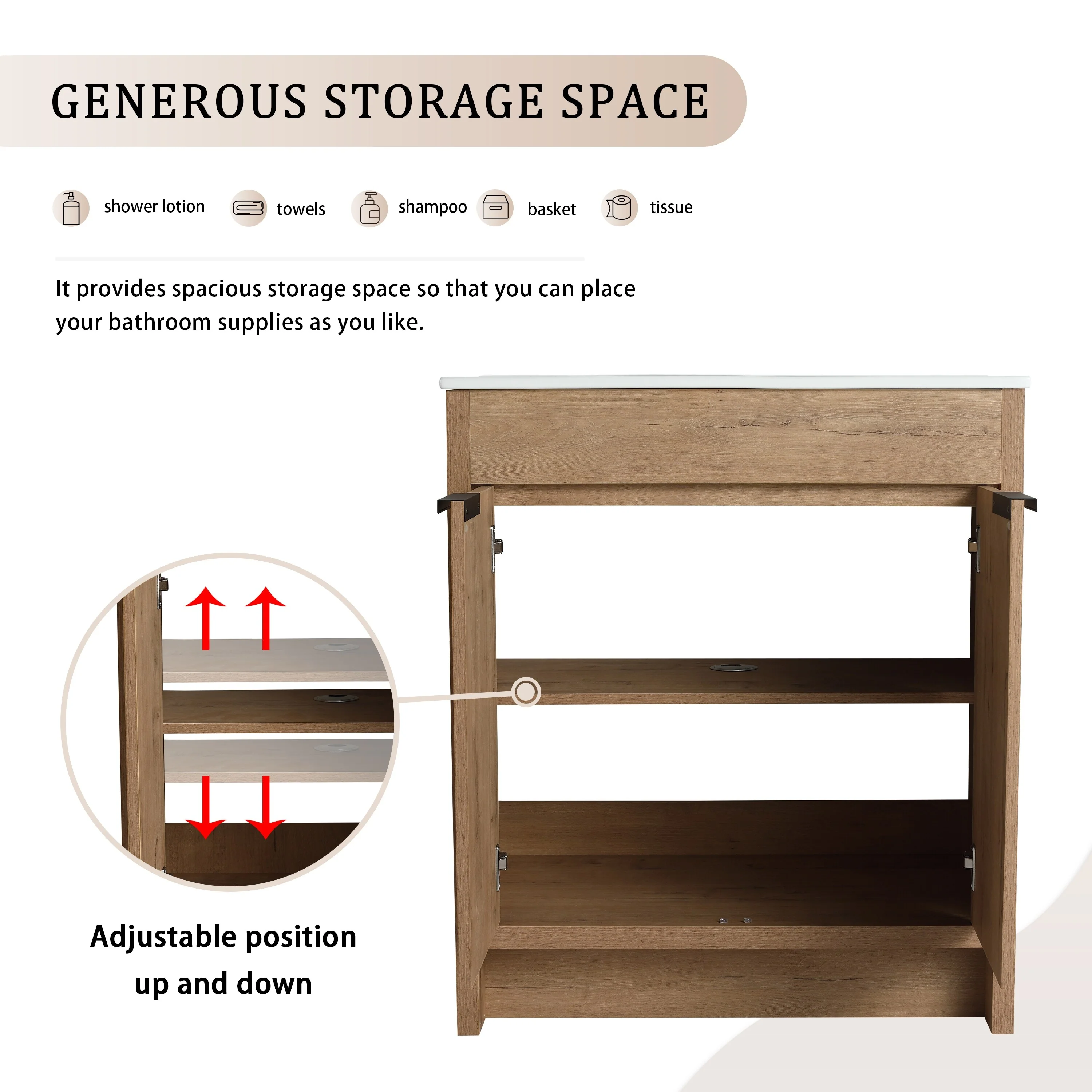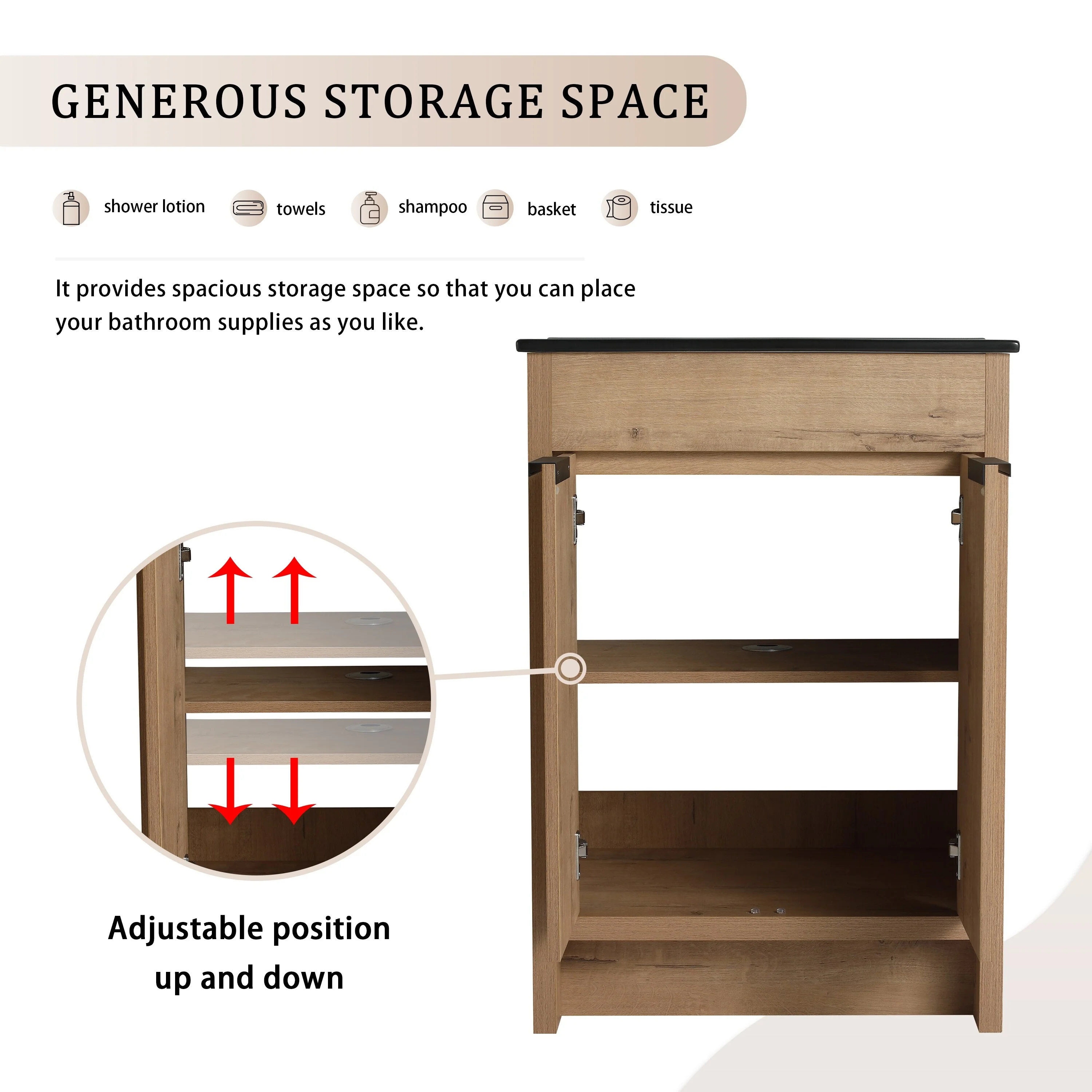 24" Bathroom Vanity with Ceramic Sink, Pine Wood Frame, Soft-Close Door & Side Open Storage