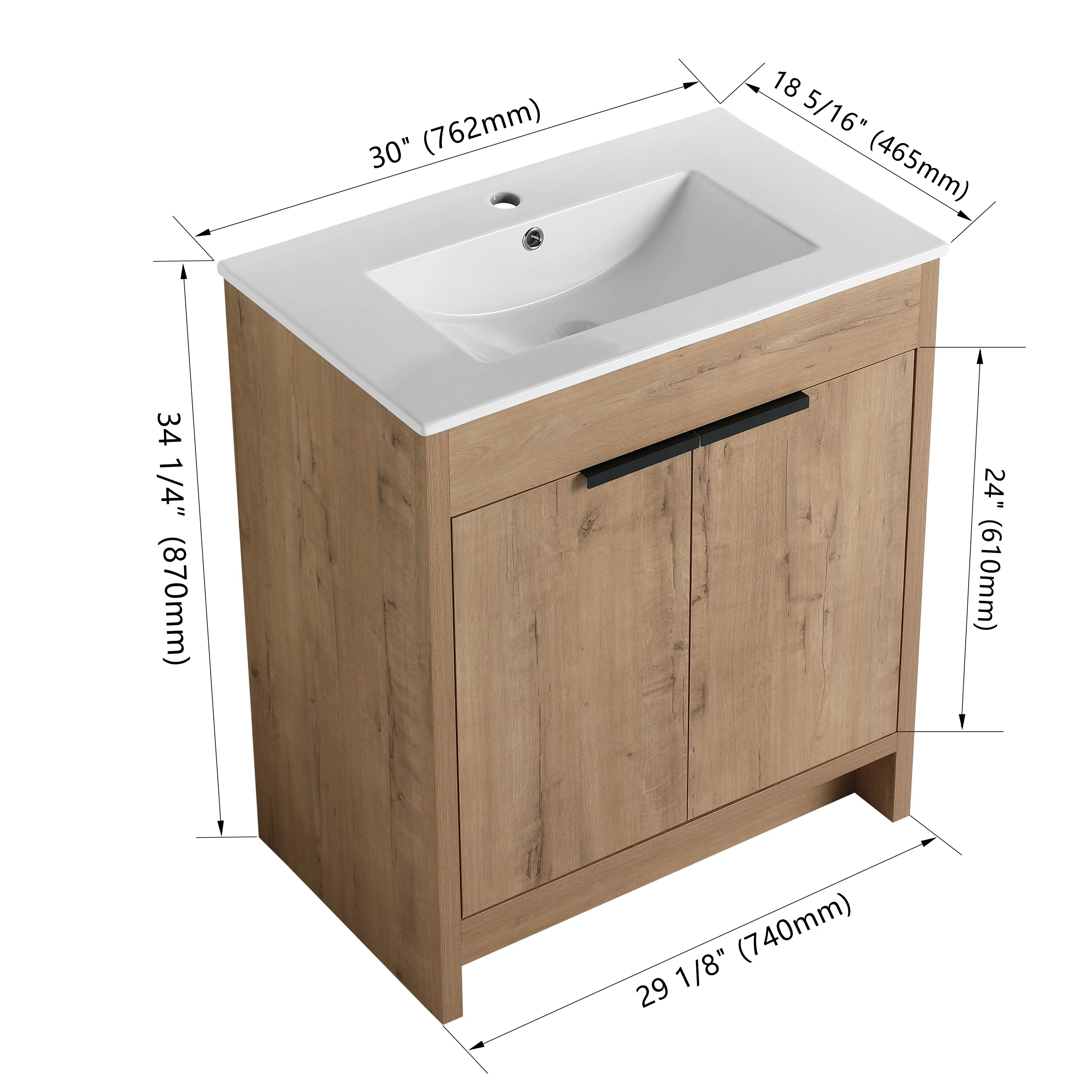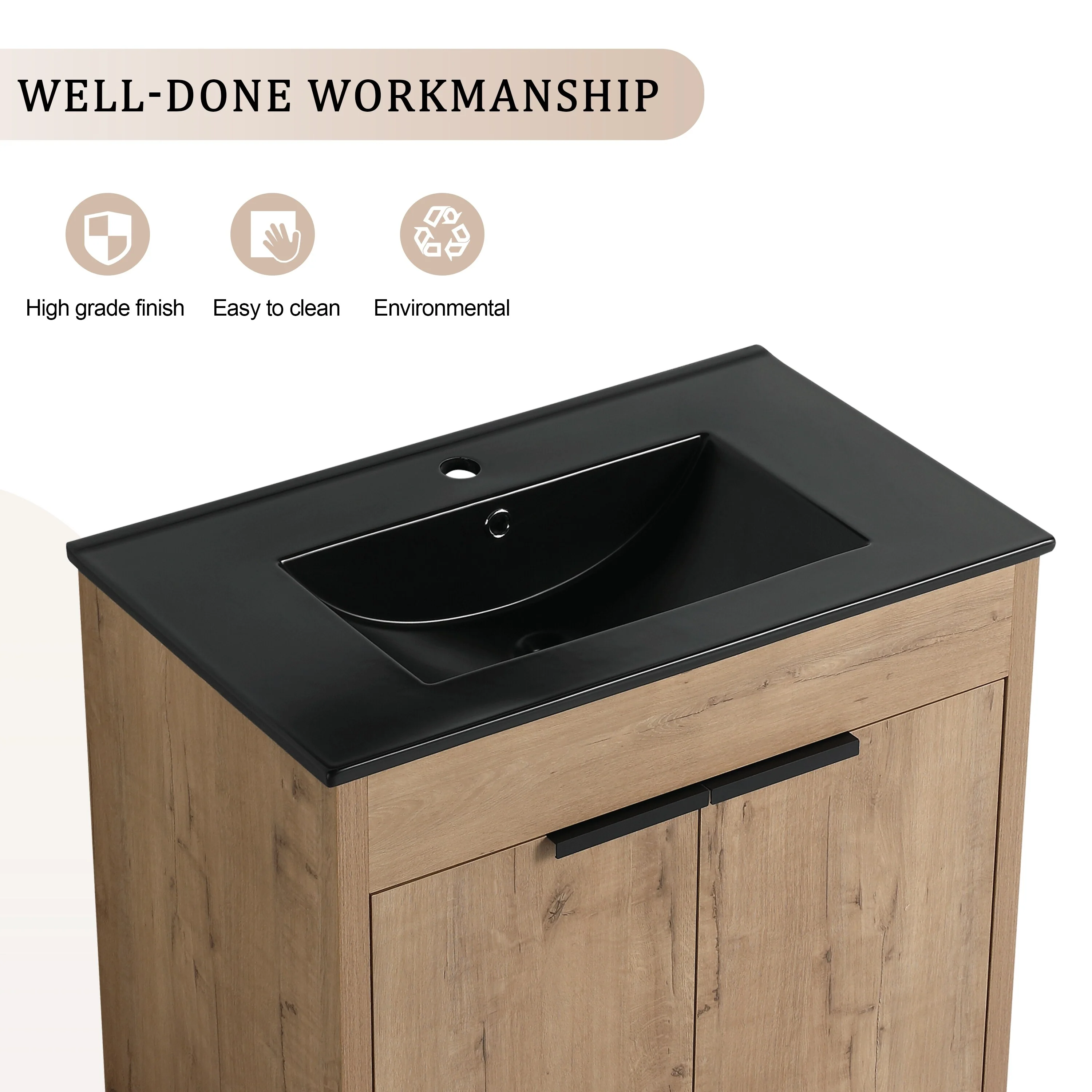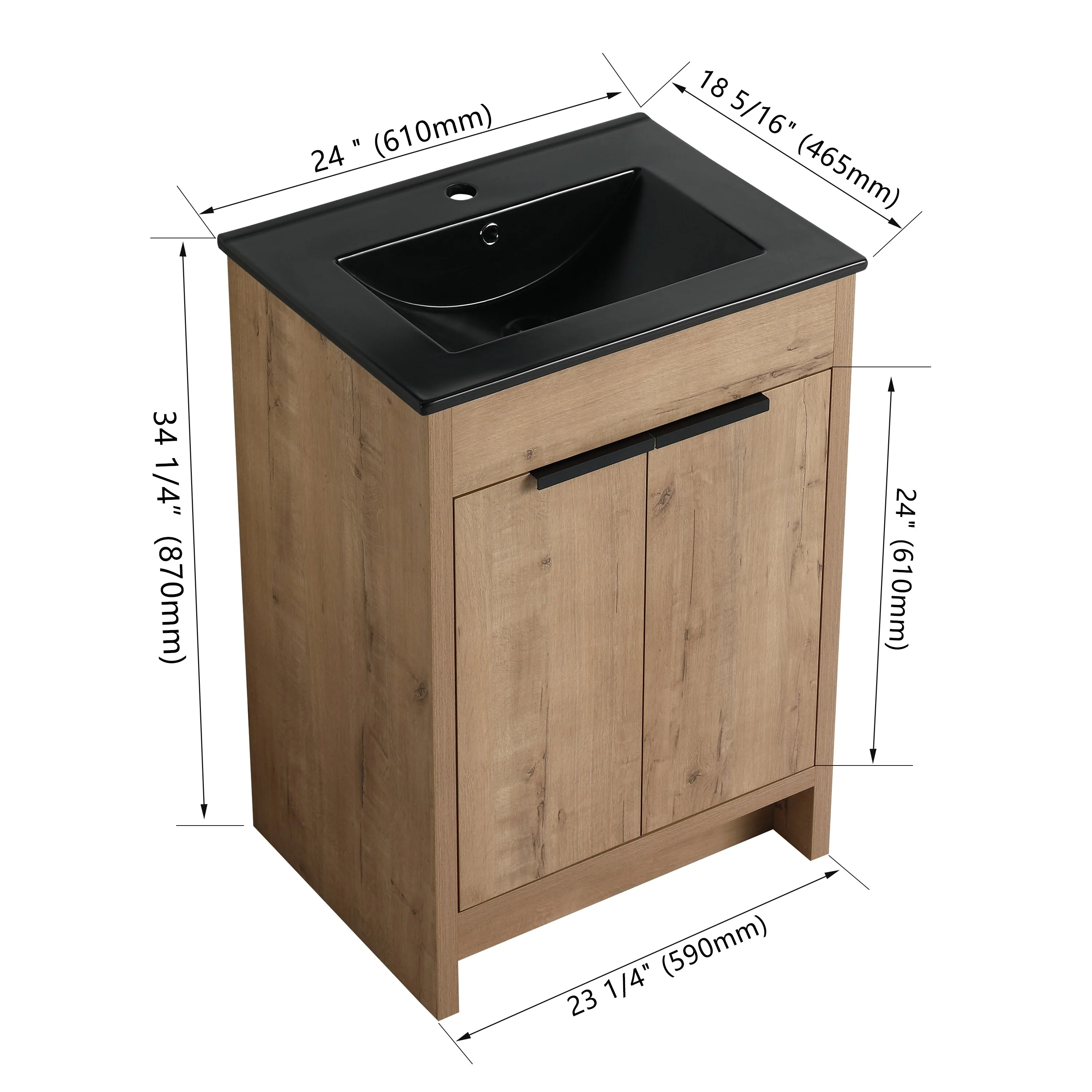 Imitative Oak+Black Ceramic Sink