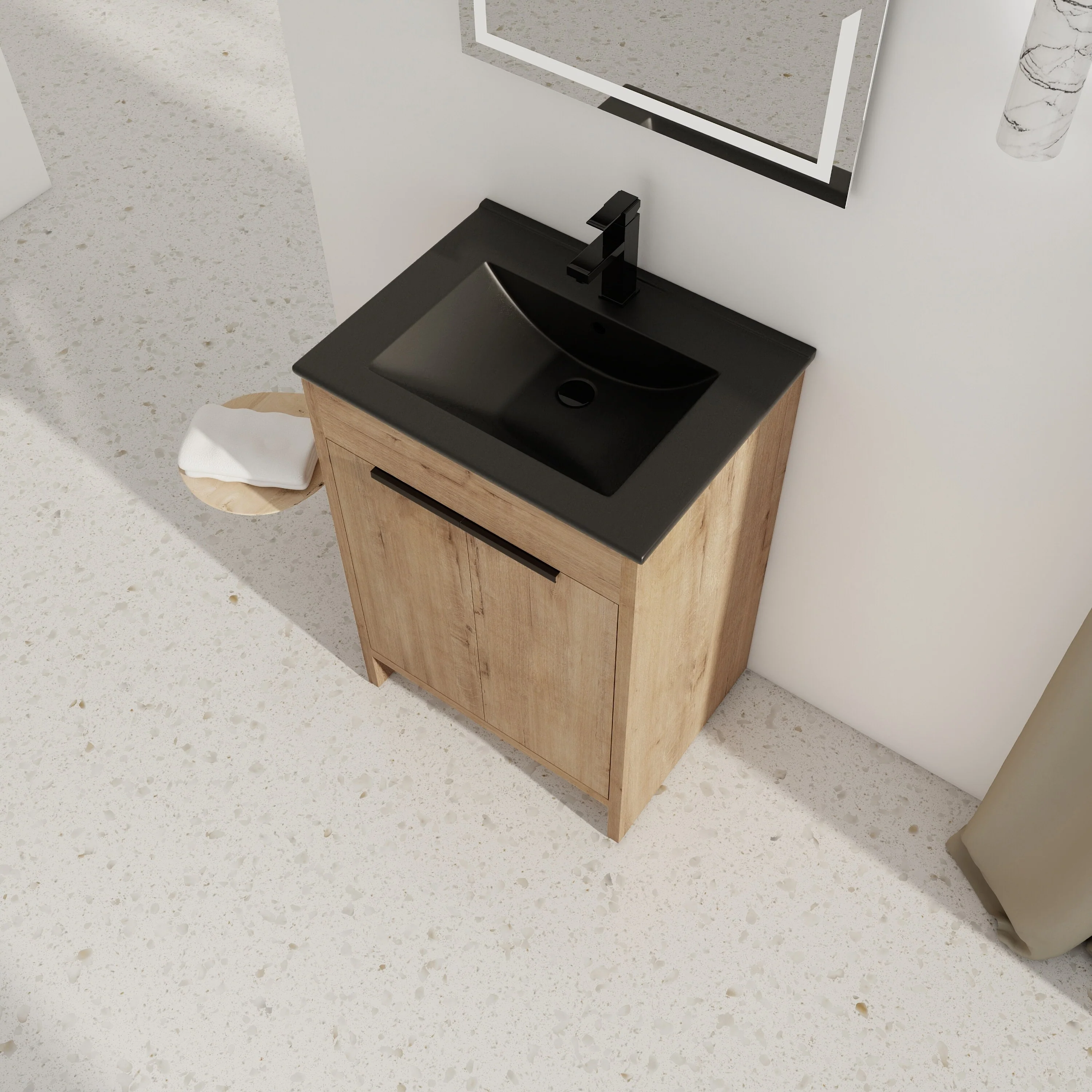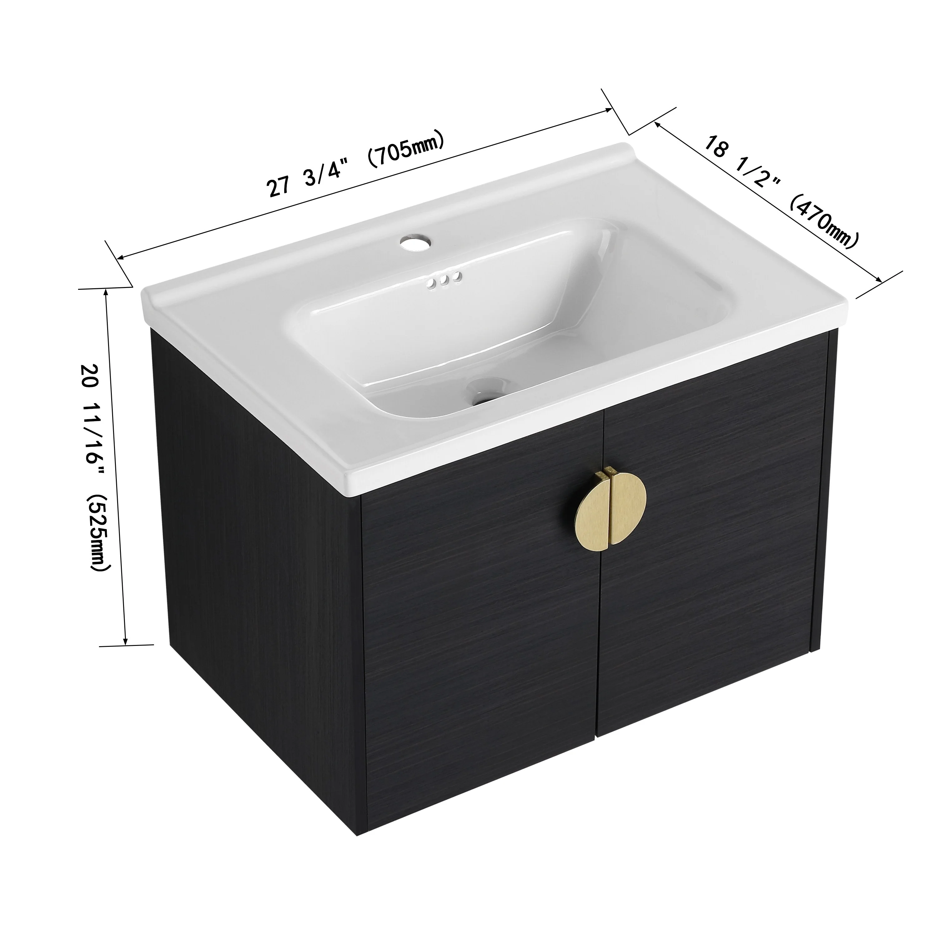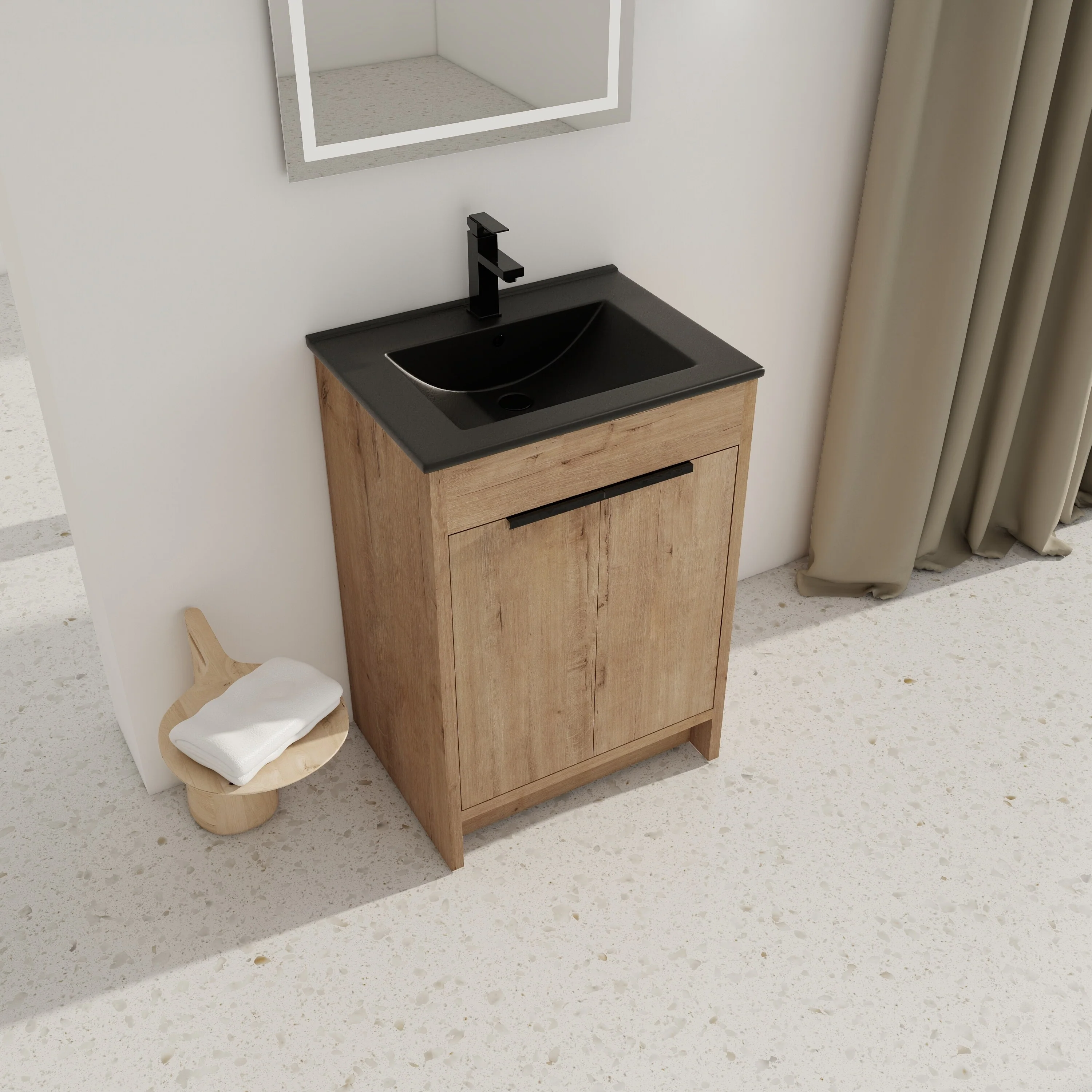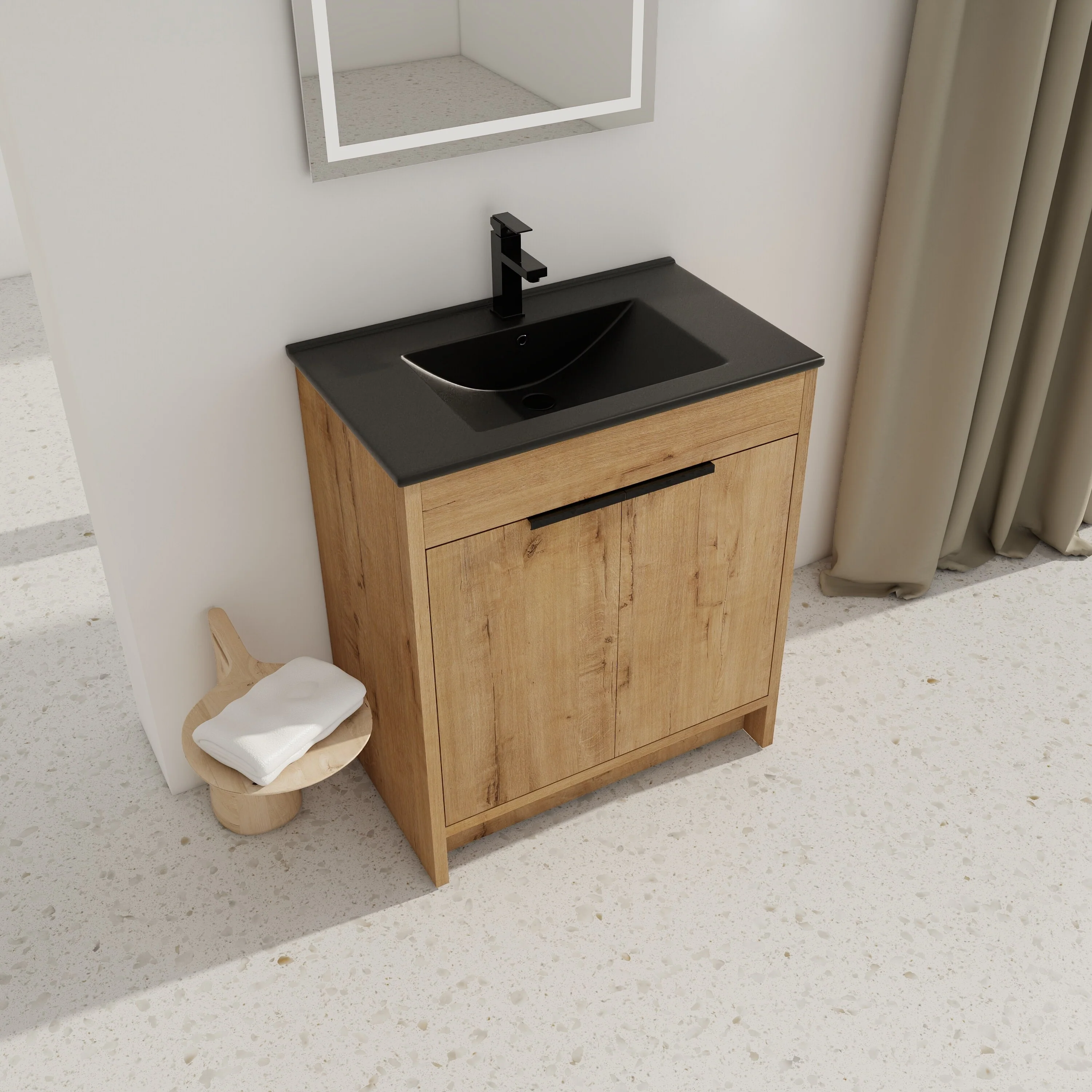 Imitative Oak+Black Ceramic Sink