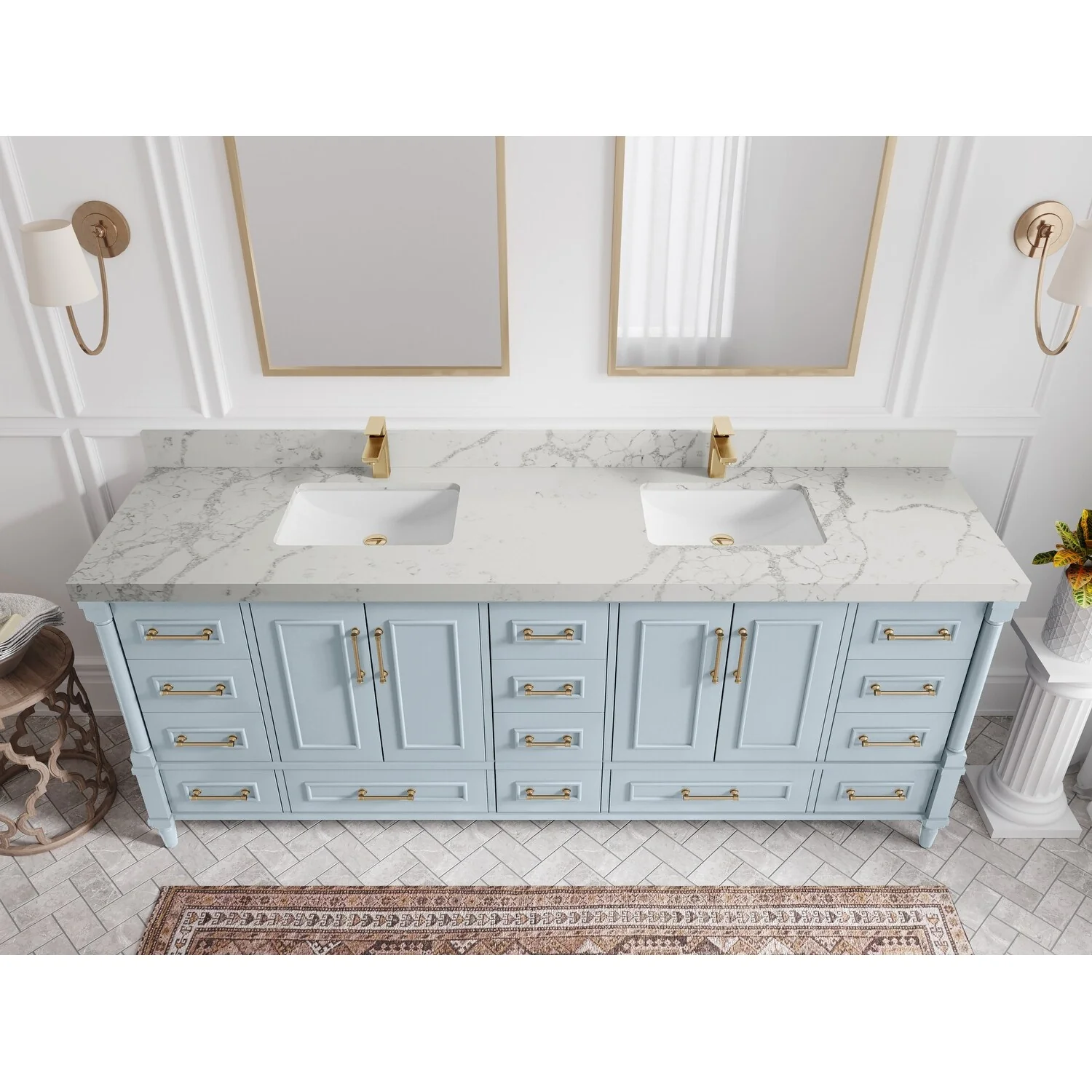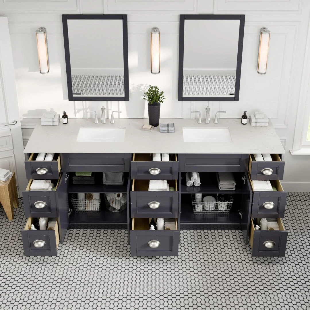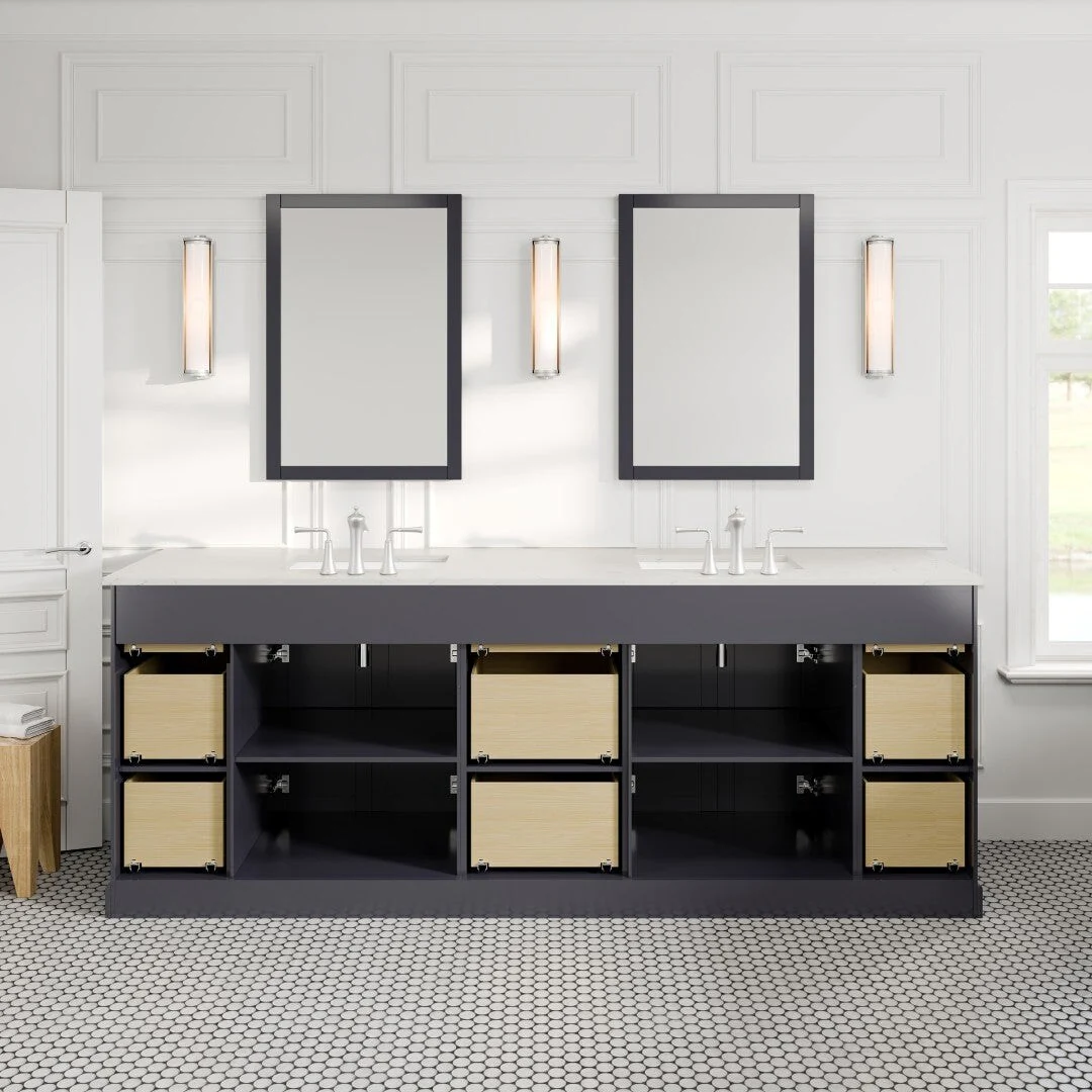 Epic 96 in. DS Bath Vanity with Carrara Quartz Top & Undermount Sinks