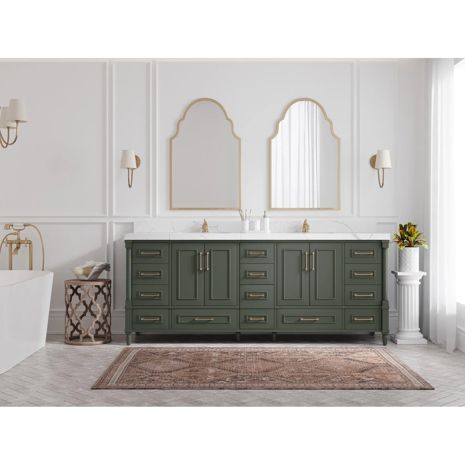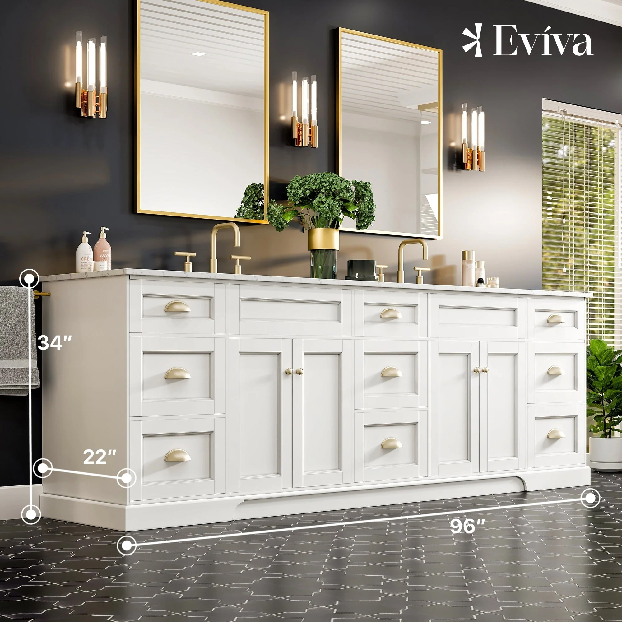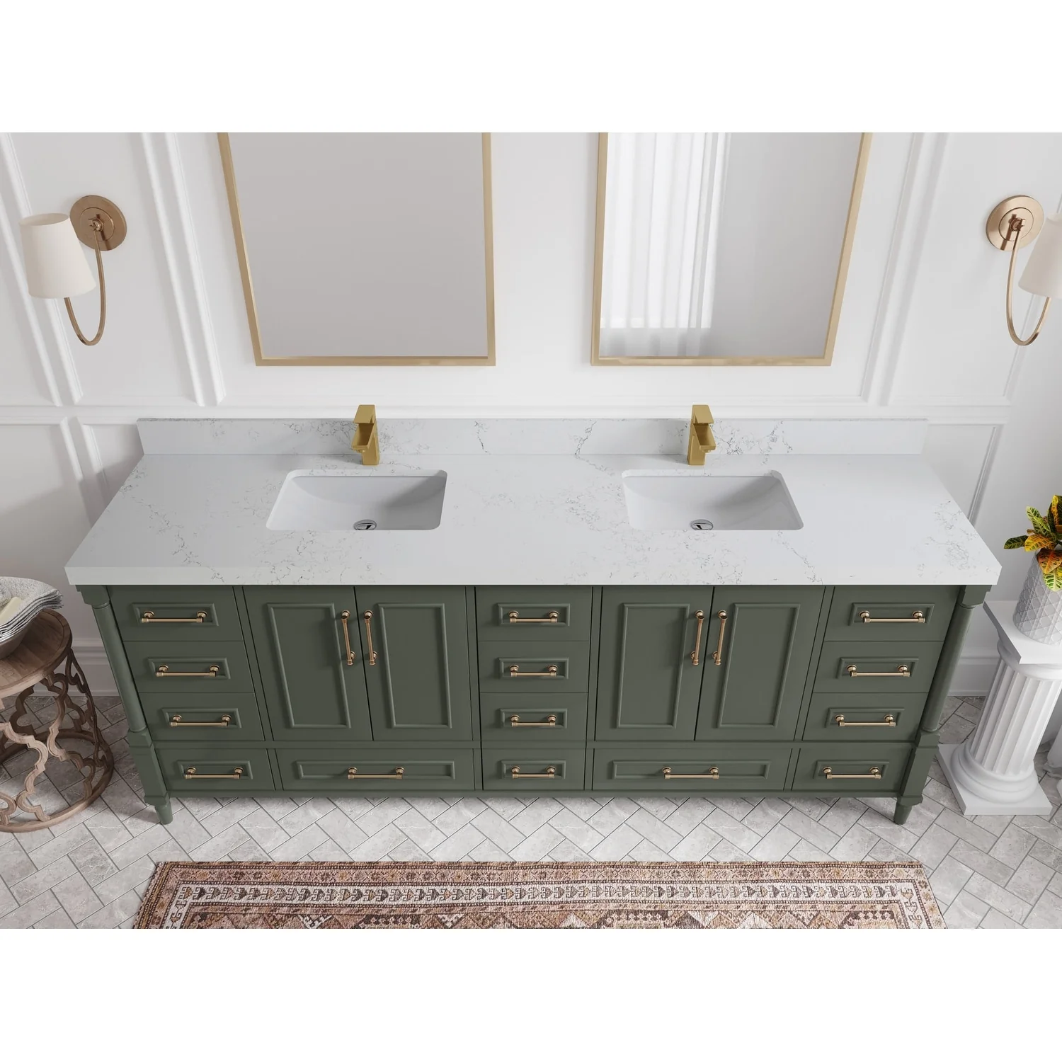 Epic 96 in. DS Bath Vanity with Carrara Quartz Top & Undermount Sinks