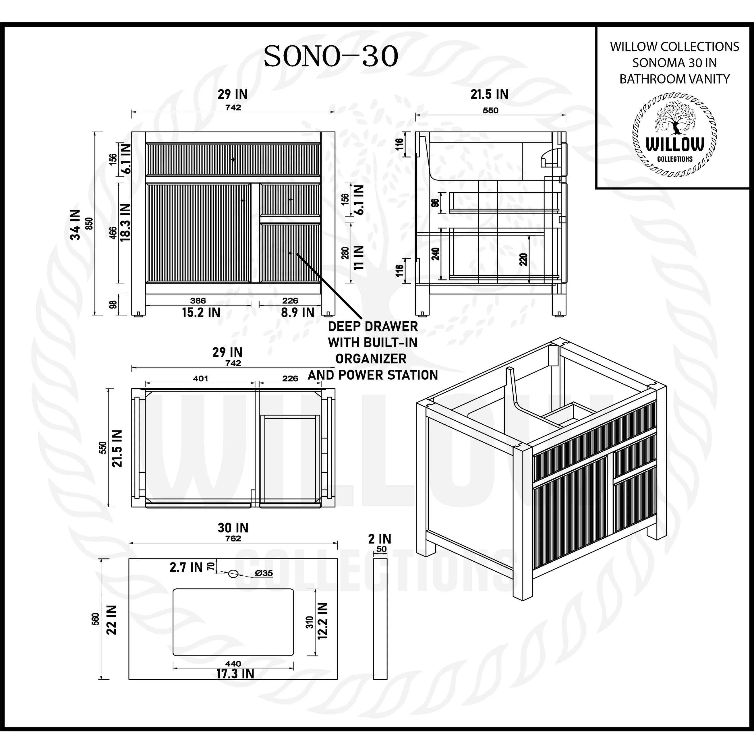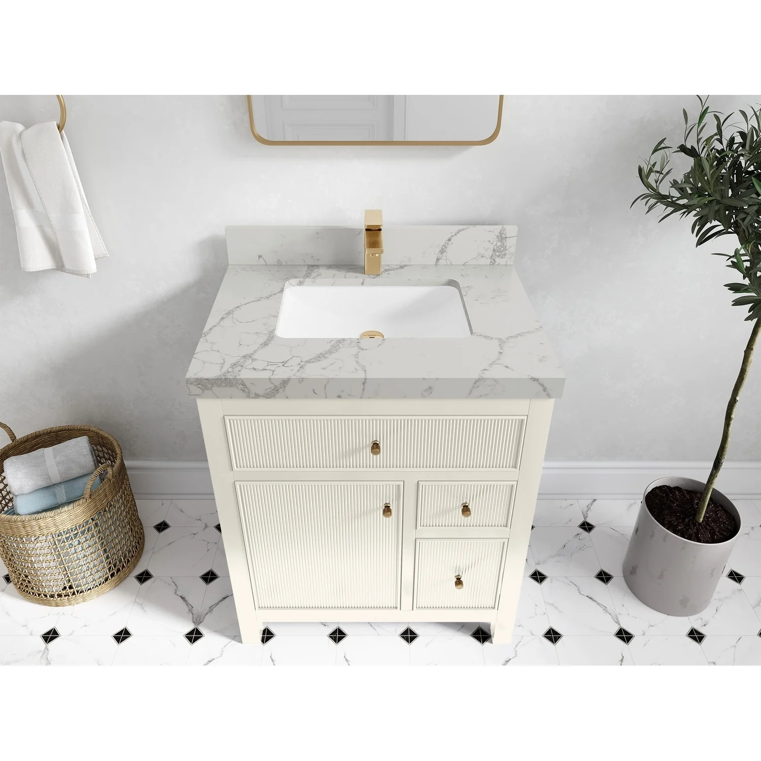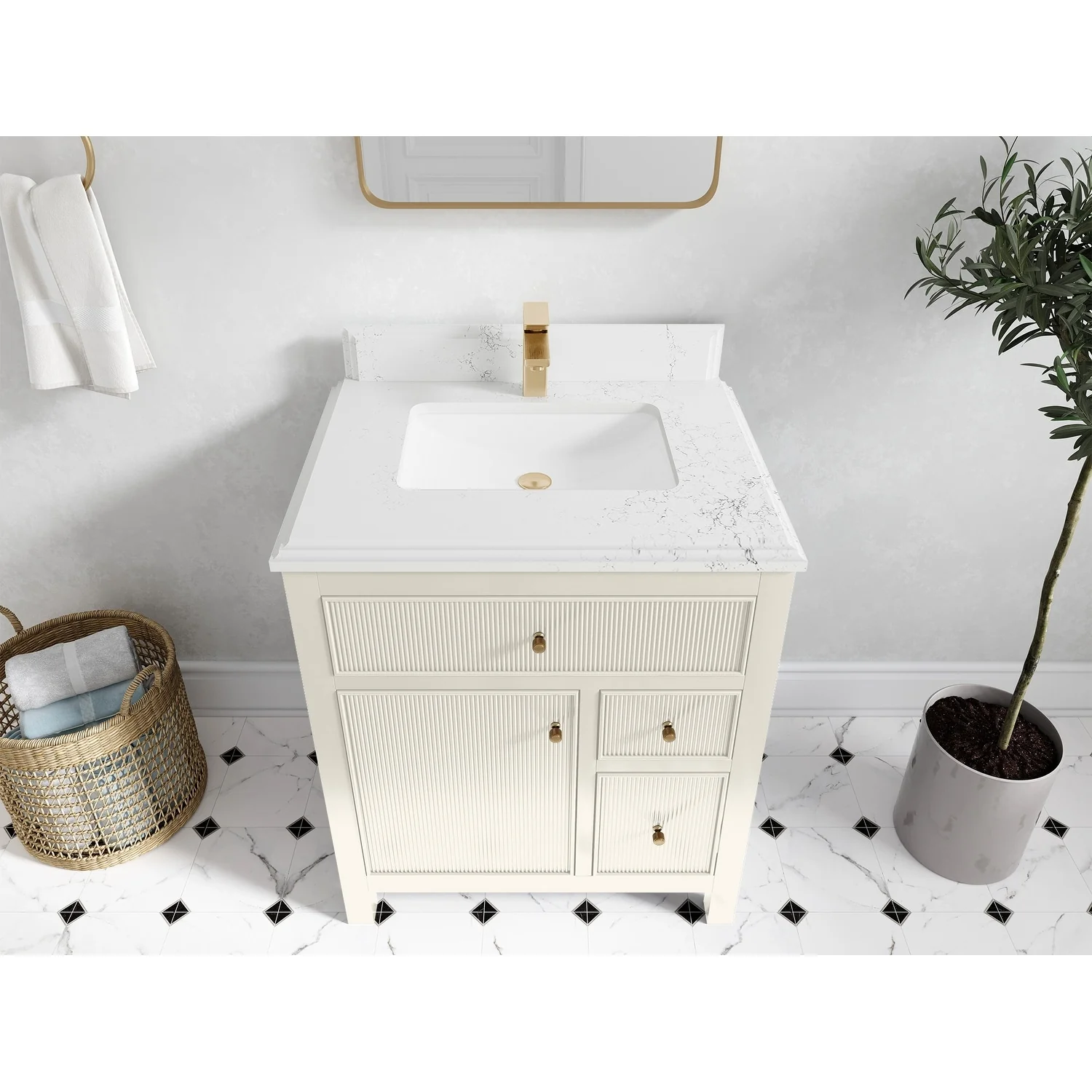 Willow Collections 30 in W x 22 in D Sonoma Free Standing Reeded Single Sink Bathroom Vanity with Countertop