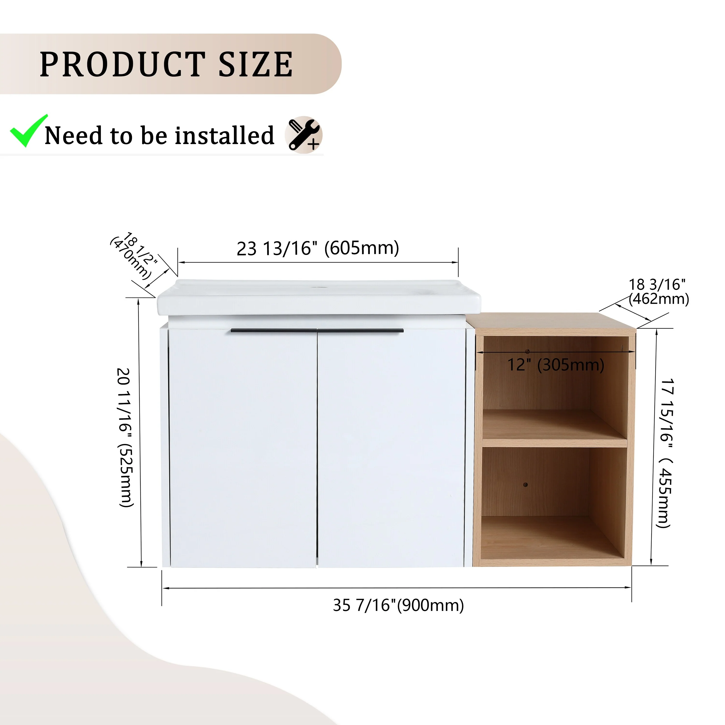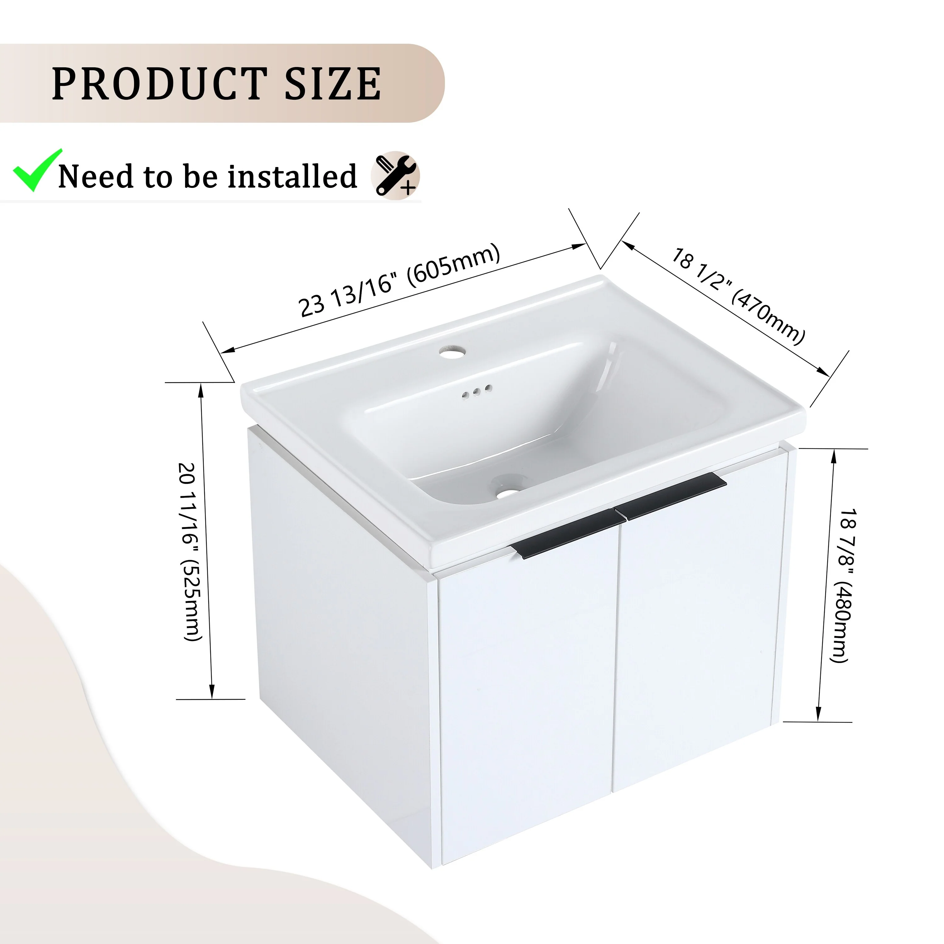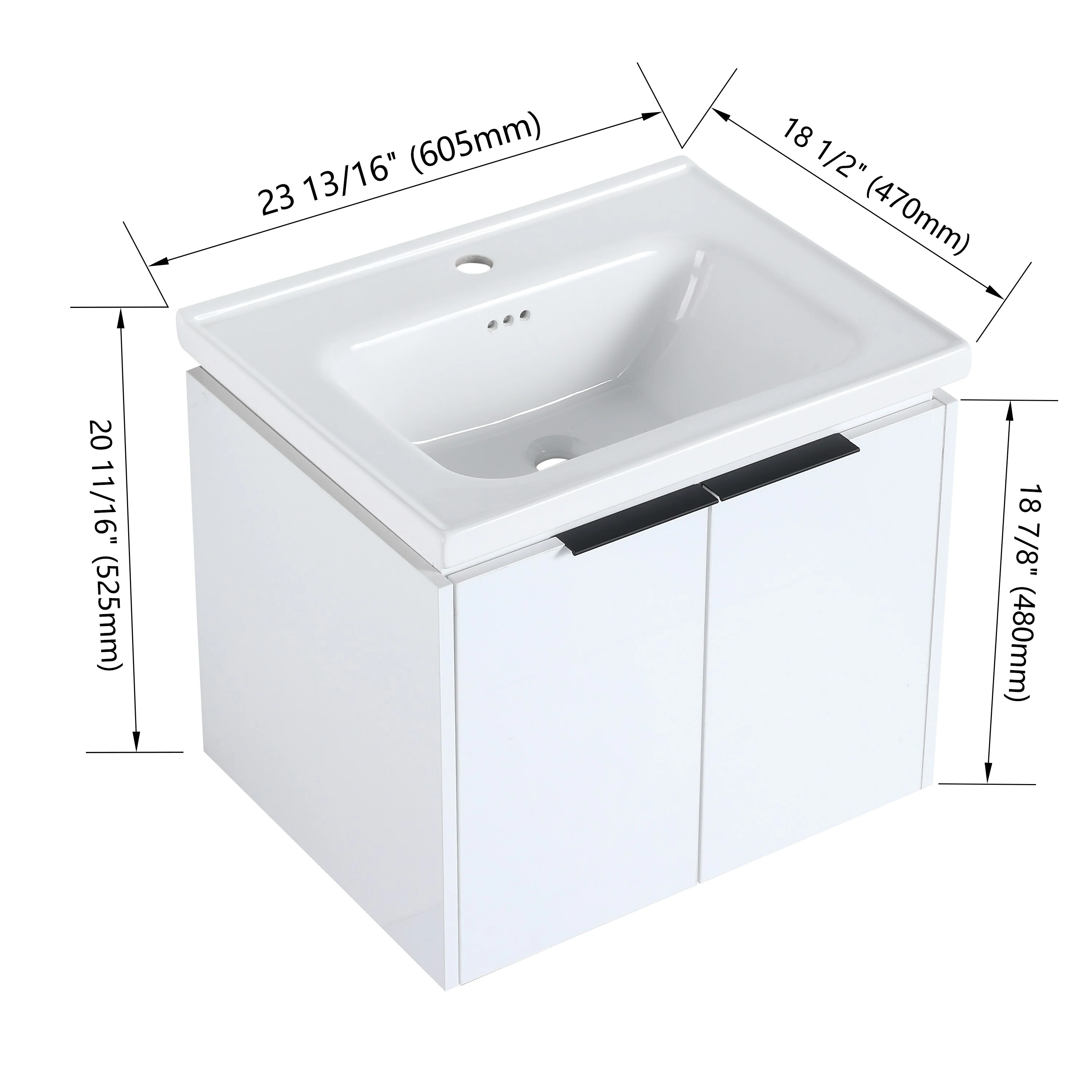Merax 24-Inch Wall Mounted Bathroom Vanity with 2 Drawers