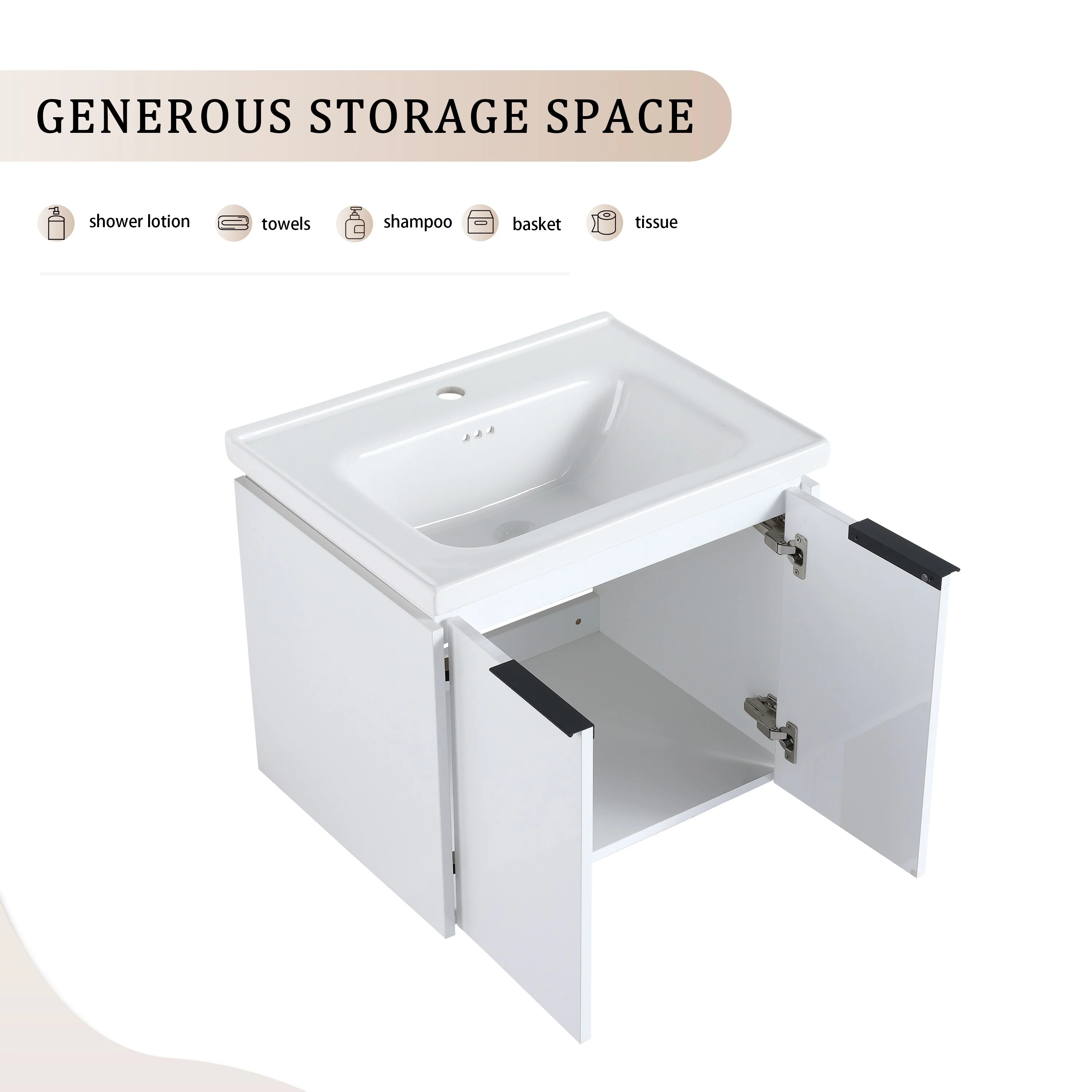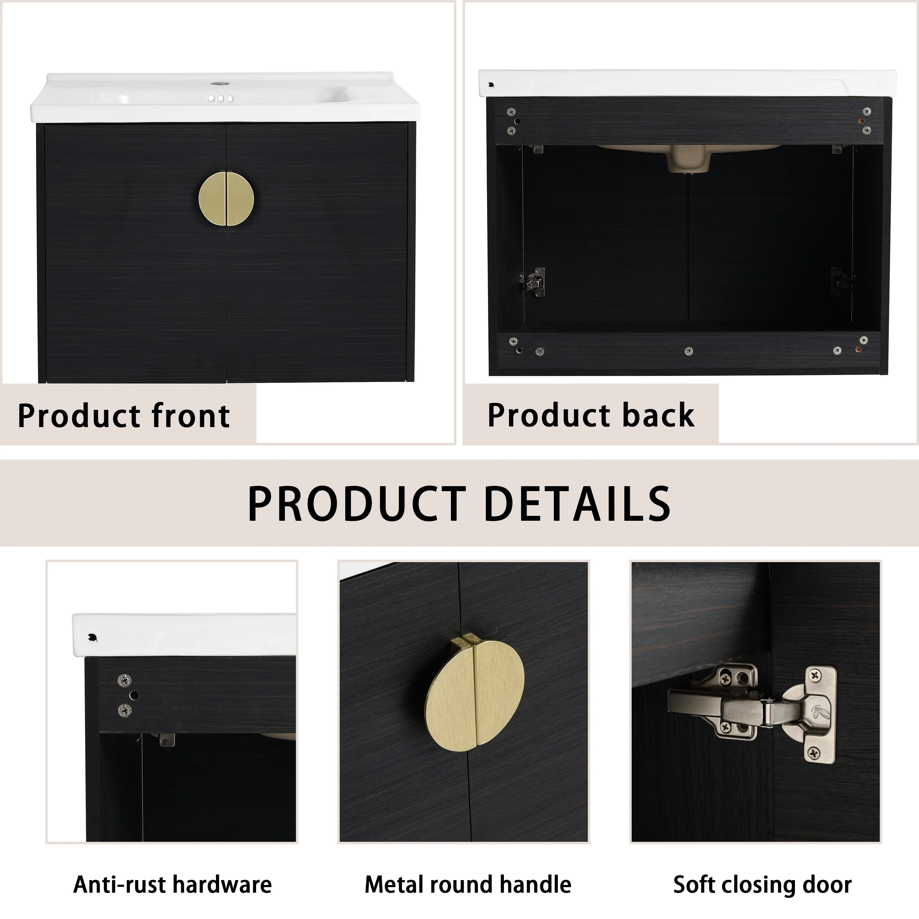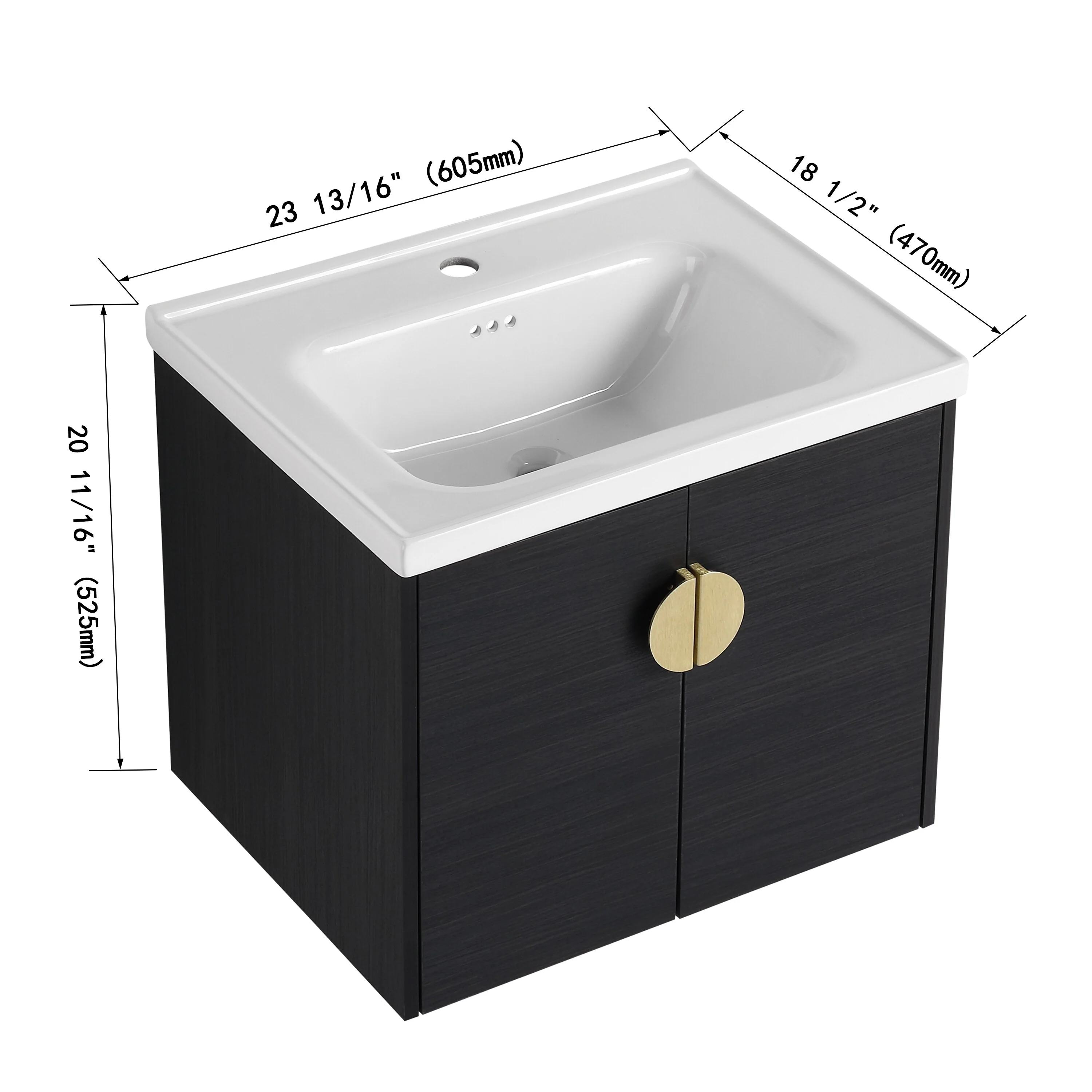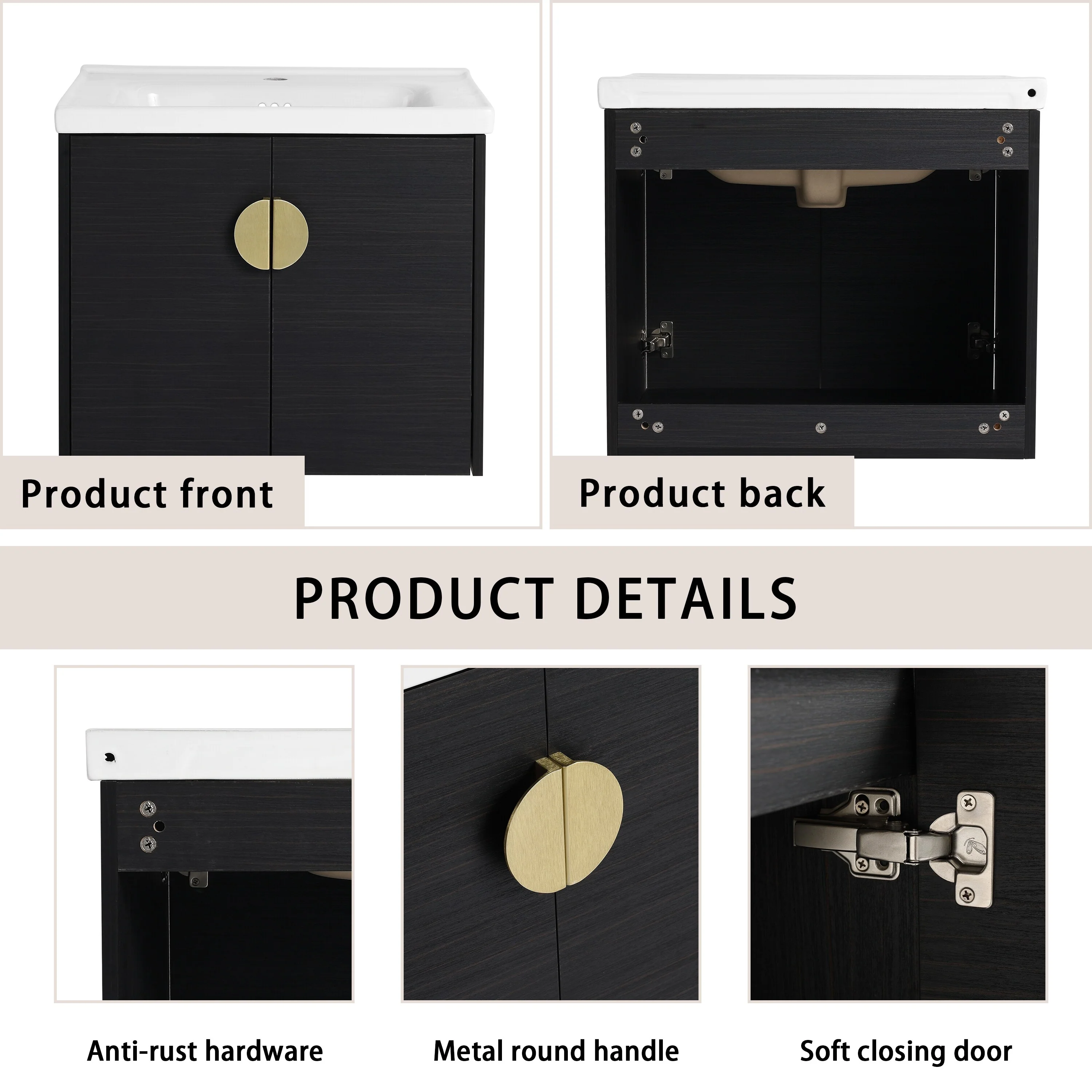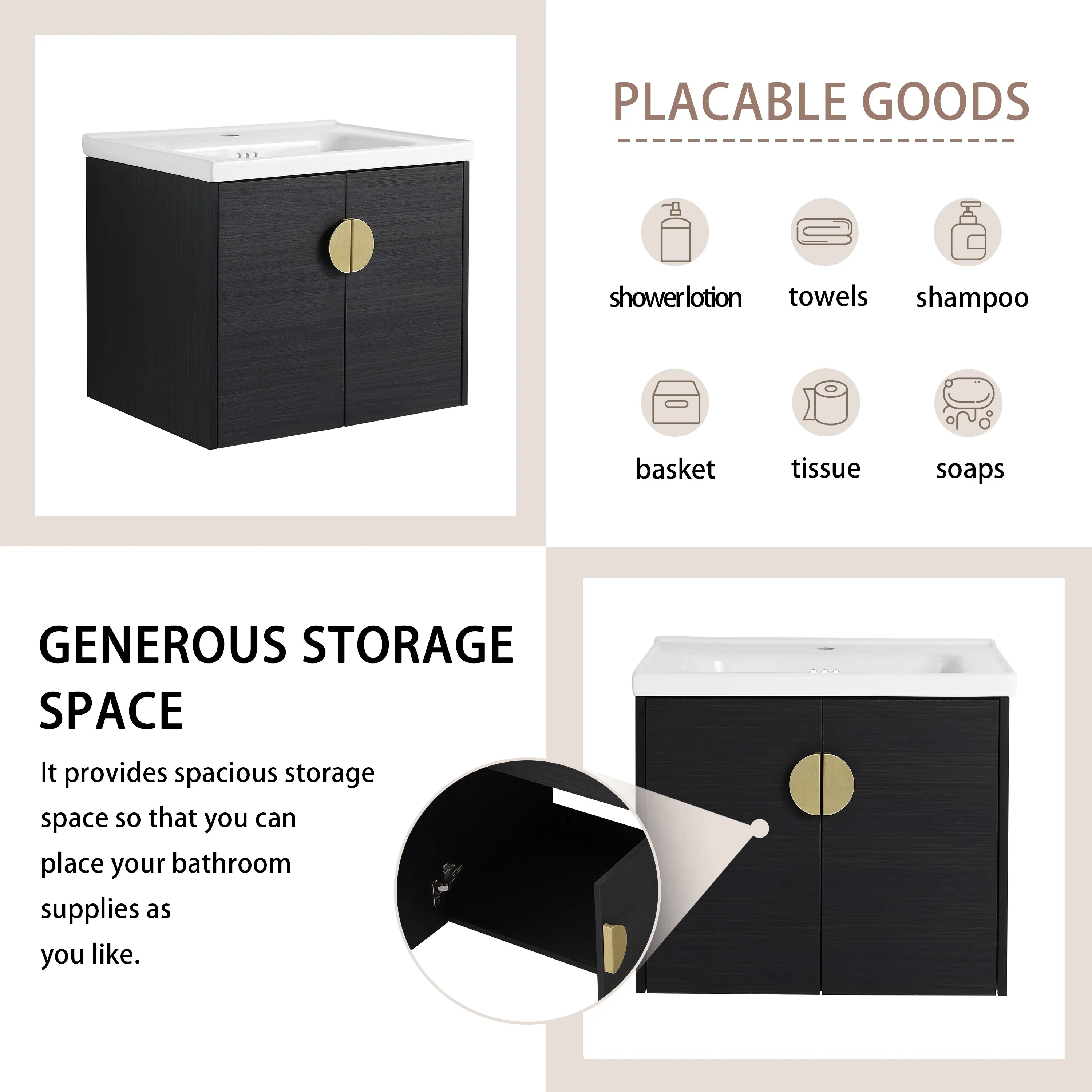 GDFStudio - Emerson Stylish Wall-Mounted Bathroom Vanity with Soft-Close Doors and Ceramic Sink