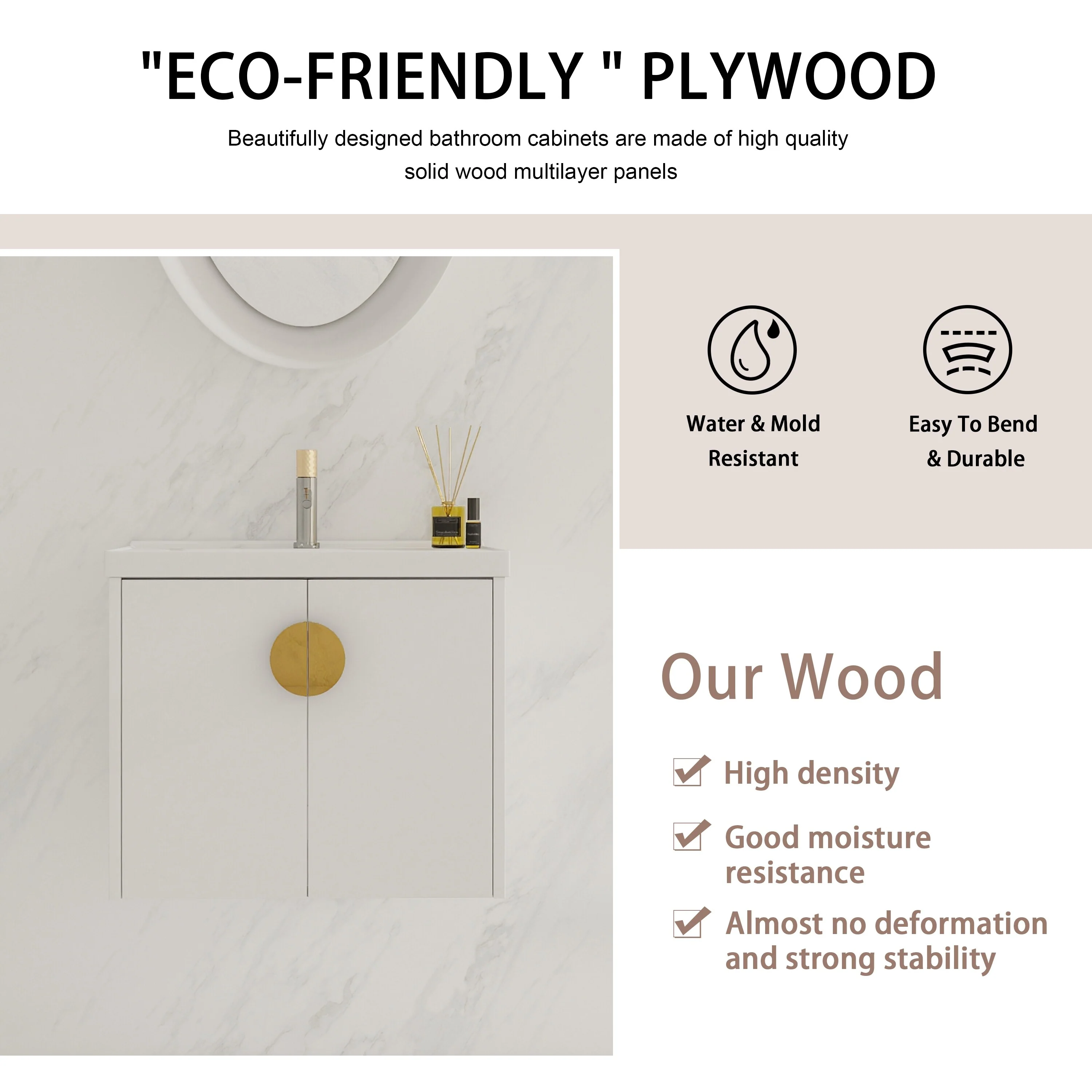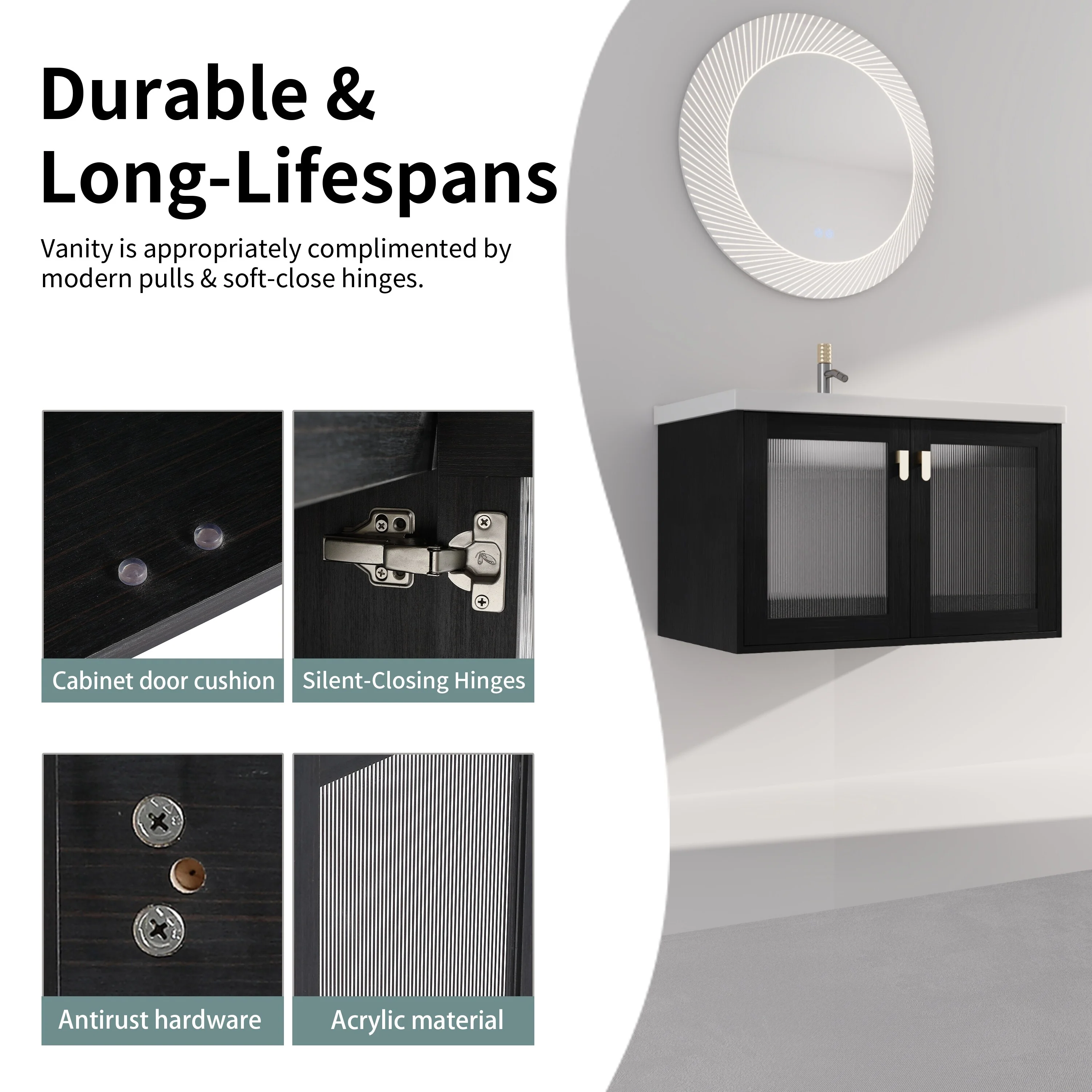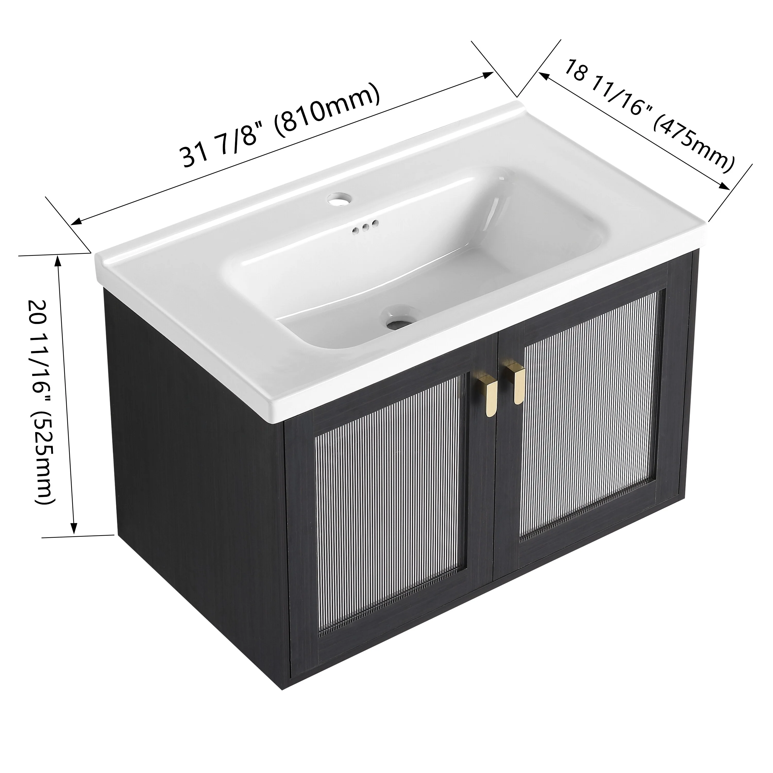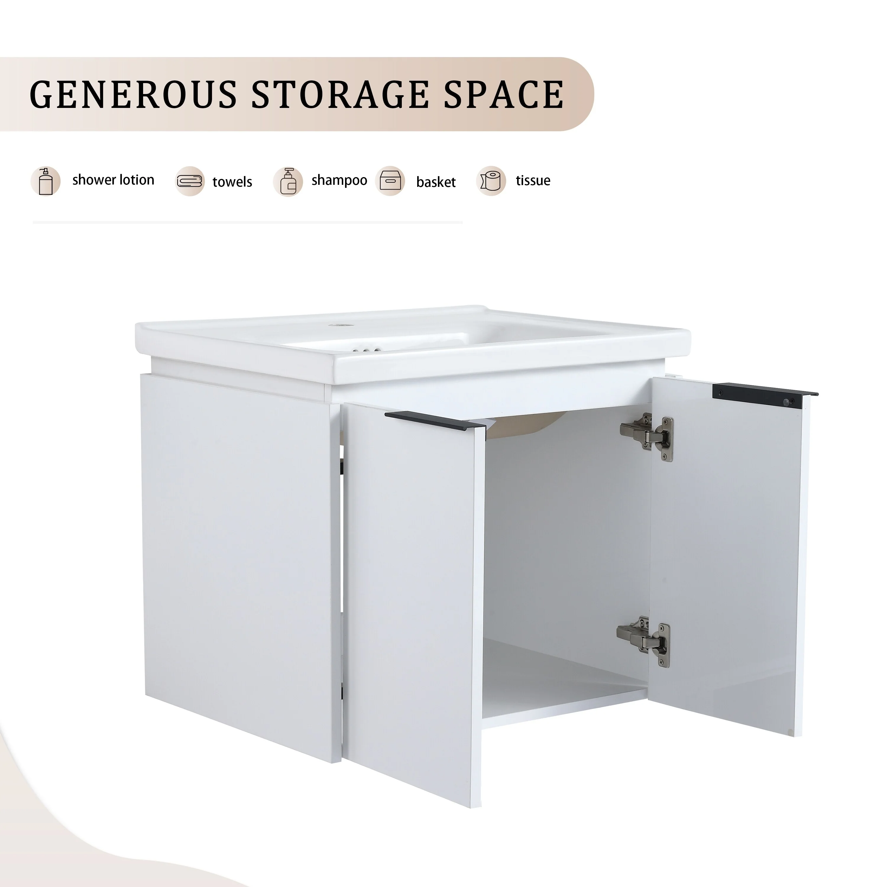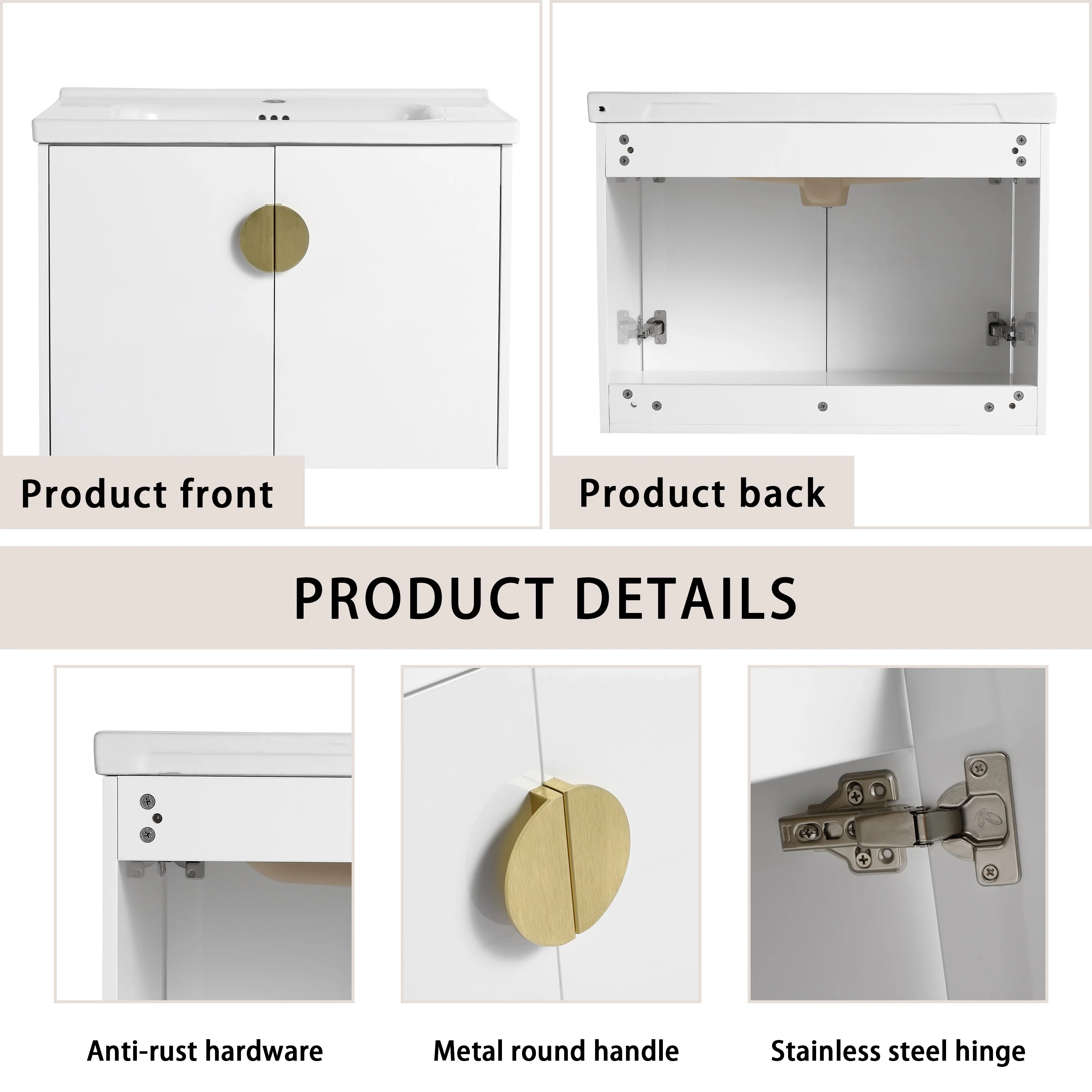 GDFStudio - Emerson Stylish Wall-Mounted Bathroom Vanity with Soft-Close Doors and Ceramic Sink