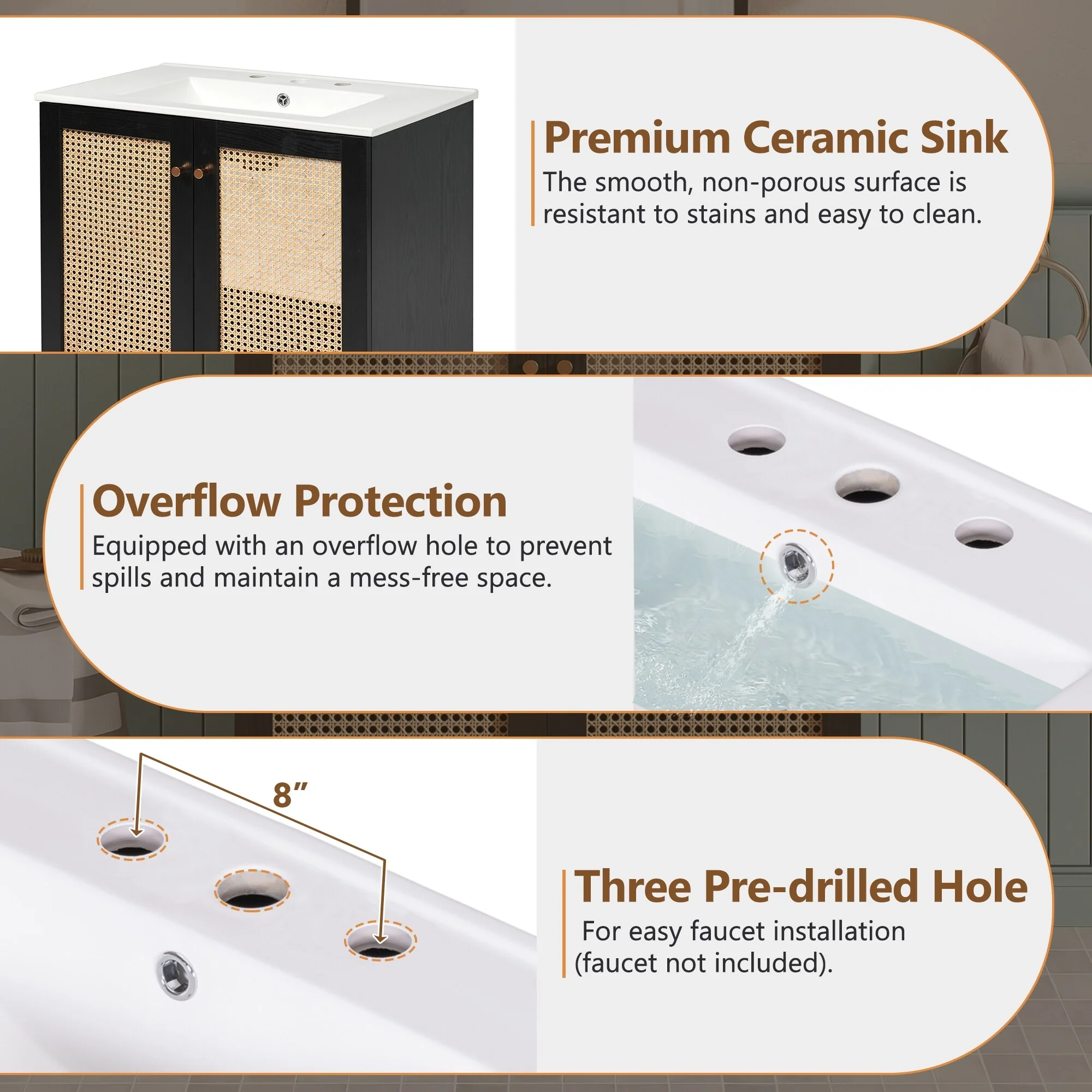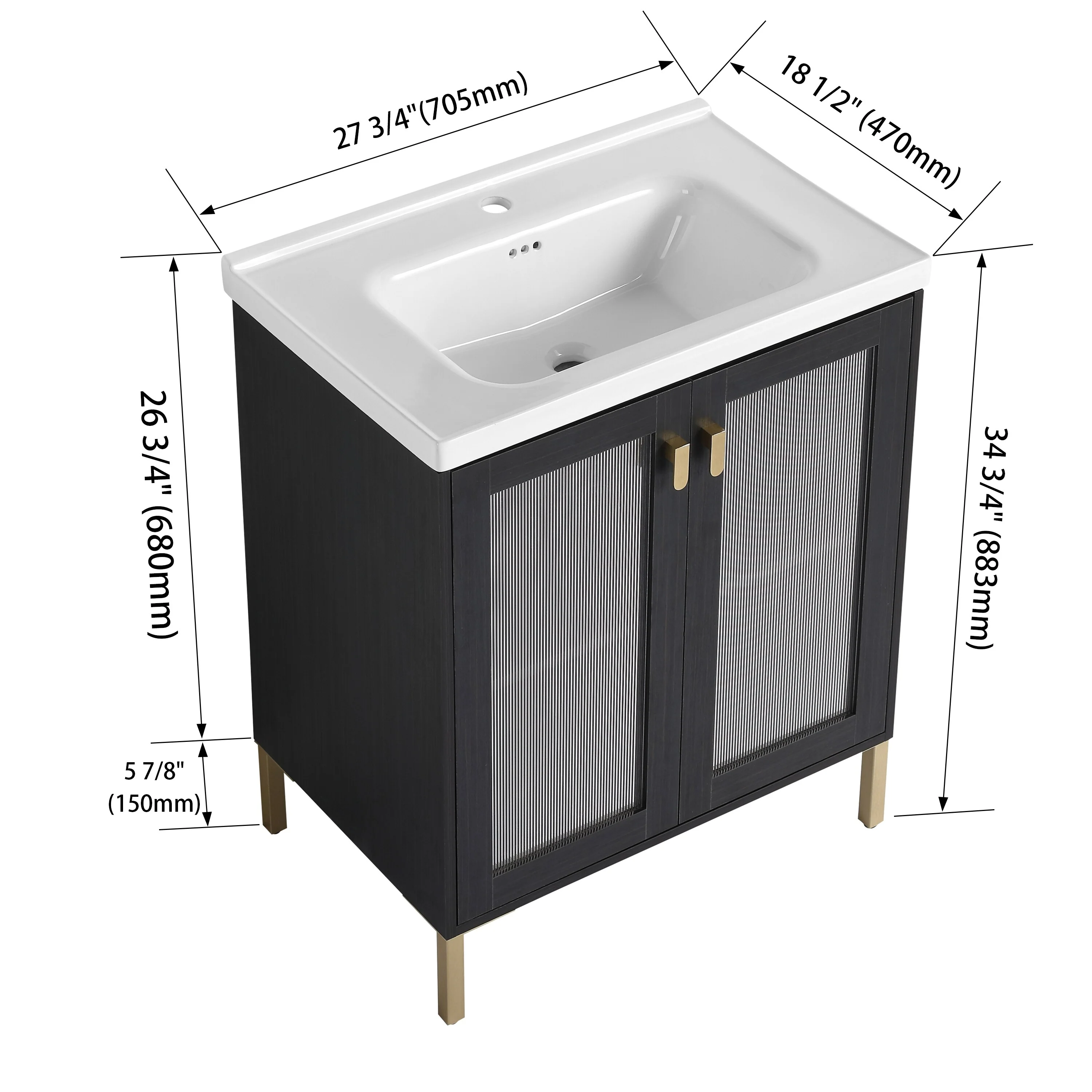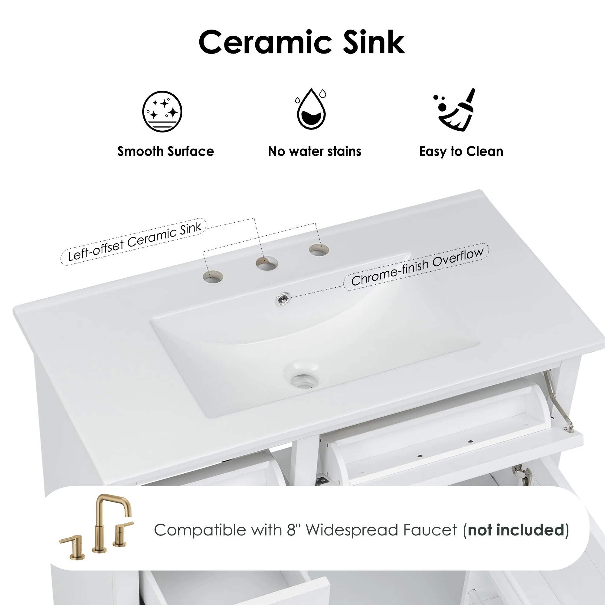 Waterford Bathroom Vanity Sink with Porcelain Basin and Storage Cabinet