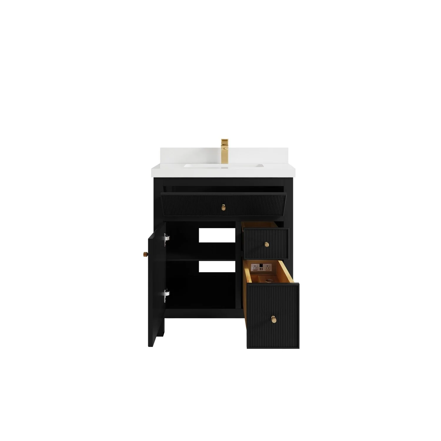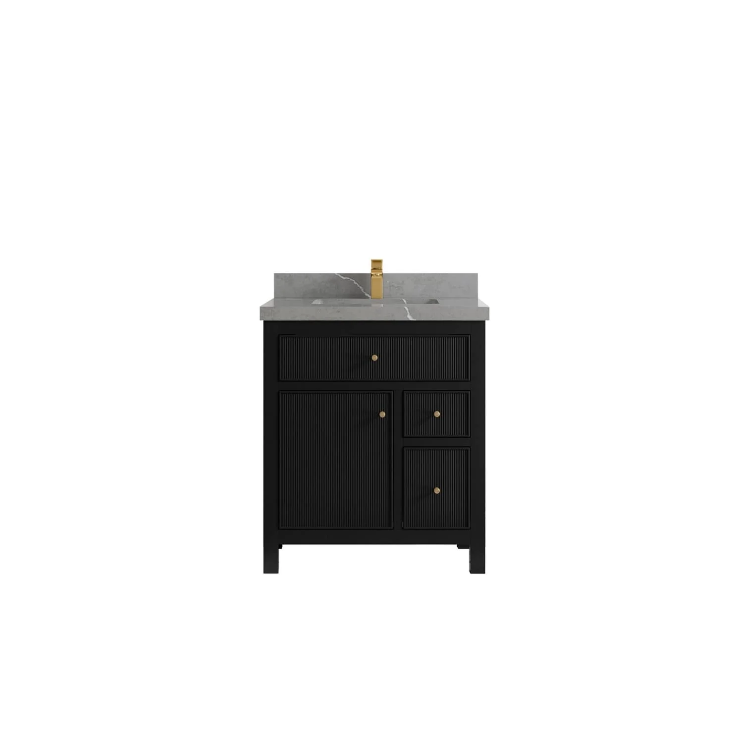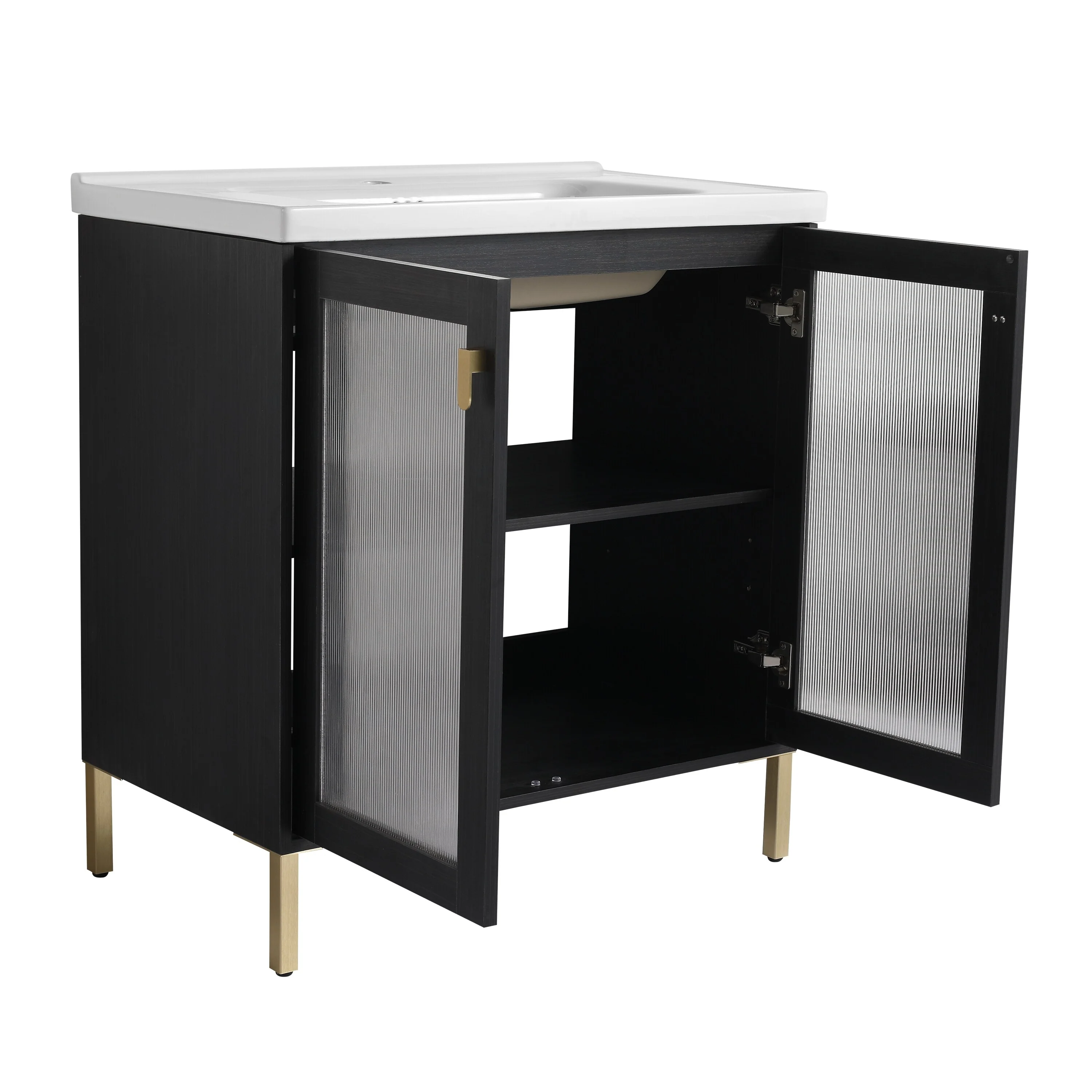 30" Modern Bathroom Vanity with Single Sink, Solid Wood Frame, Soft-Close Doors, and Storage Shelves