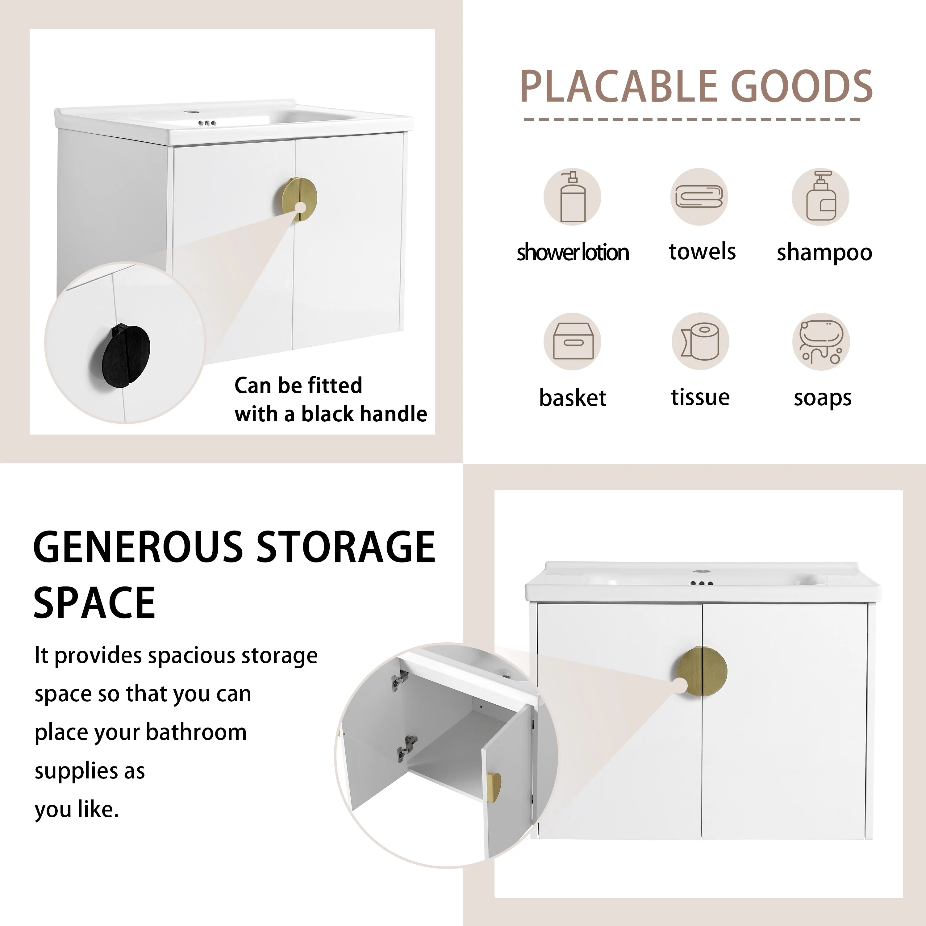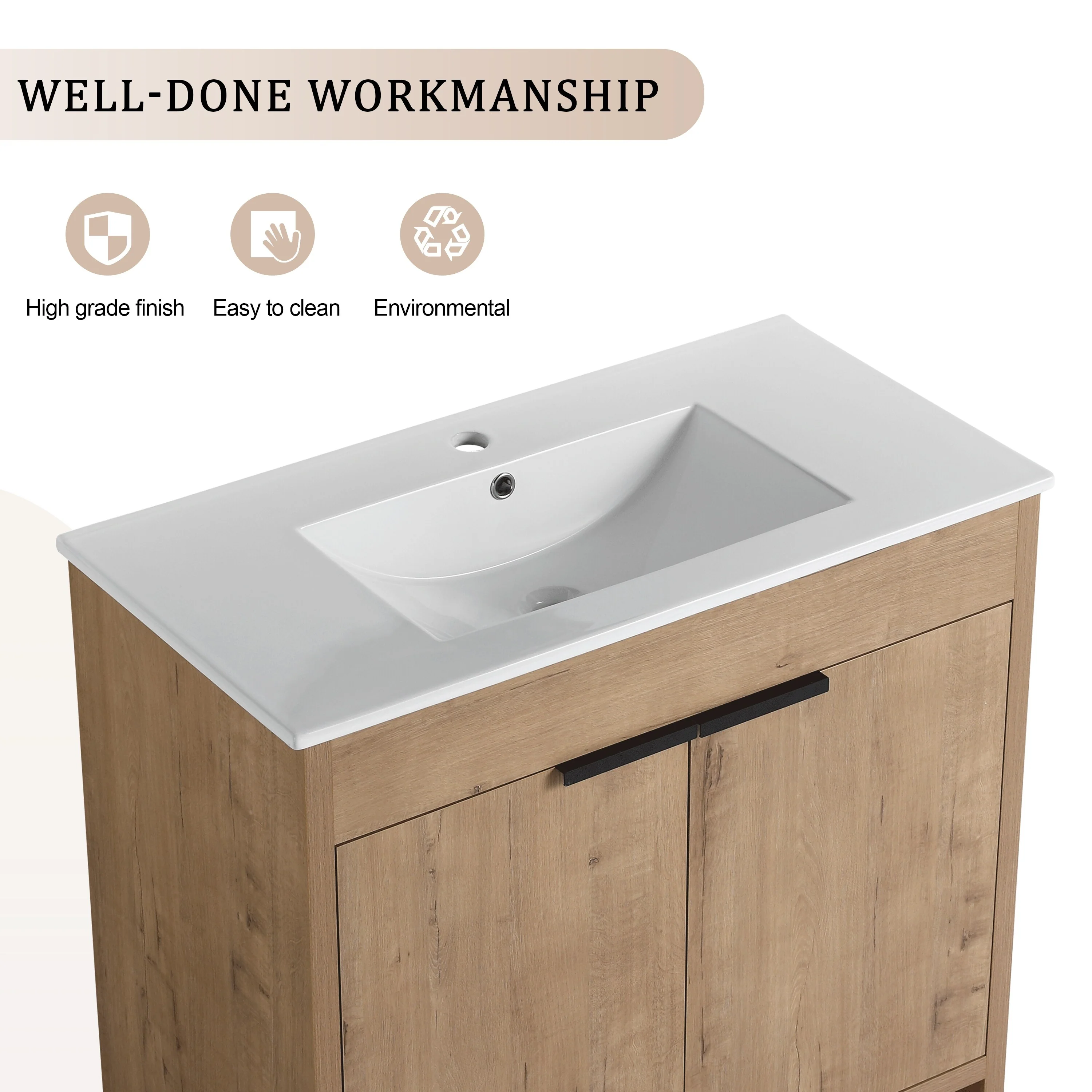 30" Bathroom Vanity , Modern Bathroom Cabinet with Sink Combo Set, Bathroom Storage Cabinet with a Soft Closing Door