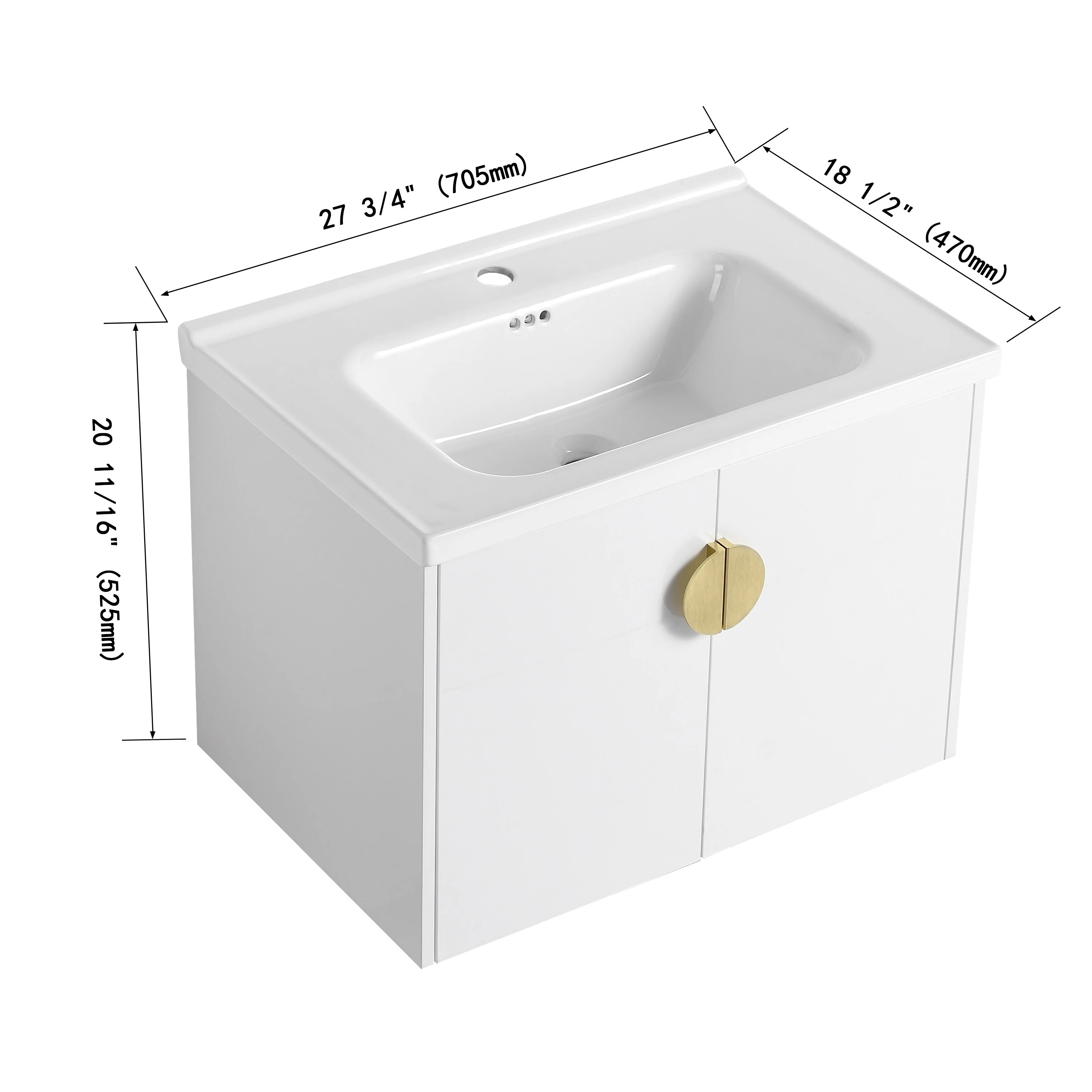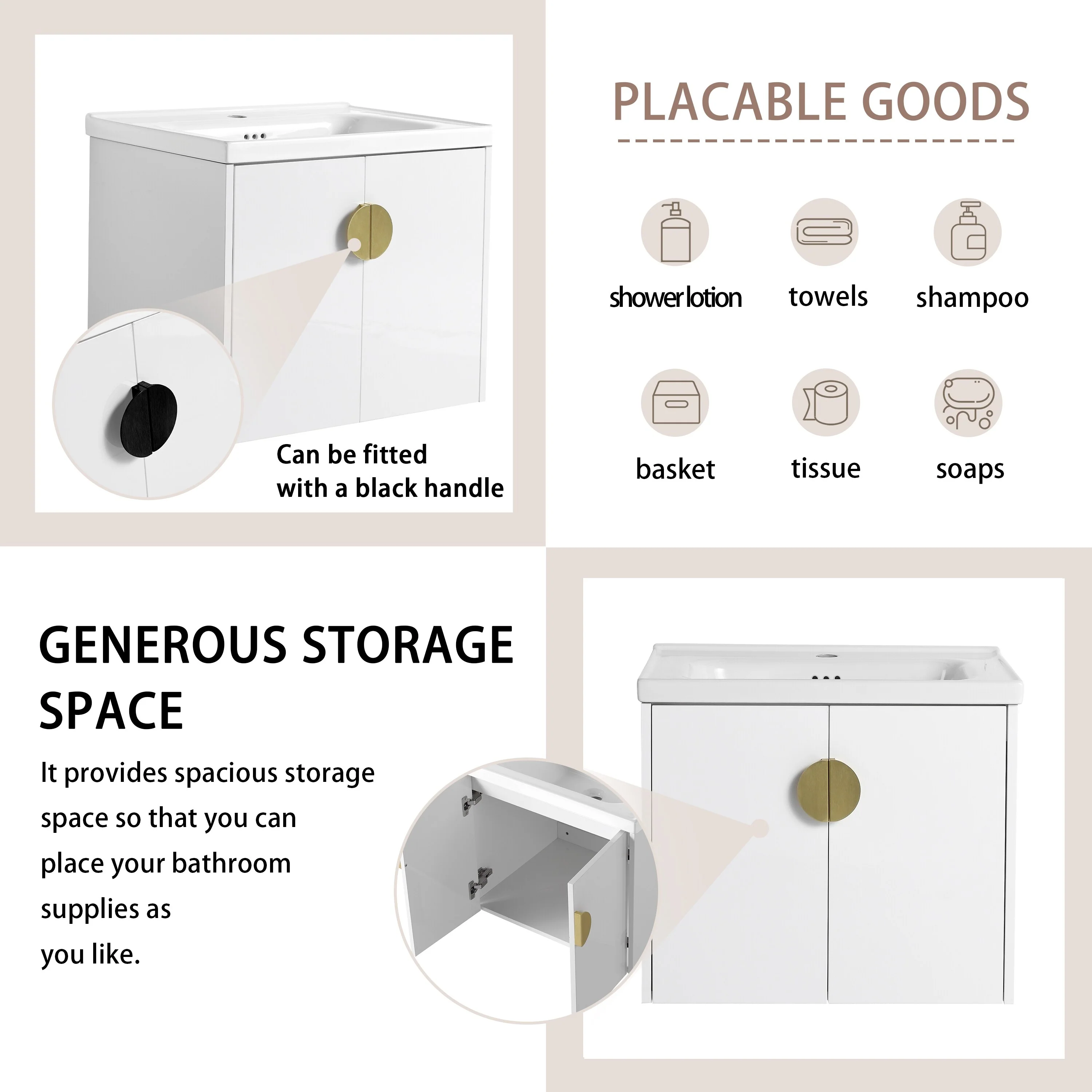 24'' Floating Bathroom Vanity Set, Wall Mounted Bathroom Cabinet with 2 Storage Darwers,White Resin Integrated Basin