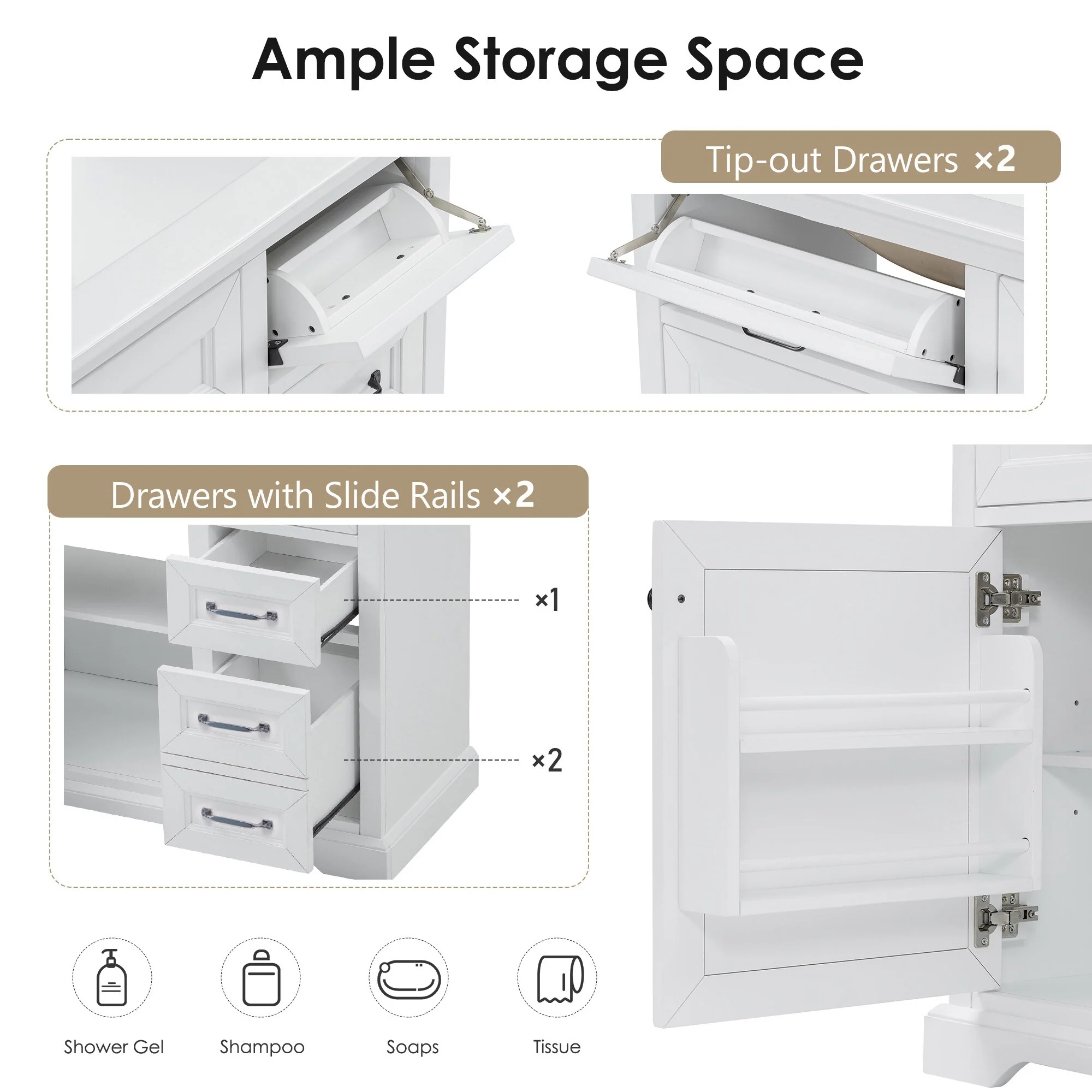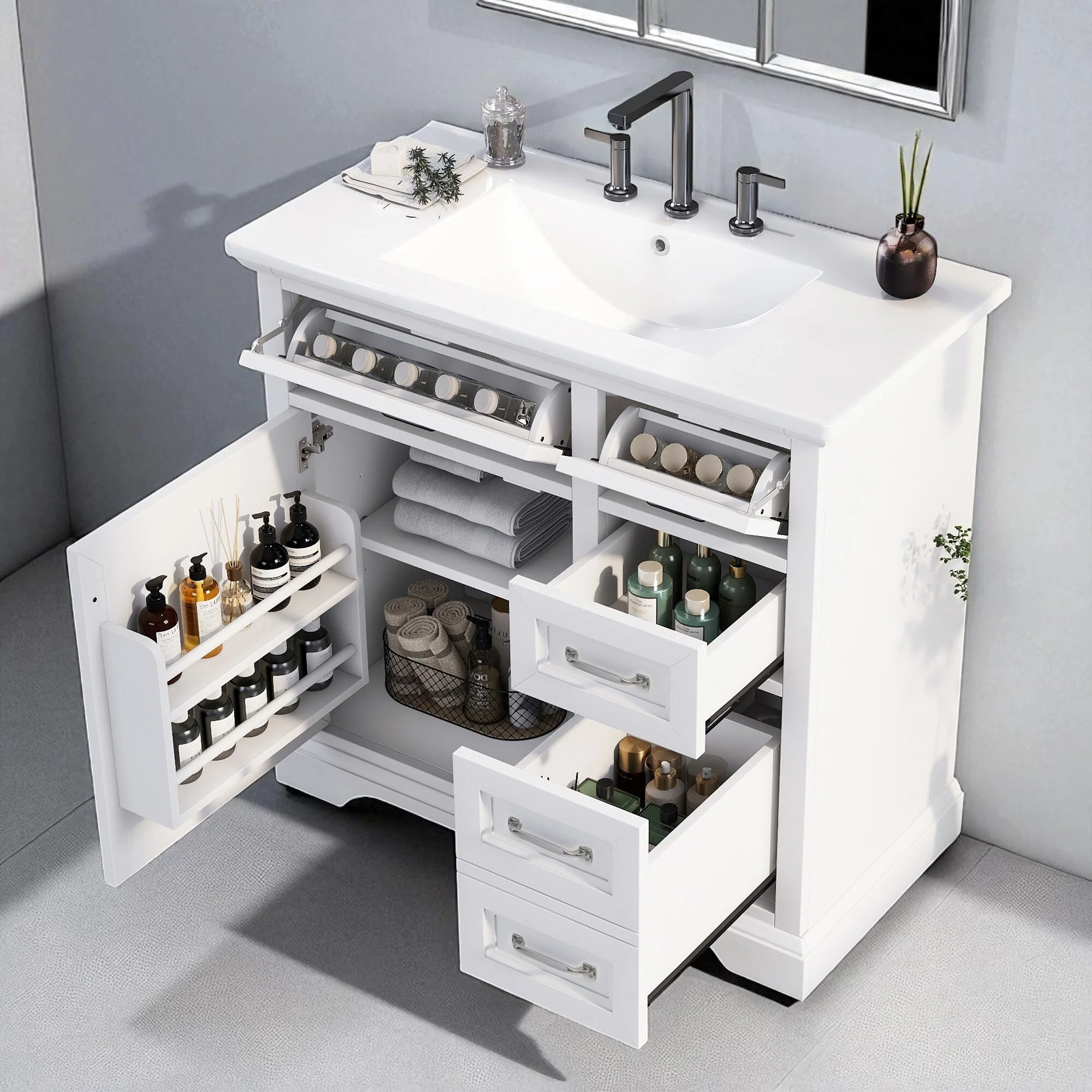 36" Bathroom Vanity Set with Ceramic Undermount Sink, Soft-Close Hinges & Tip-Out Drawers for Smart Storage