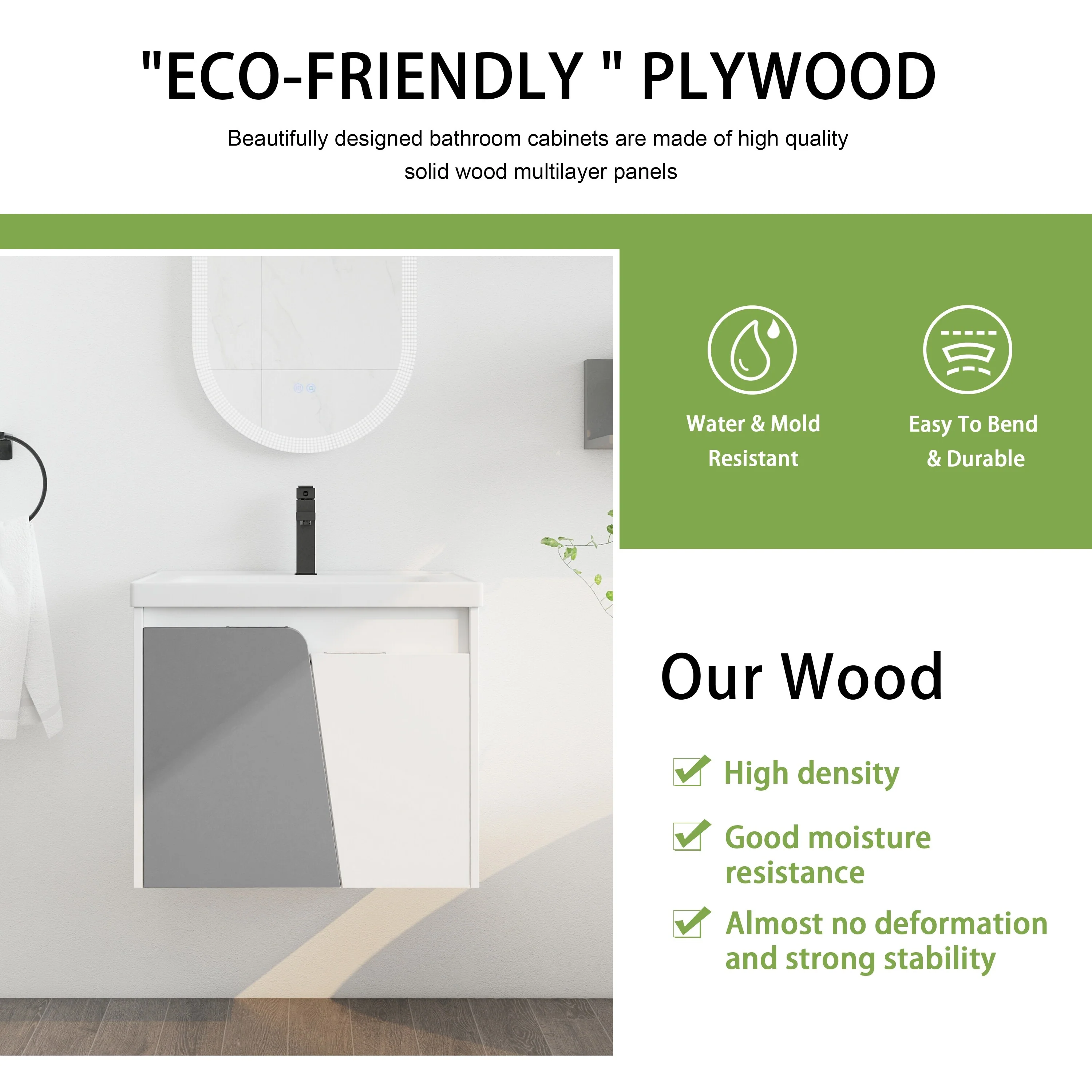 GDFStudio - Eliana Modern Freestanding Bathroom Vanity with Soft-Close Doors and Ceramic Sink