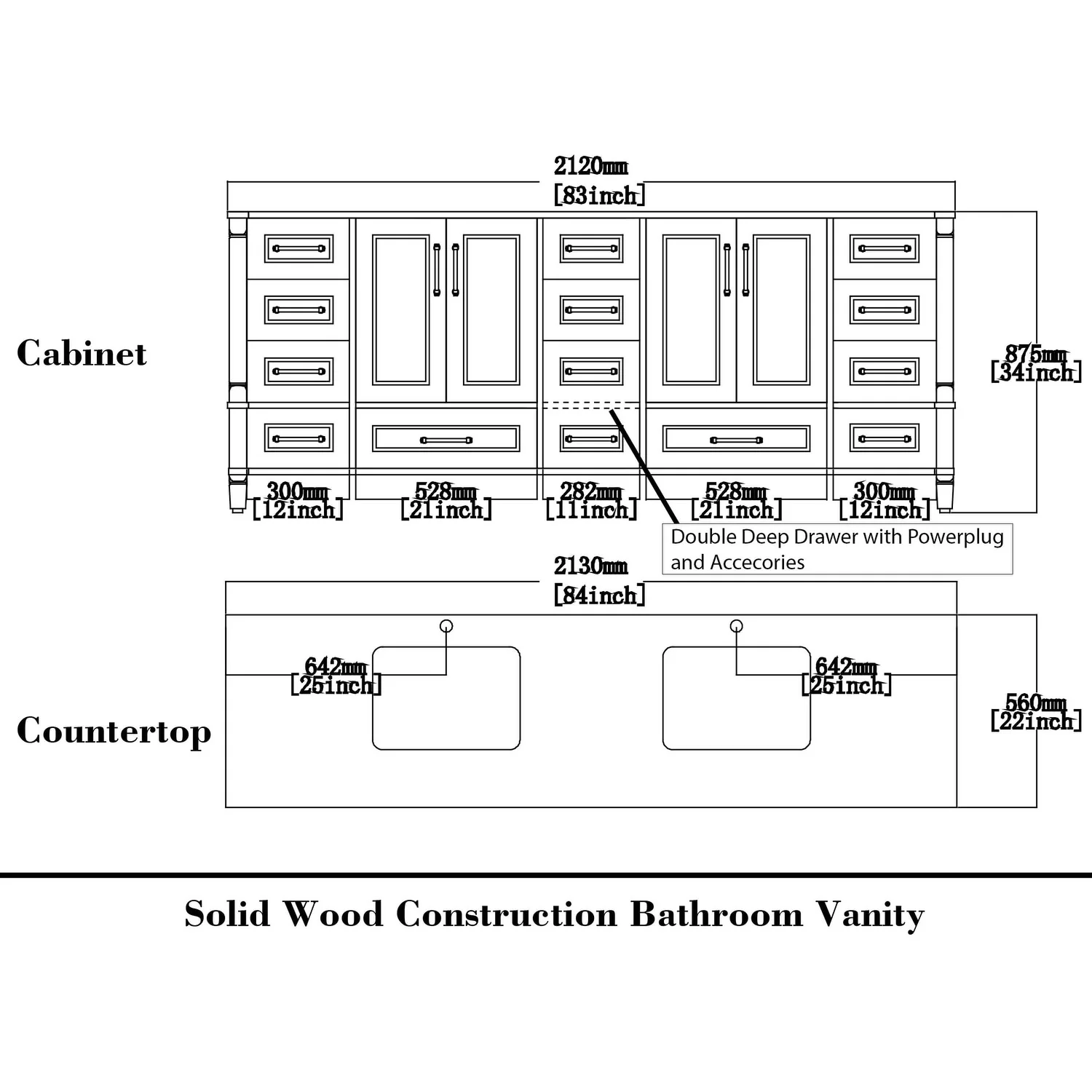 Solid Wood Bathroom Vanity with Ceramic Undermount Sink - 12" Soft-Close Drawer Slides