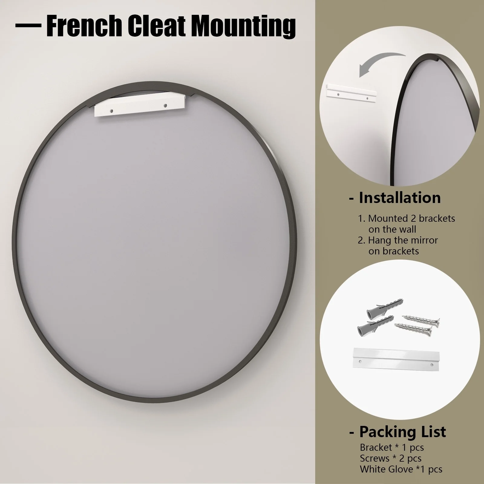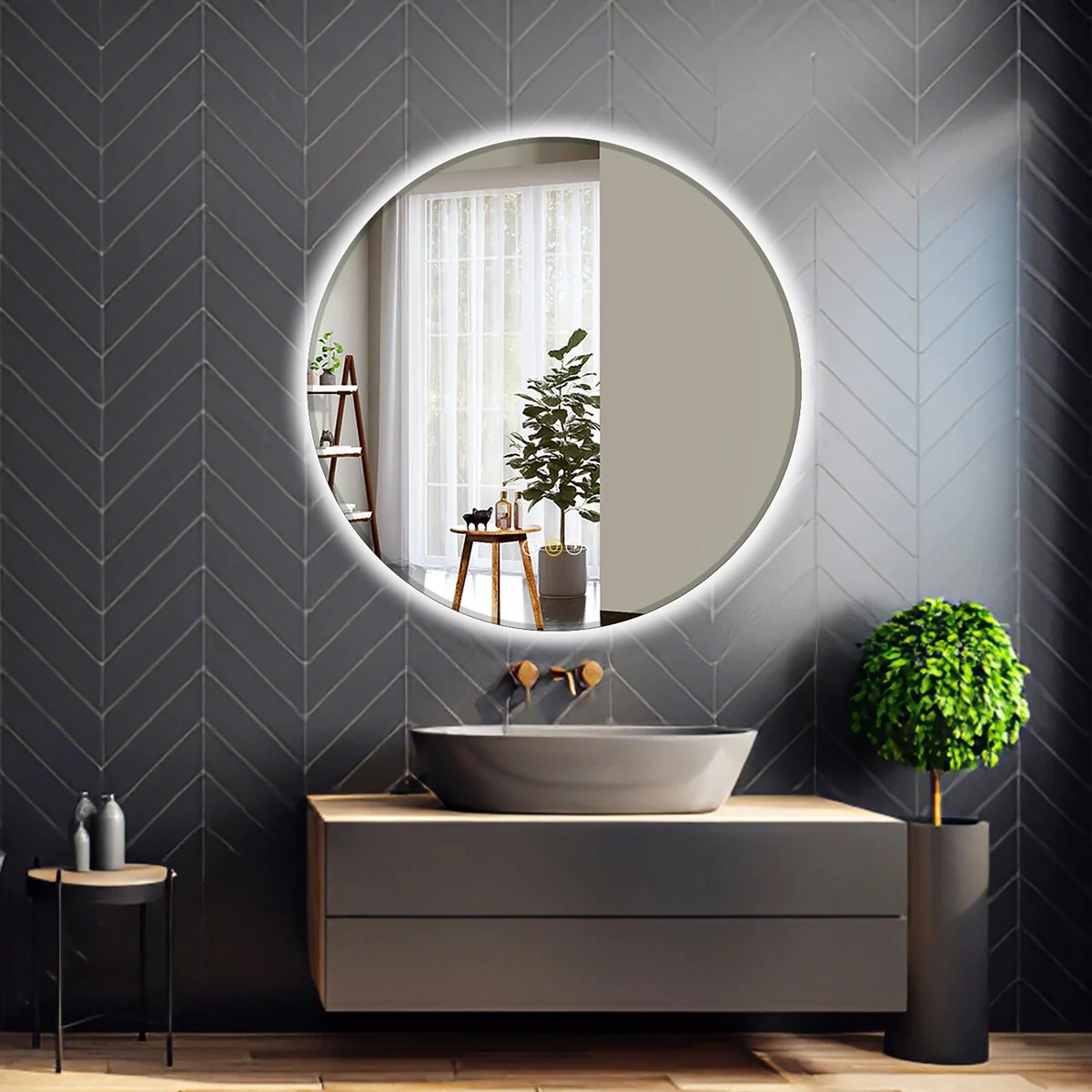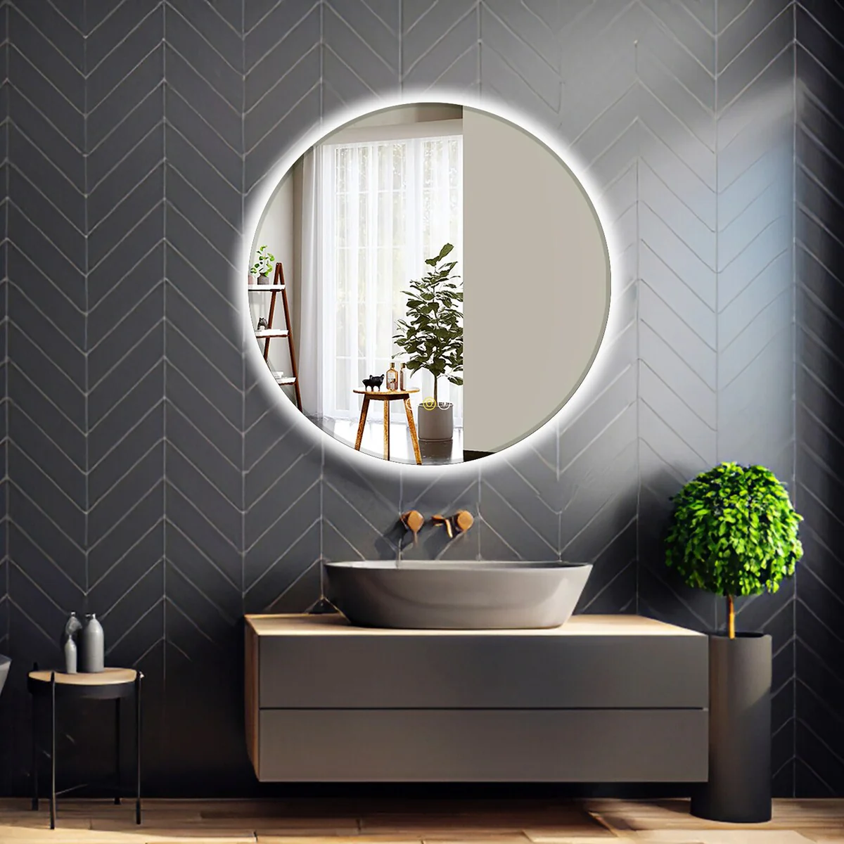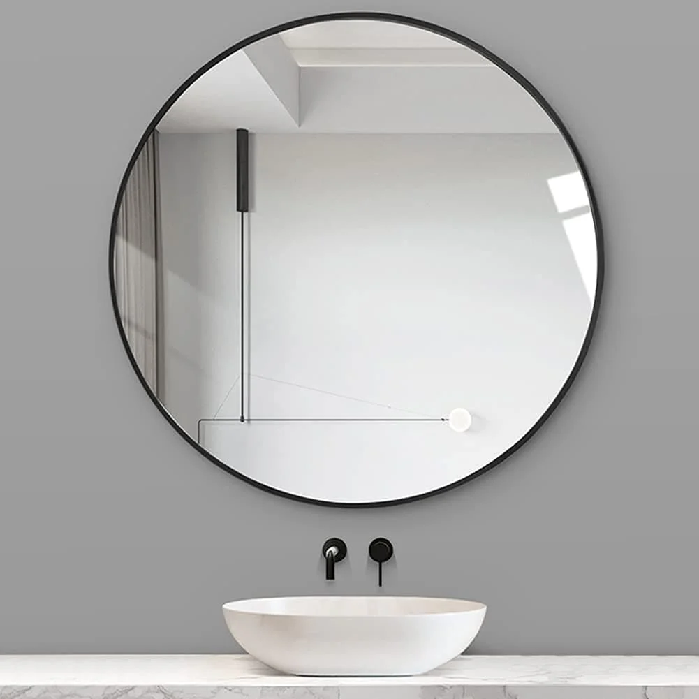 Modern 30-Inch Round Bathroom Wall Mirror, Premium HD Glass with Brushed Metal Frame and Easy Installation