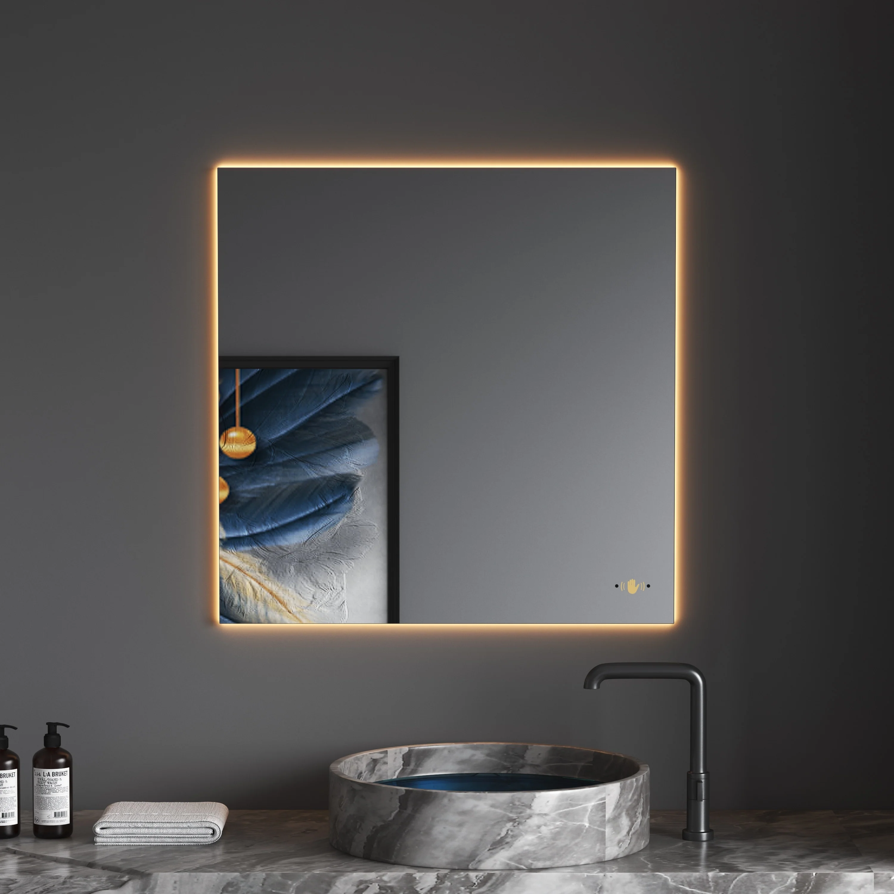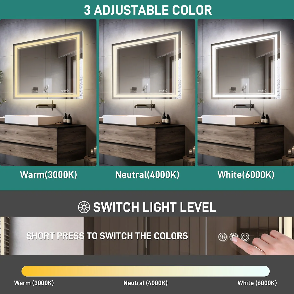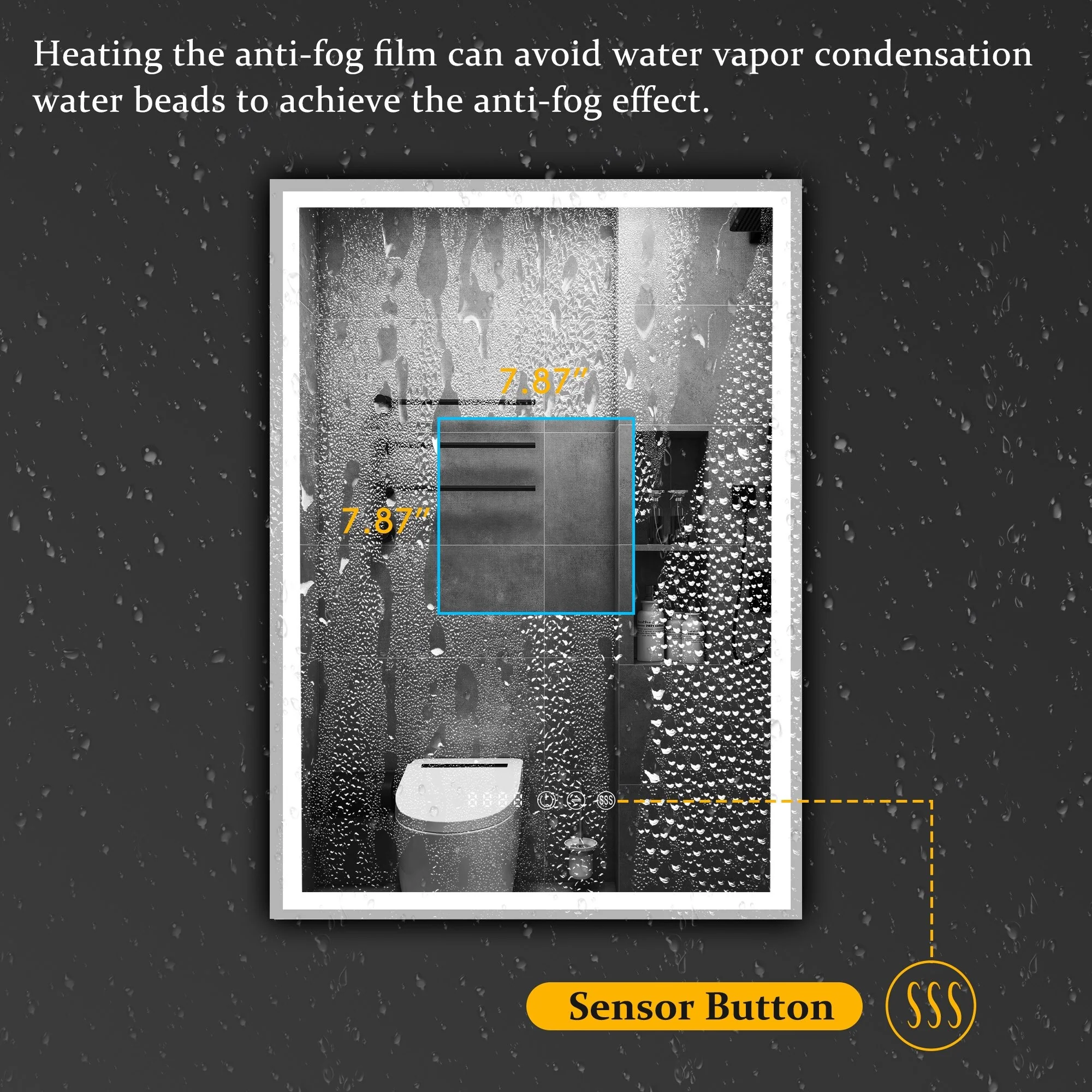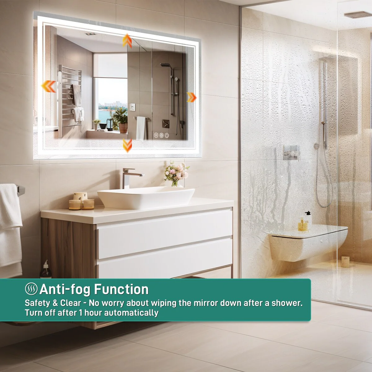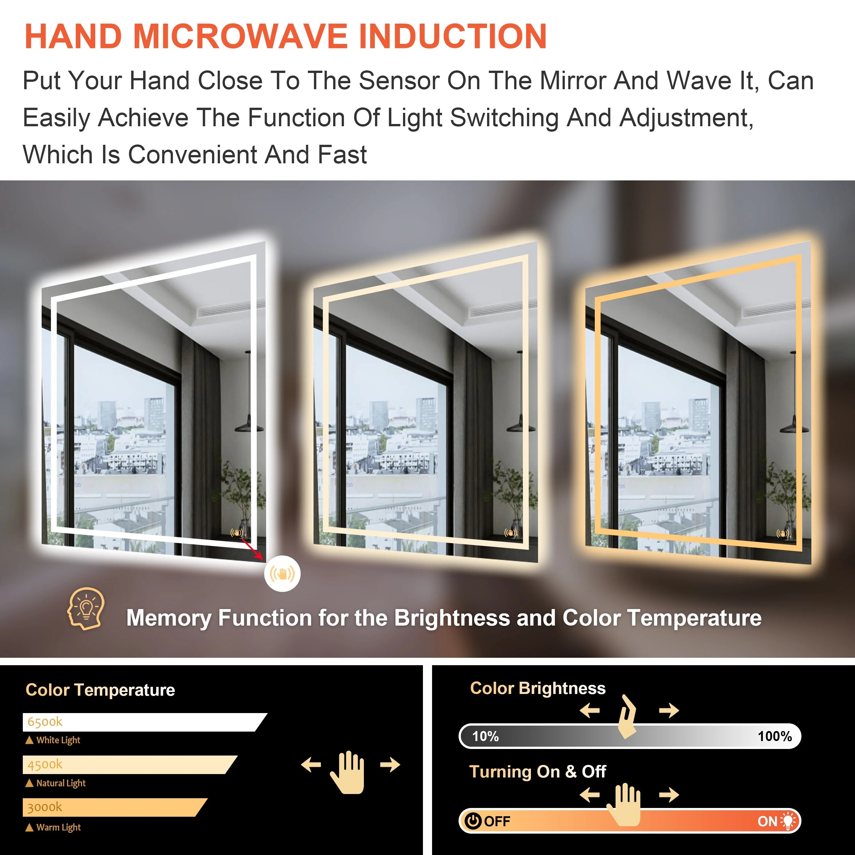 CB HOME LED Bathroom Vanity Mirror, Lighted Wall Mounted Mirror, Hand Wave Sensor Dimmable Backlit Frameless Mirror