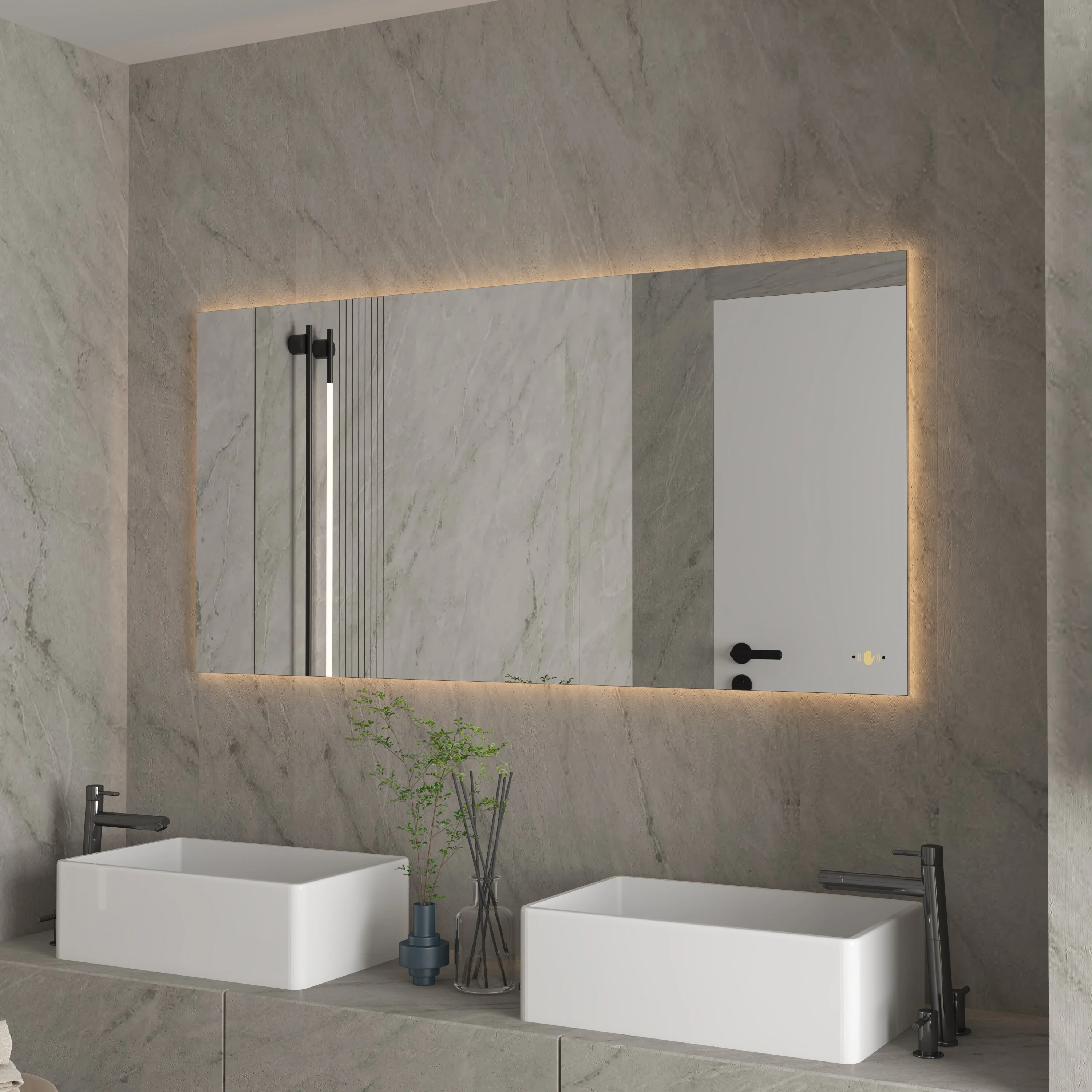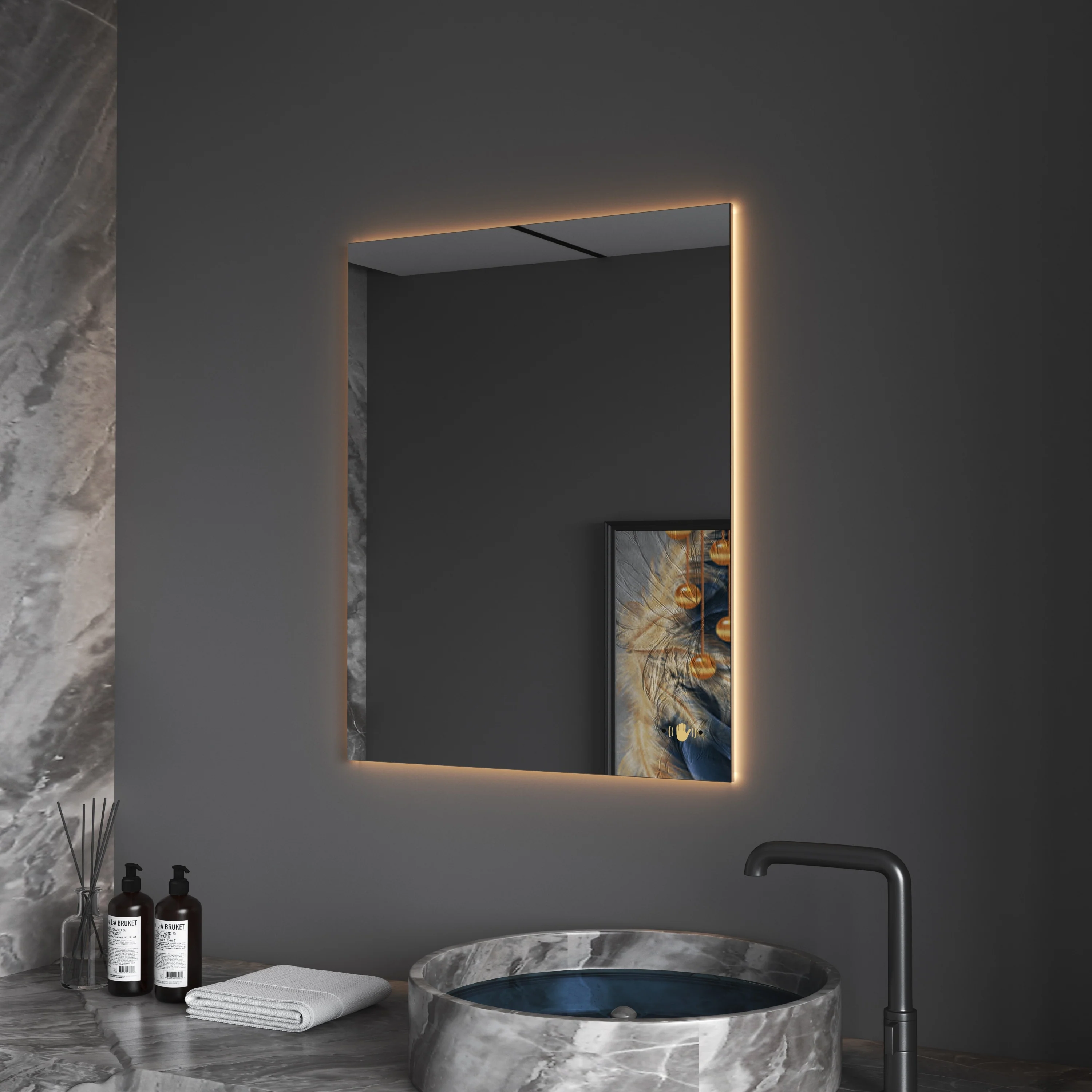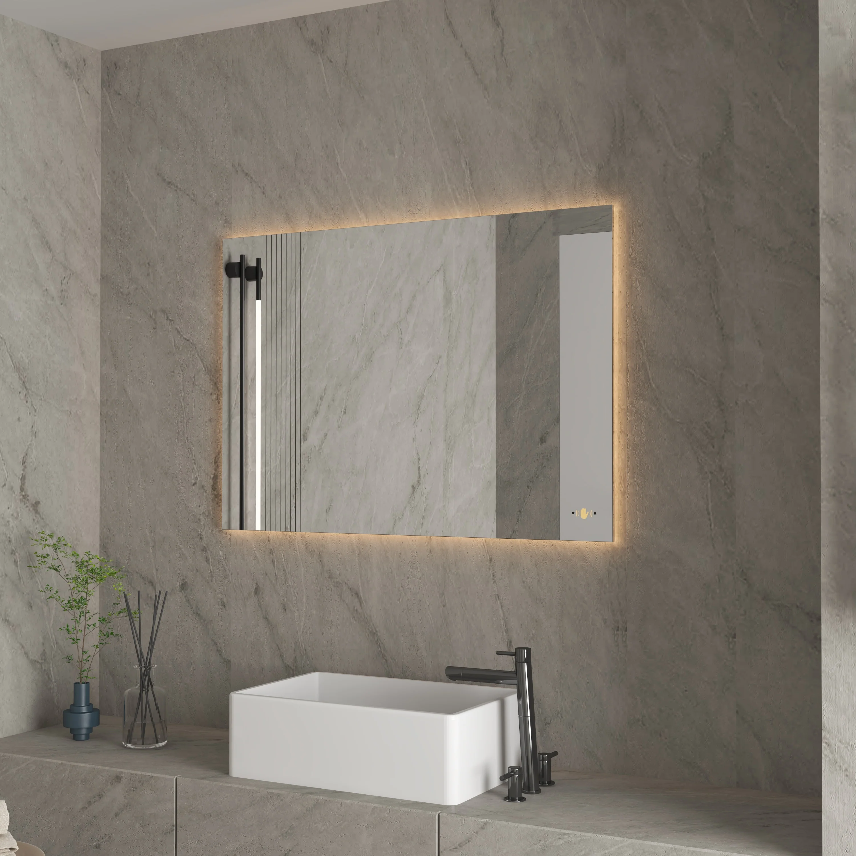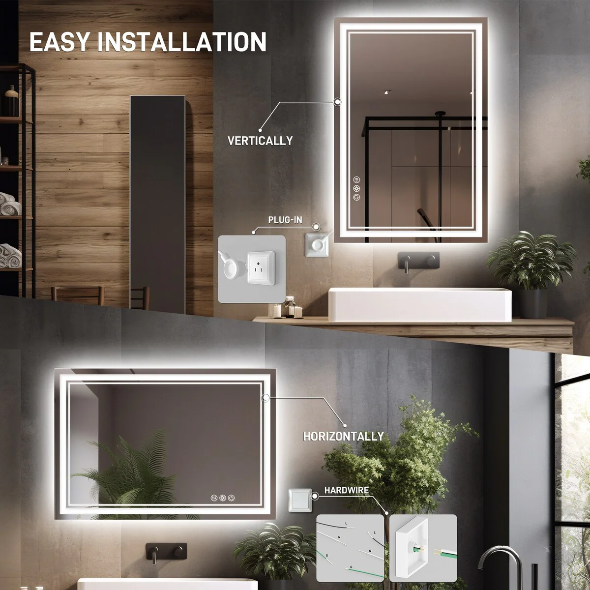 CB HOME LED Bathroom Vanity Mirror, Lighted Wall Mounted Mirror, Hand Wave Sensor Dimmable Backlit Frameless Mirror