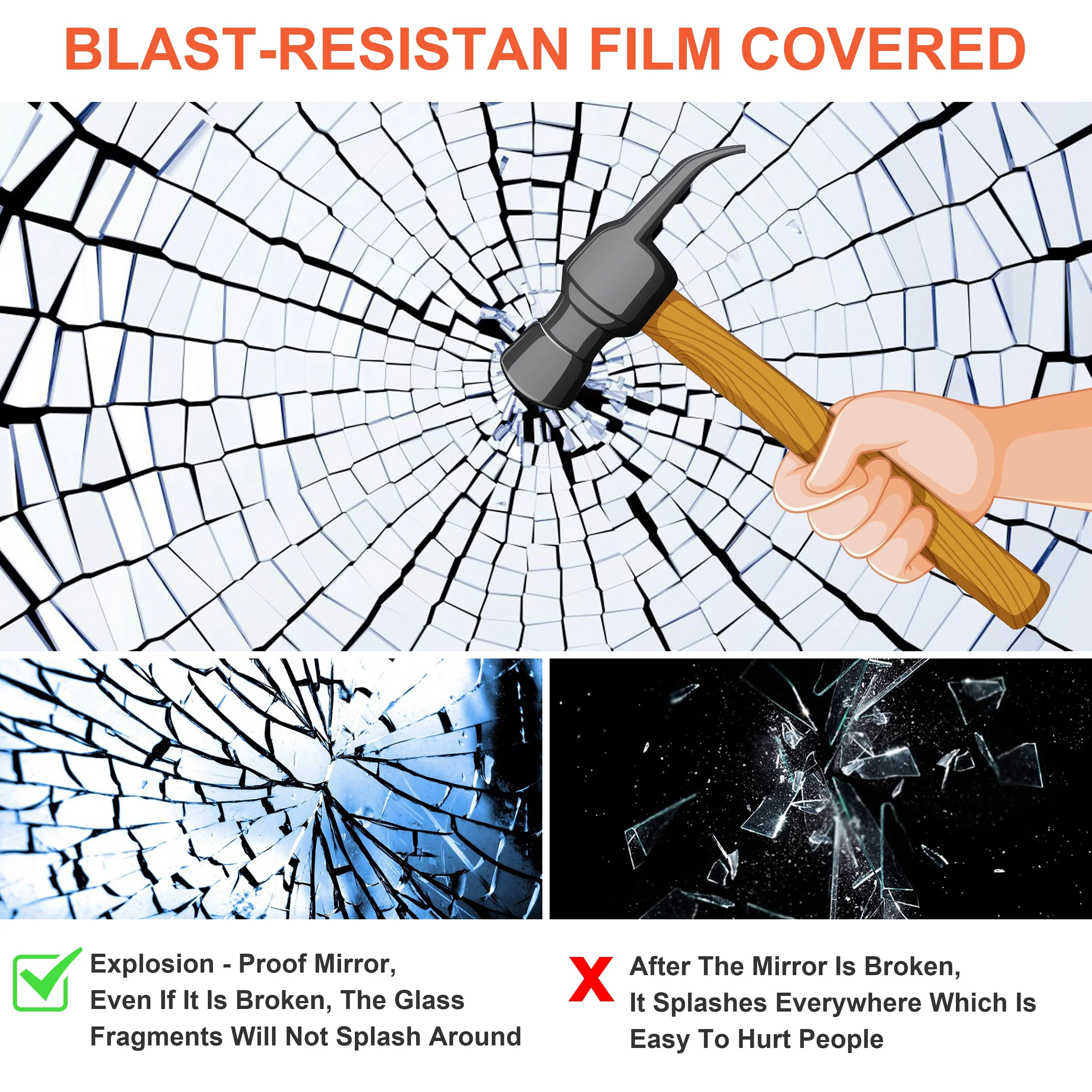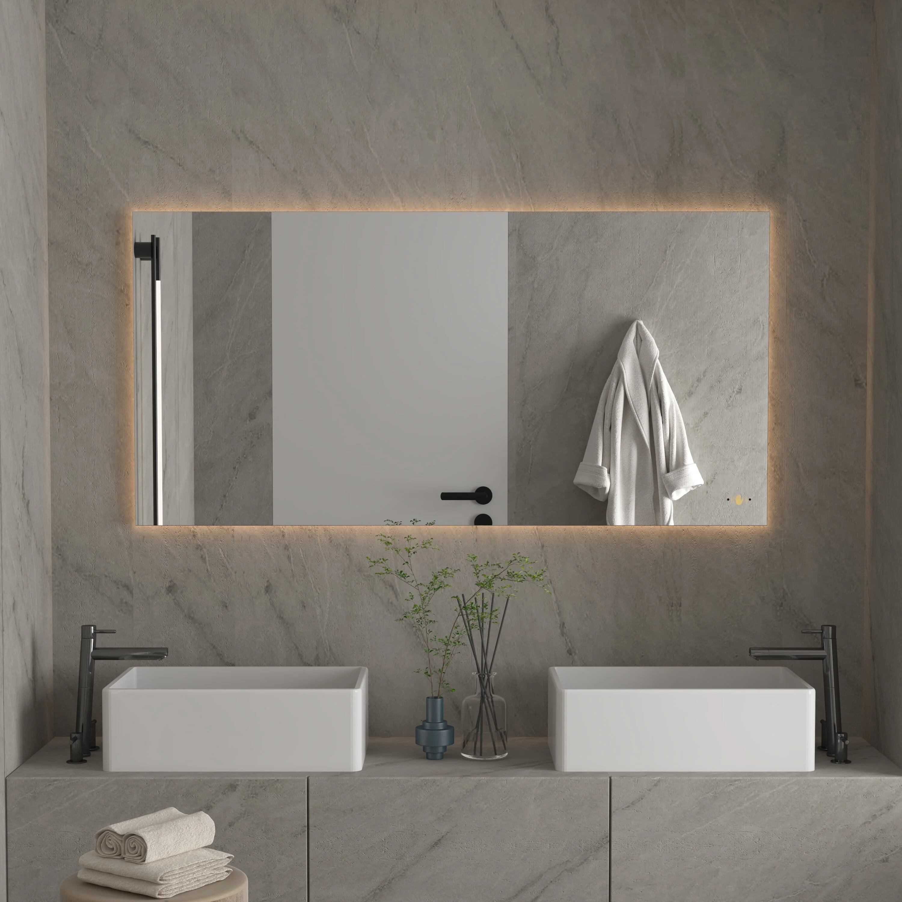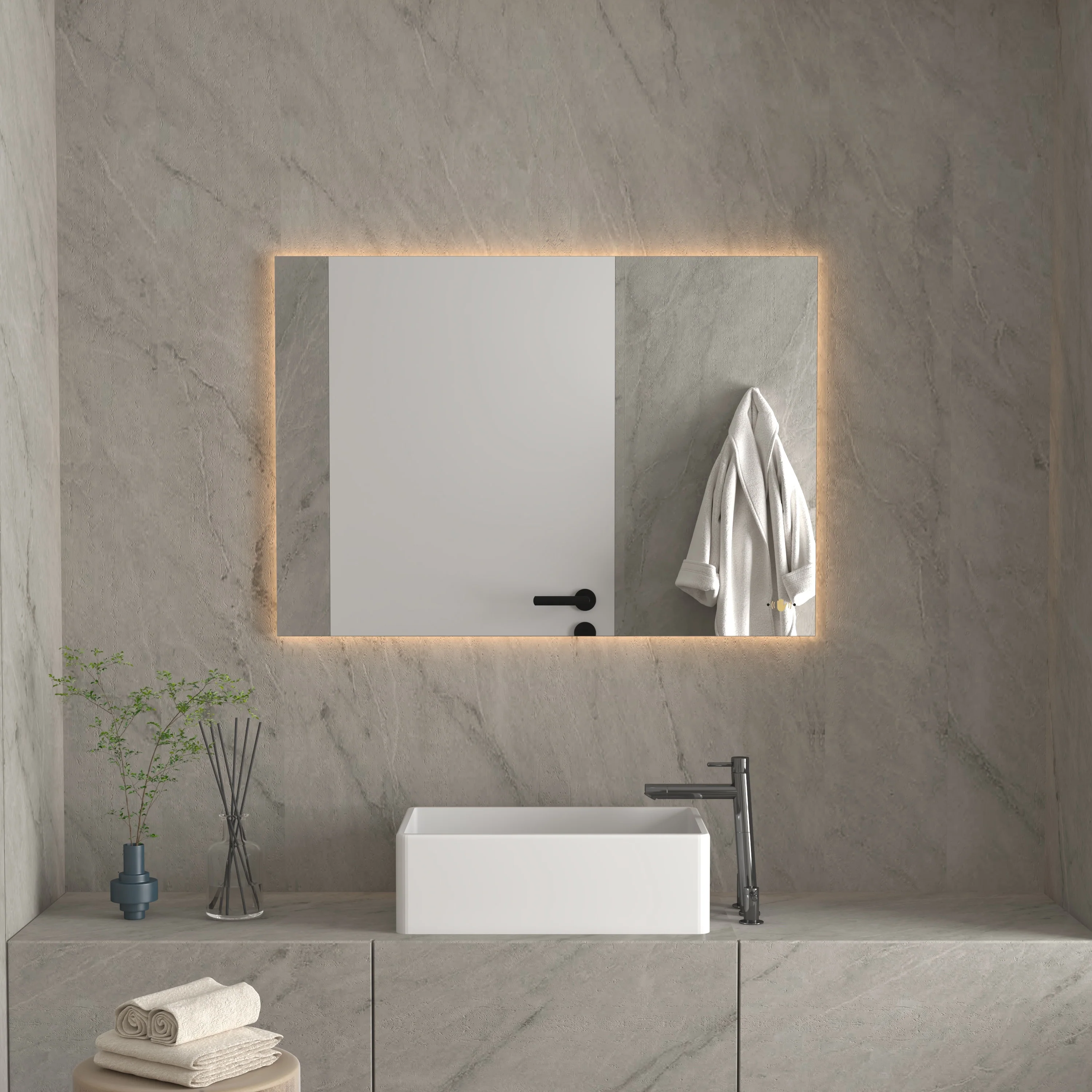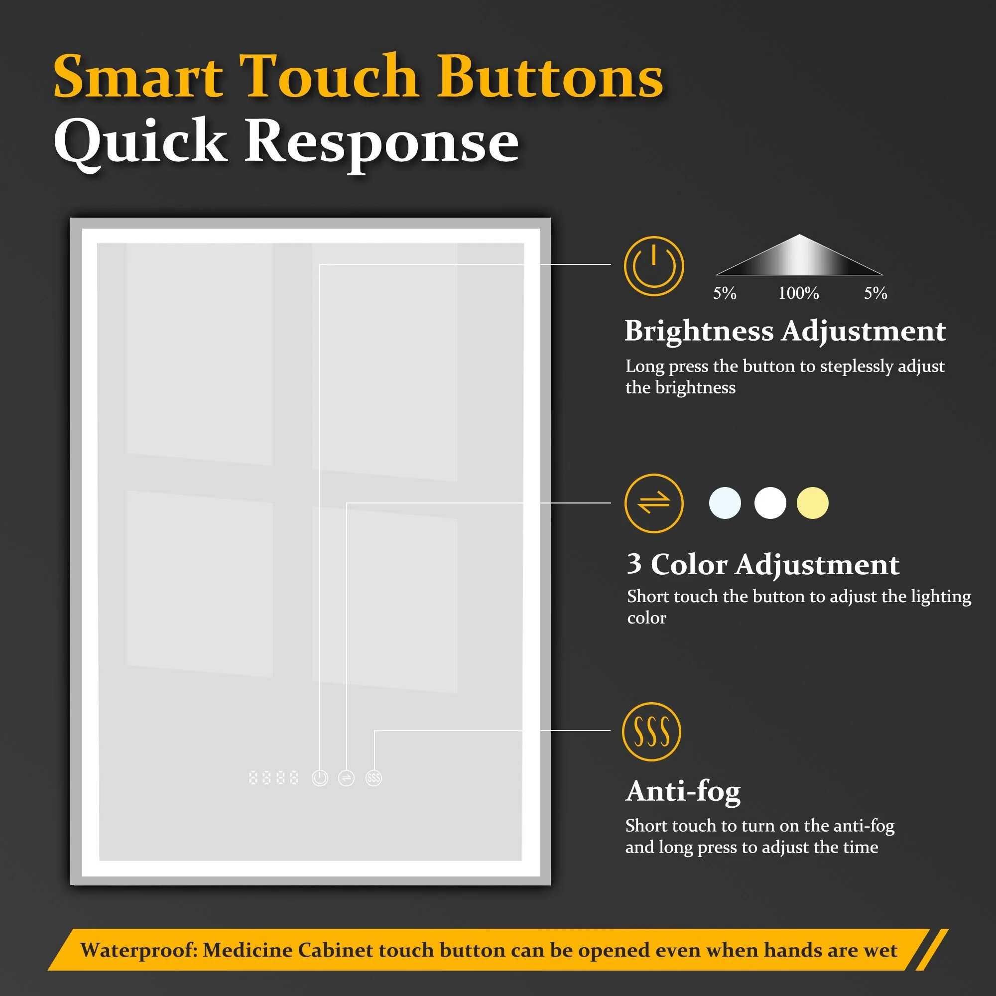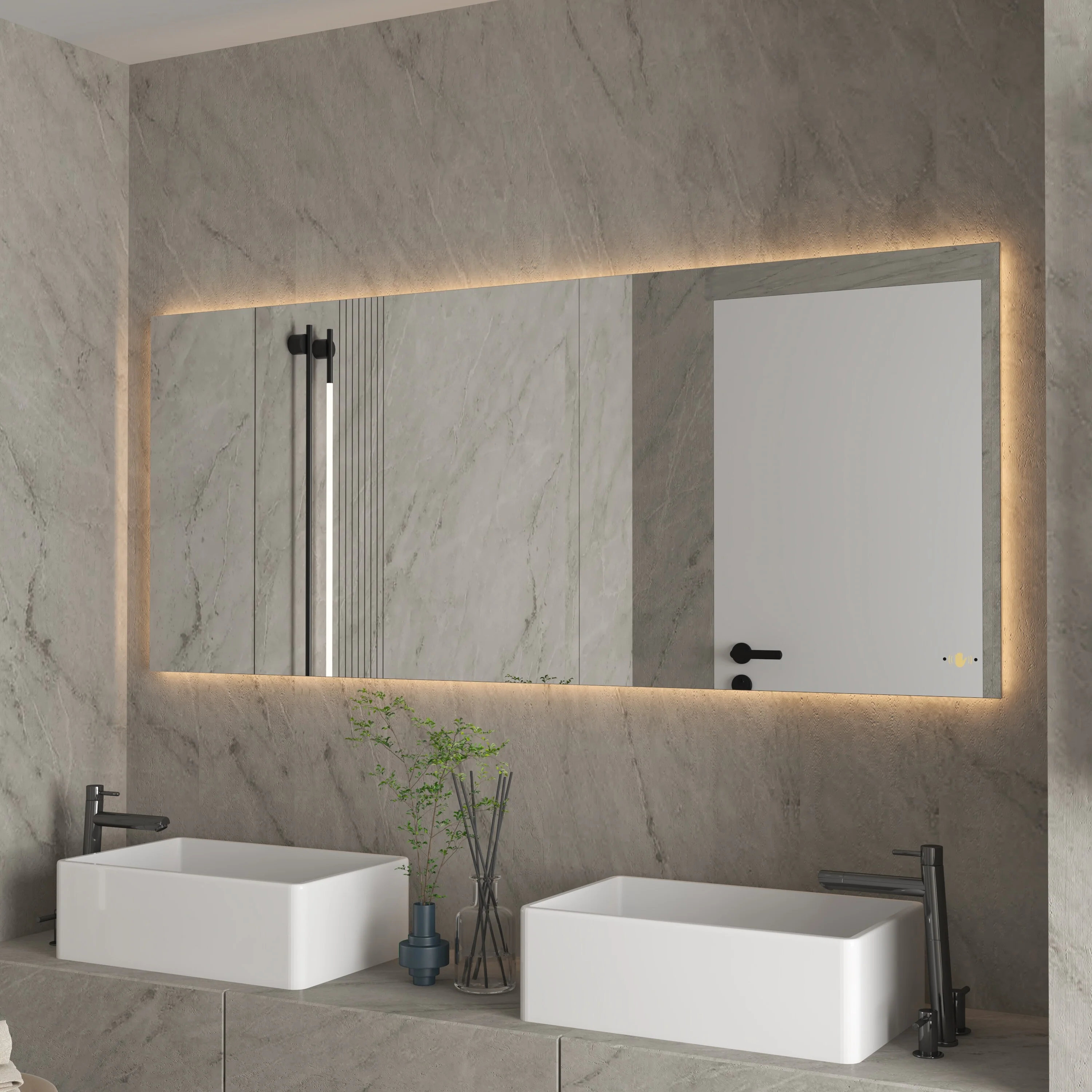CB HOME LED Bathroom Vanity Mirror, Lighted Wall Mounted Mirror, Hand Wave Sensor Dimmable Backlit Frameless Mirror