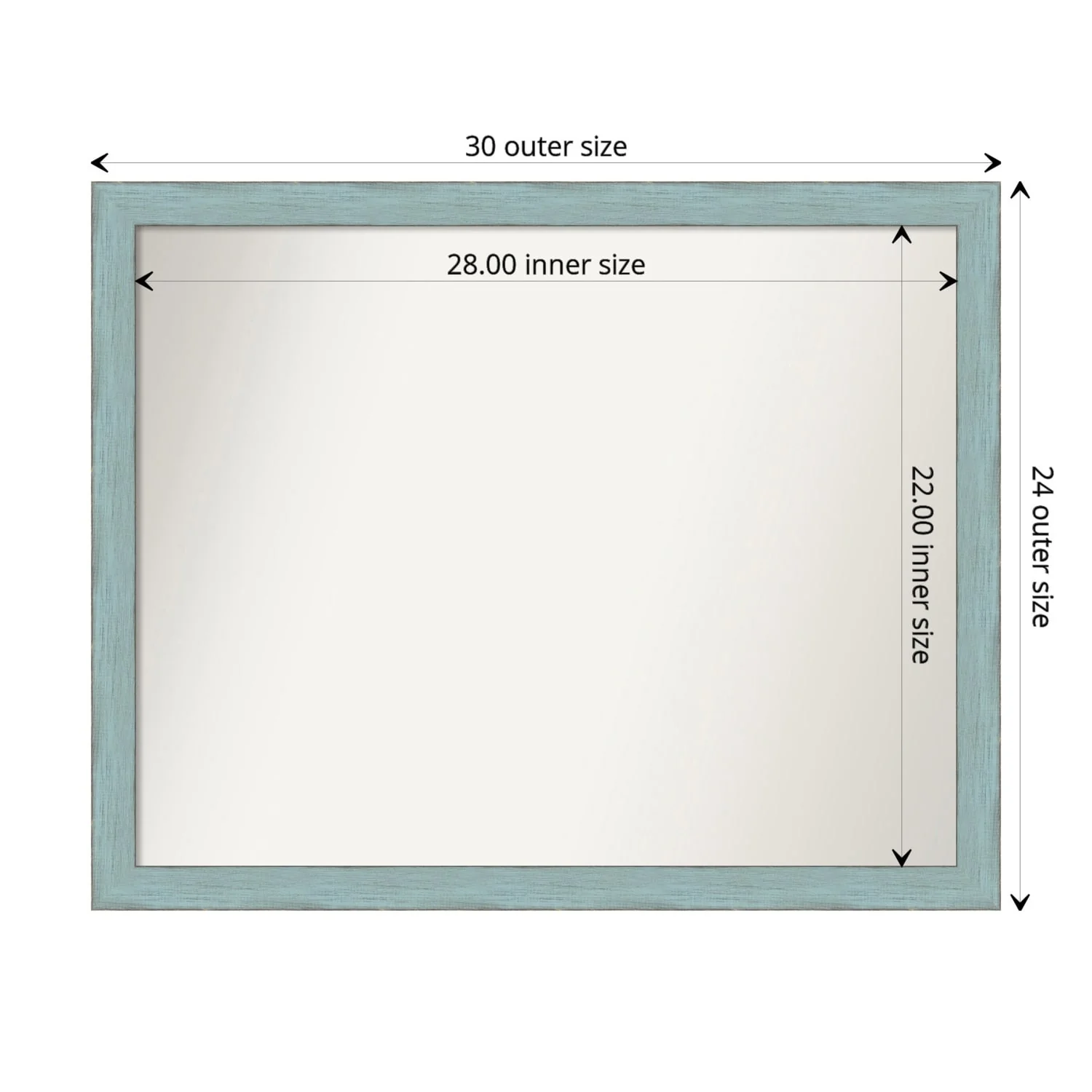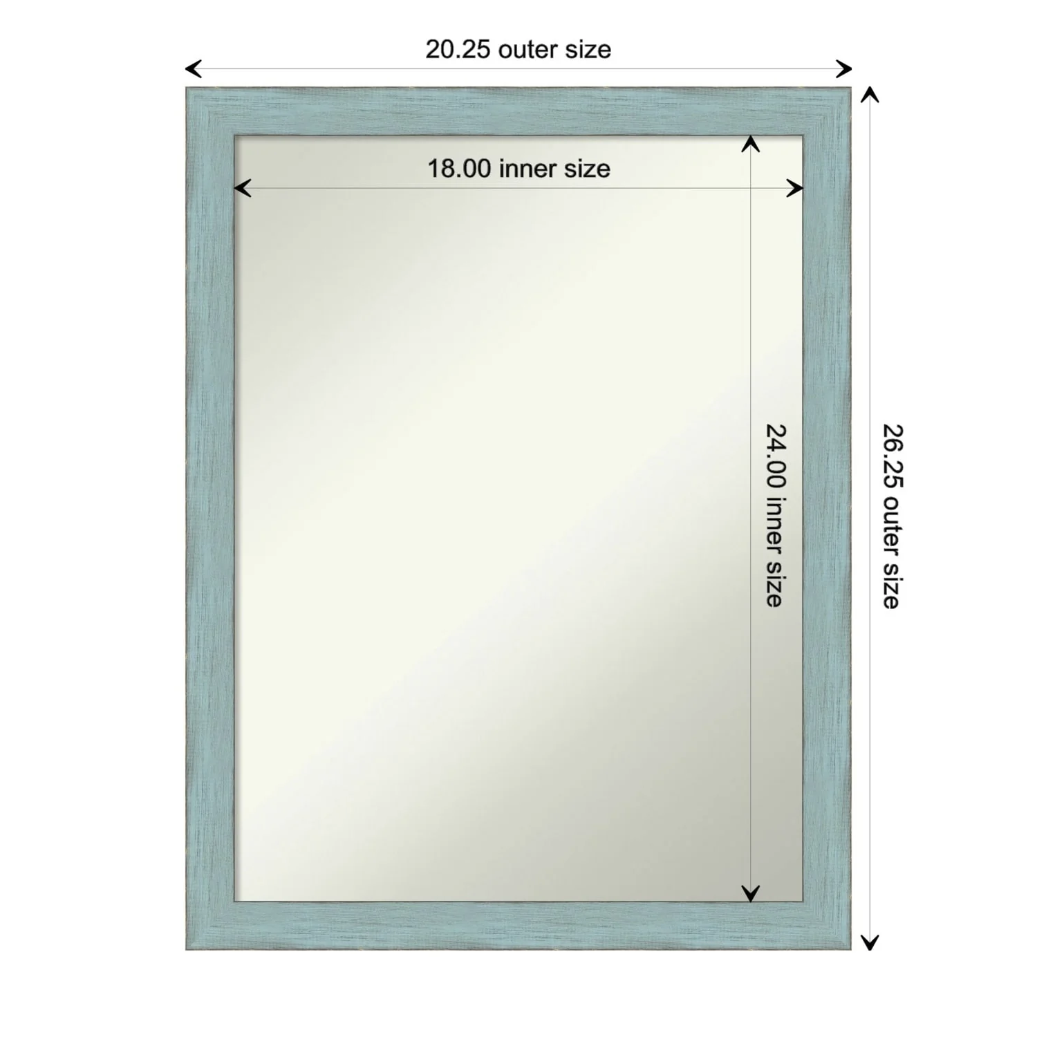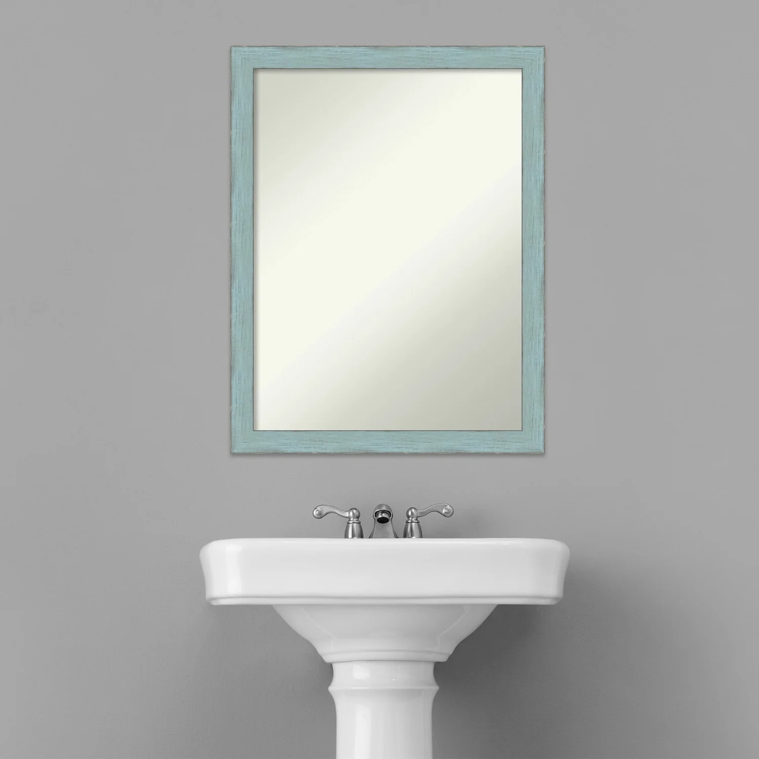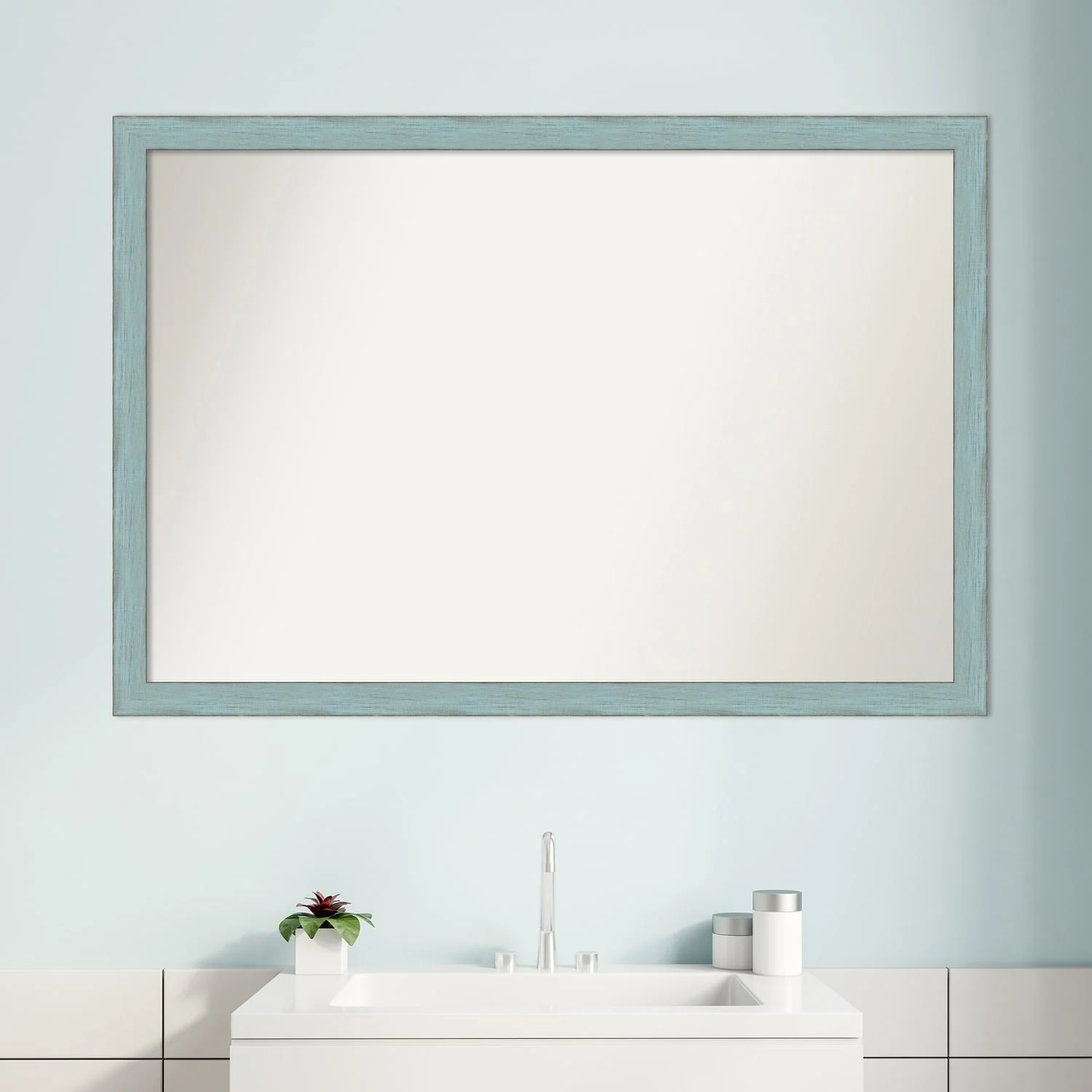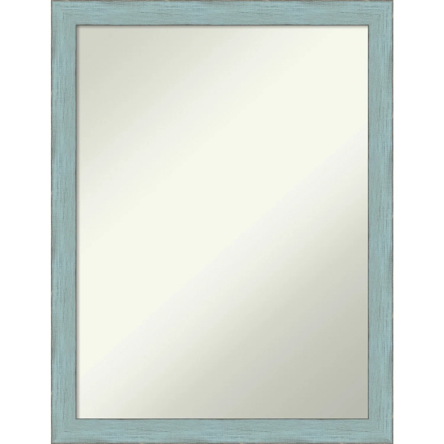 Non-Beveled Wood Bathroom Wall Mirror - Sky Blue Rustic Frame