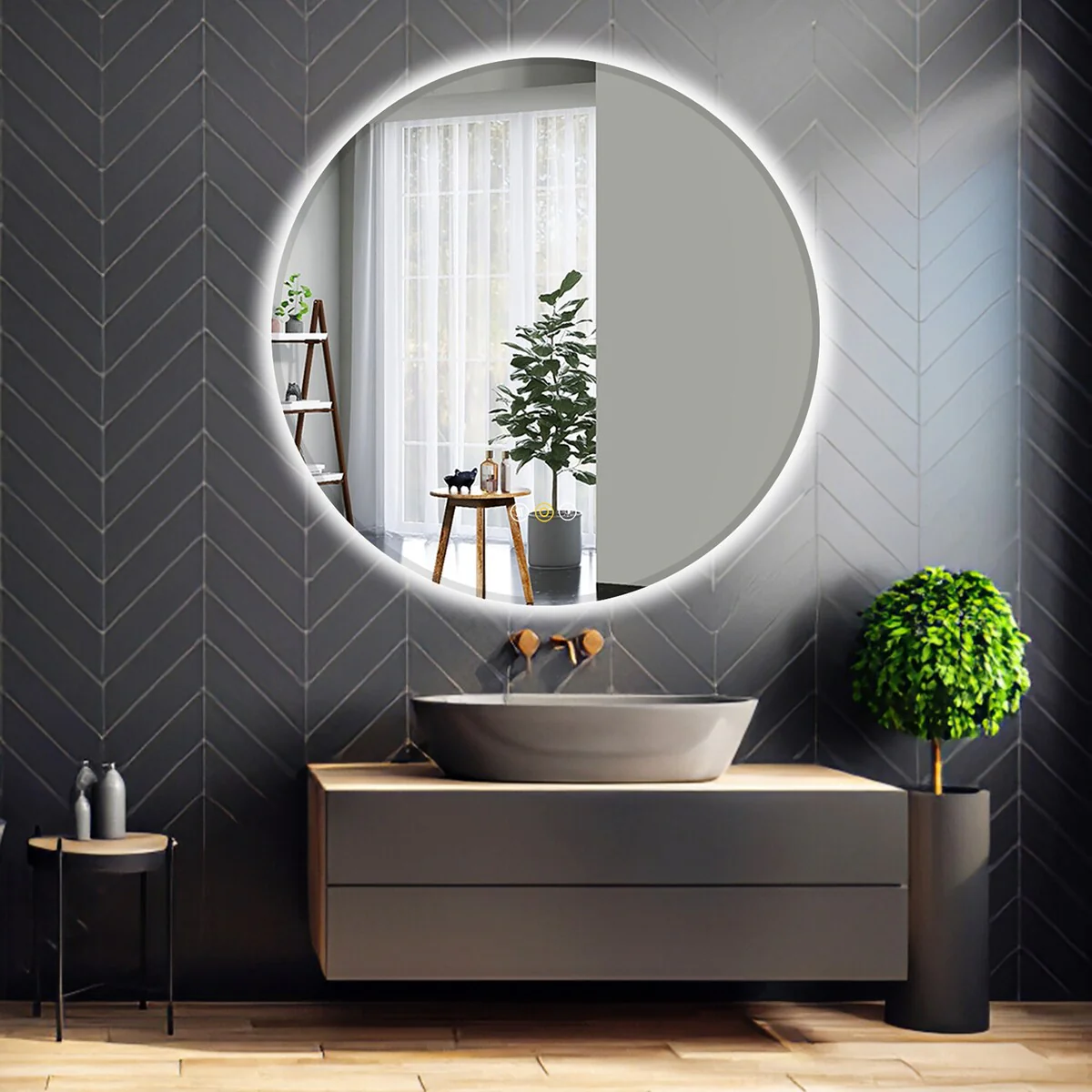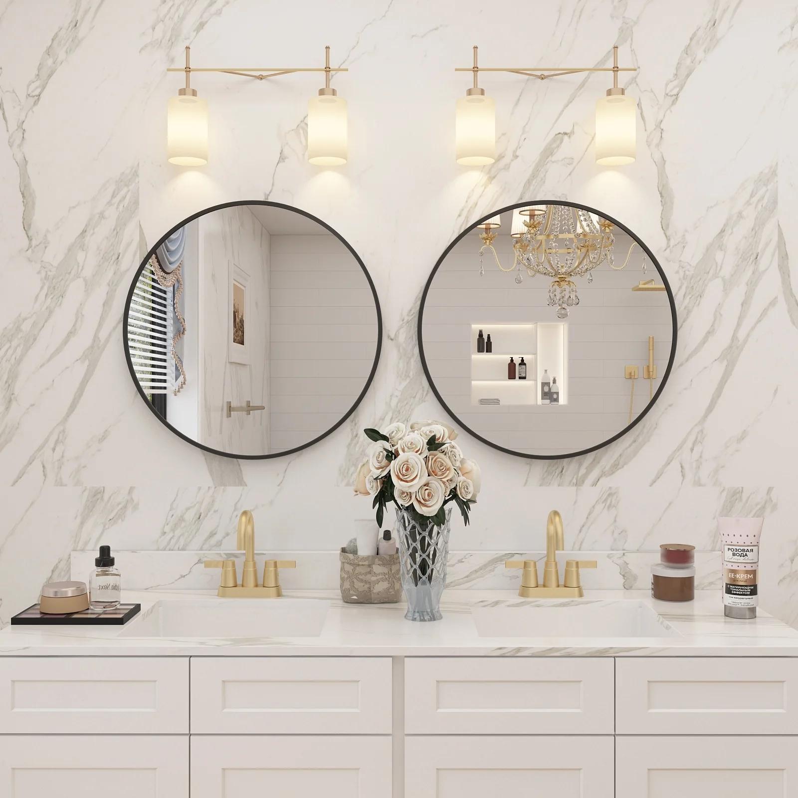 Round Square Bathroom Vanity Mirror