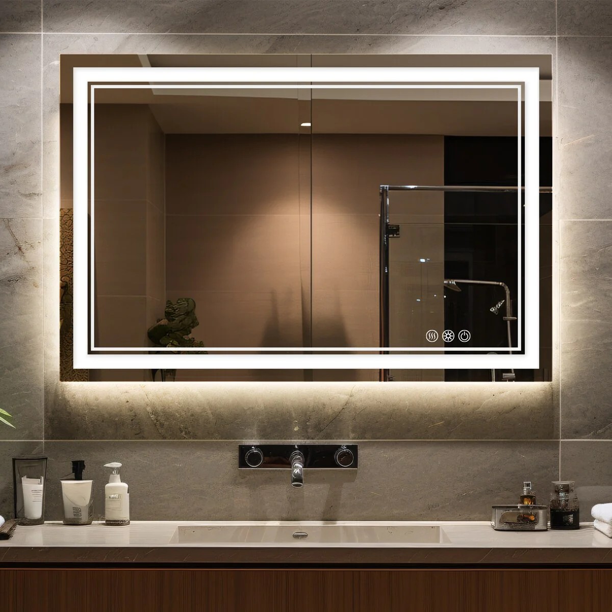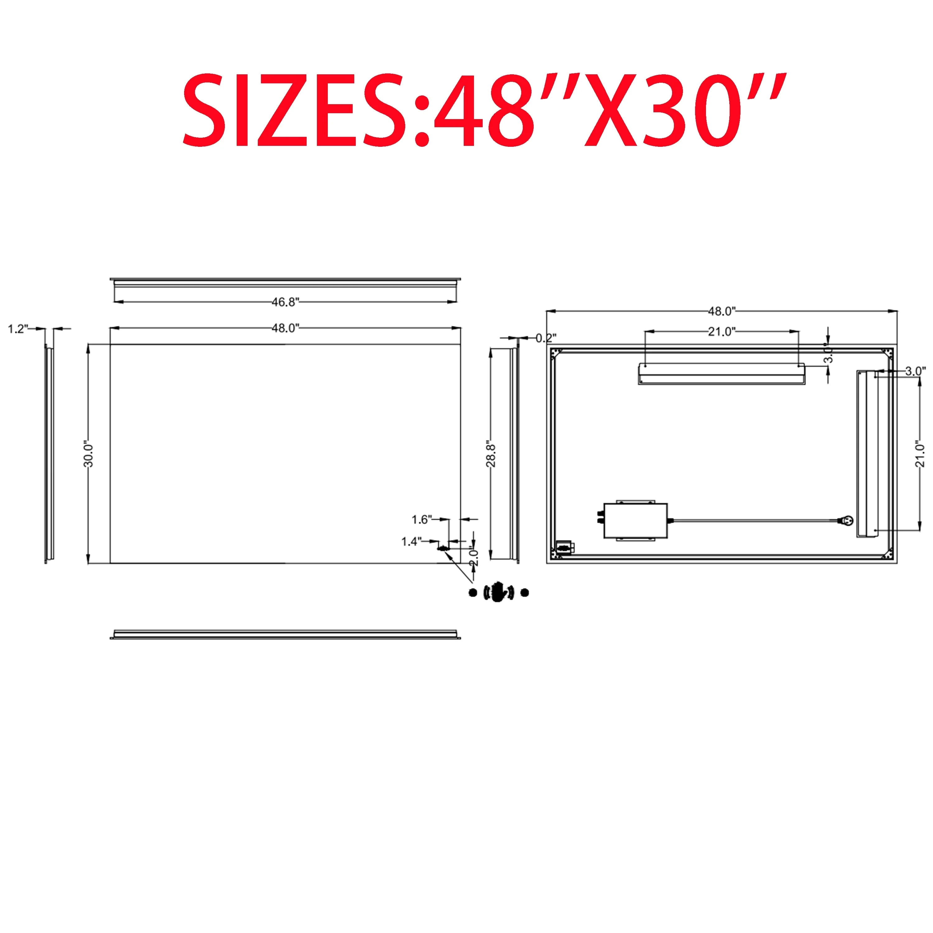 48 x 32 Inch Bathroom Vanity Mirror with Dual LED Light Strips - 48*32