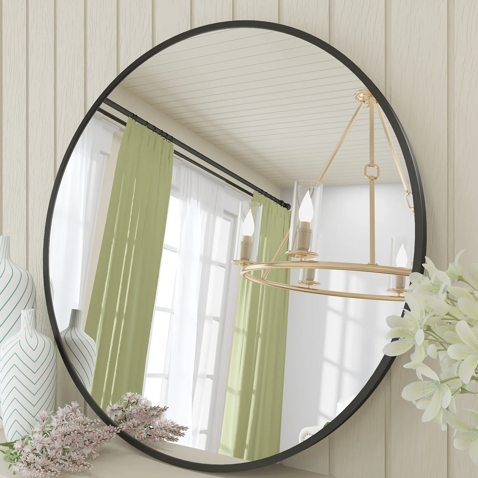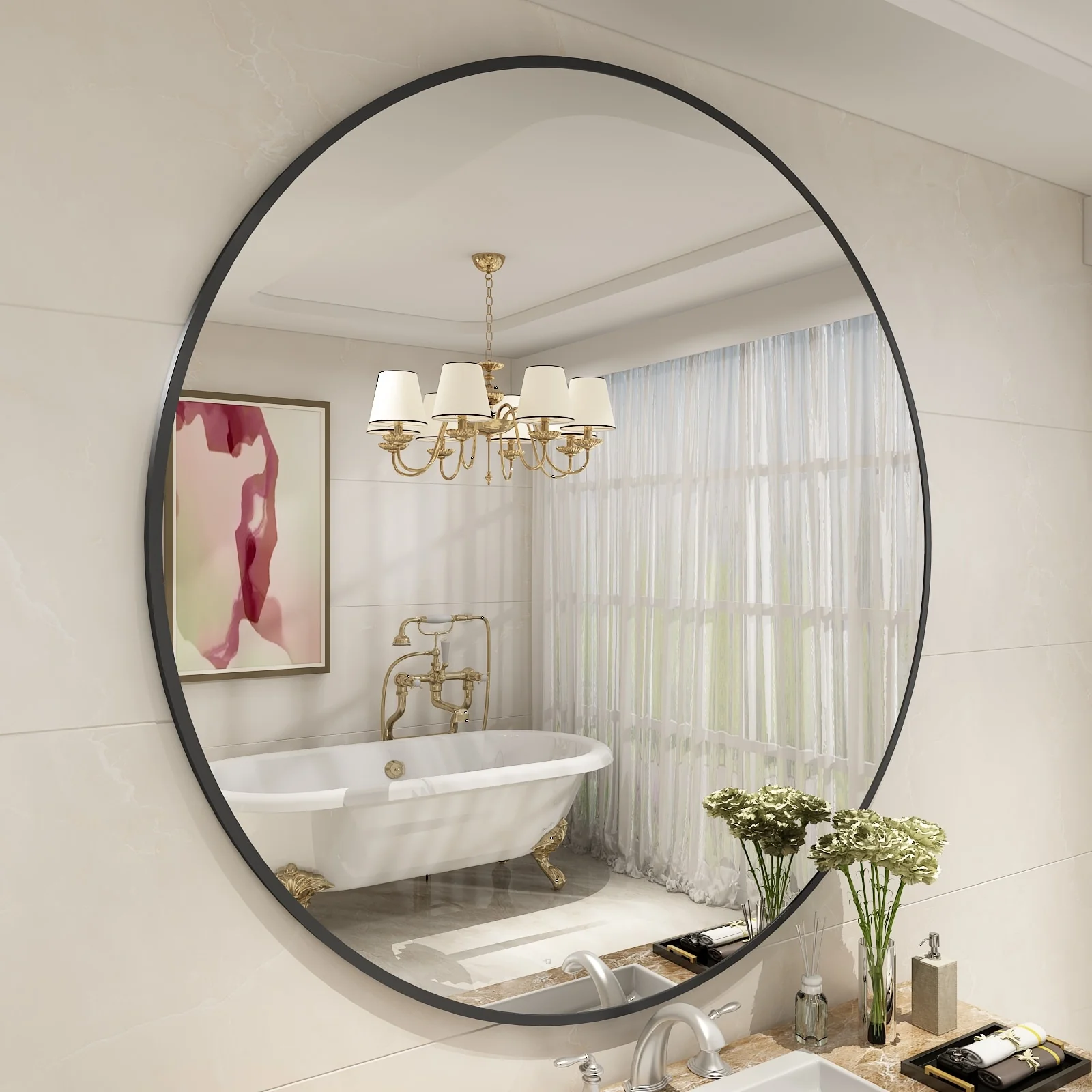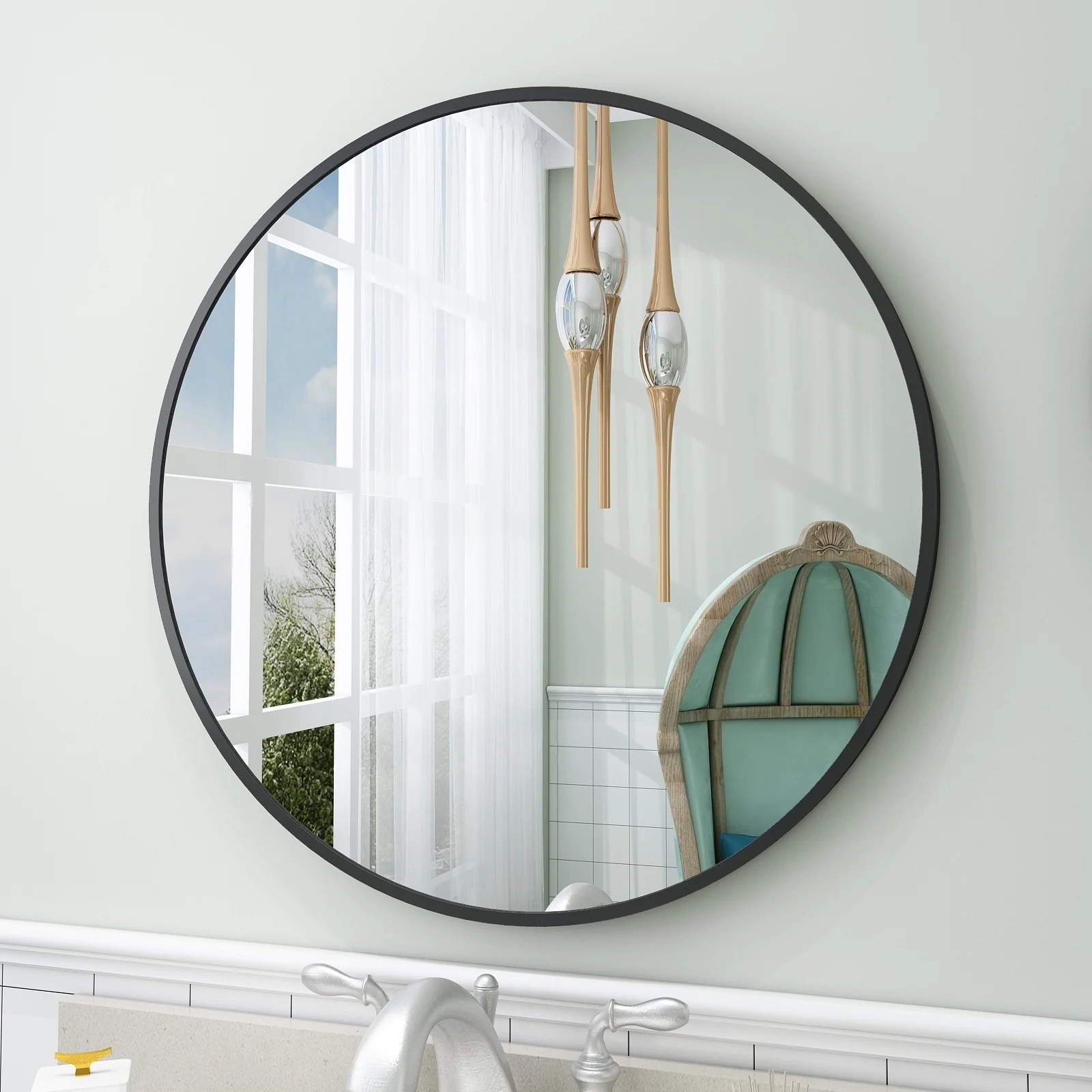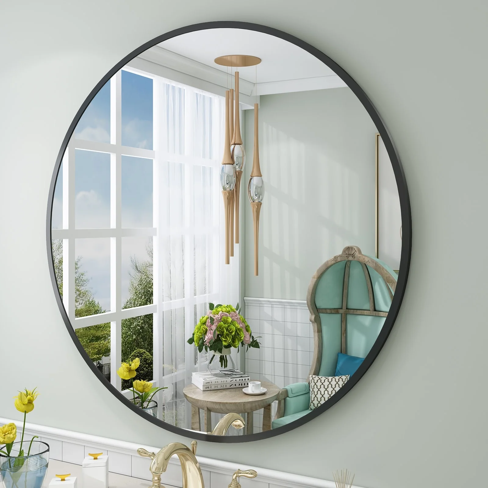 Apmir Round Metal Black Frame Bathroom Vanity Mirror Wall-mounted mirror
