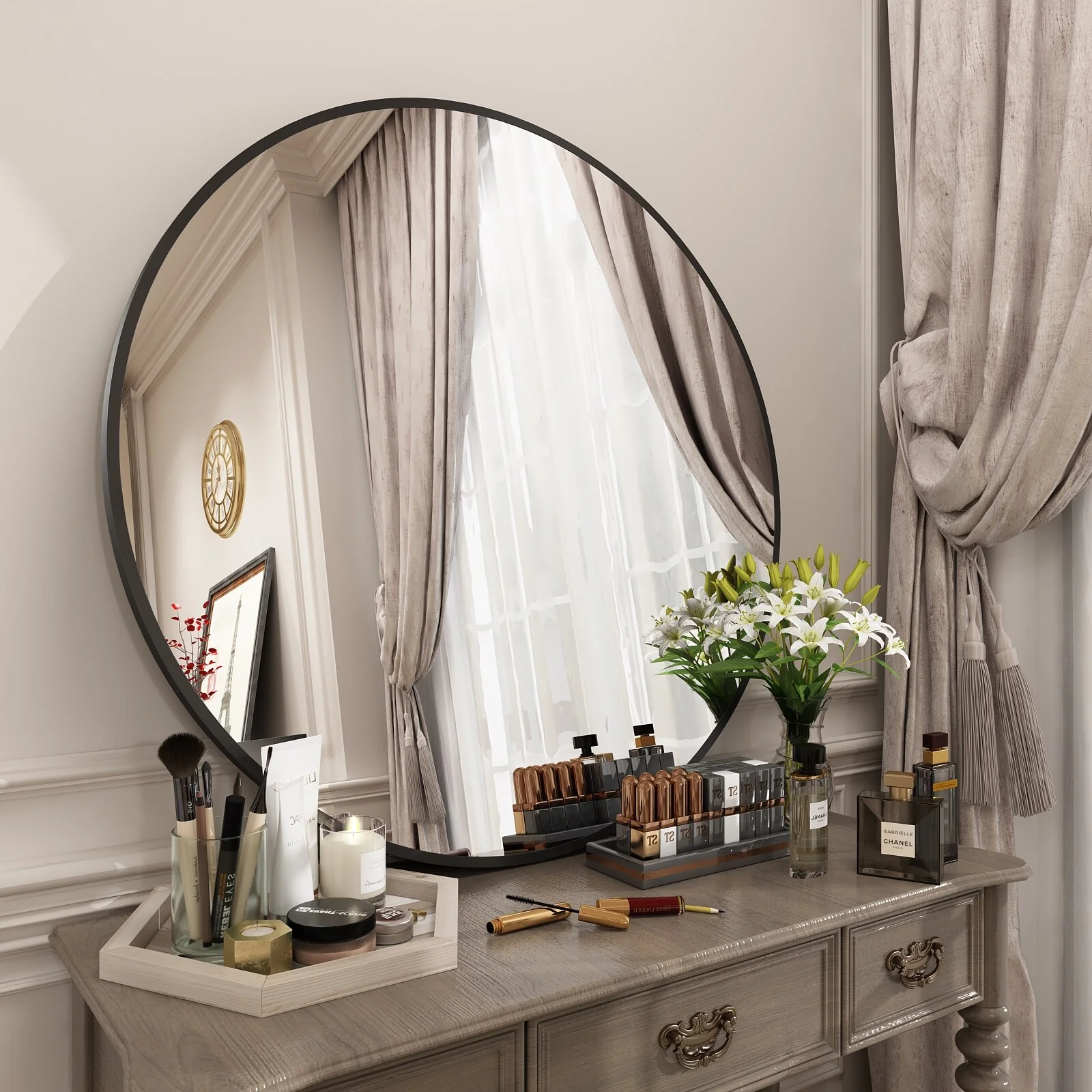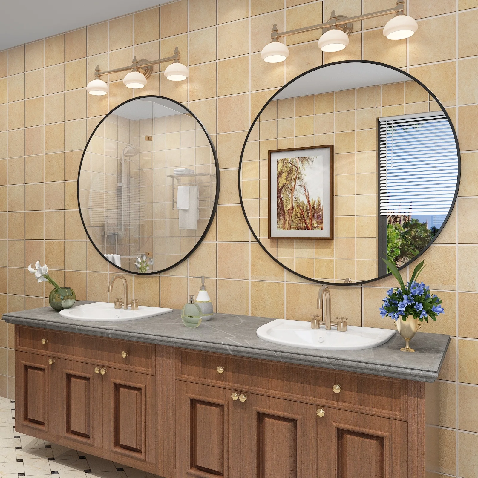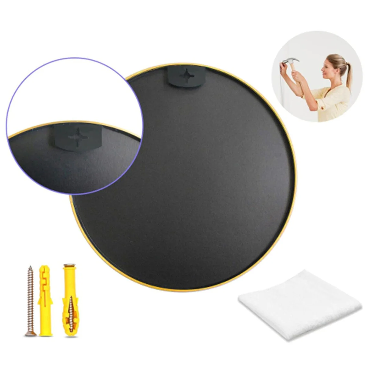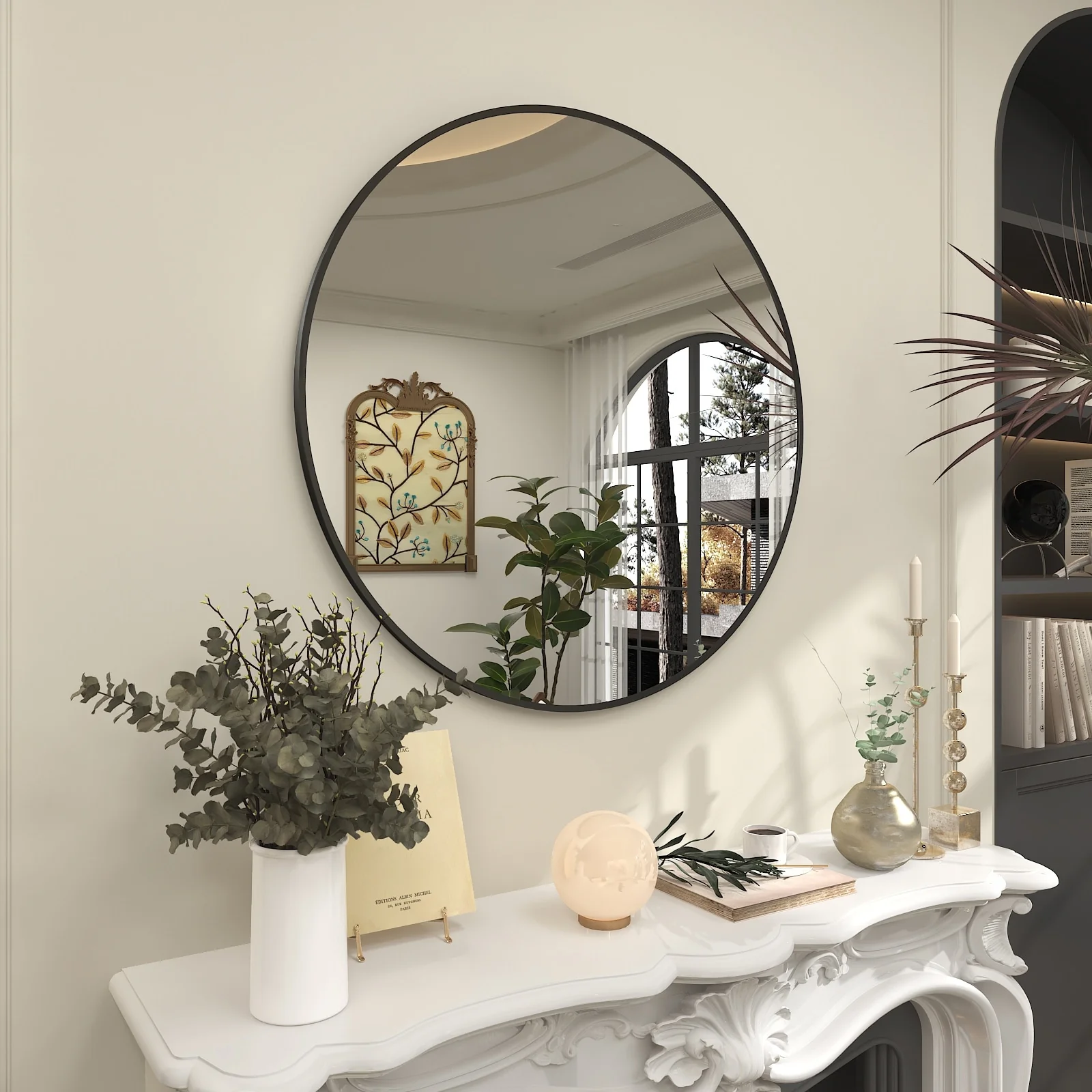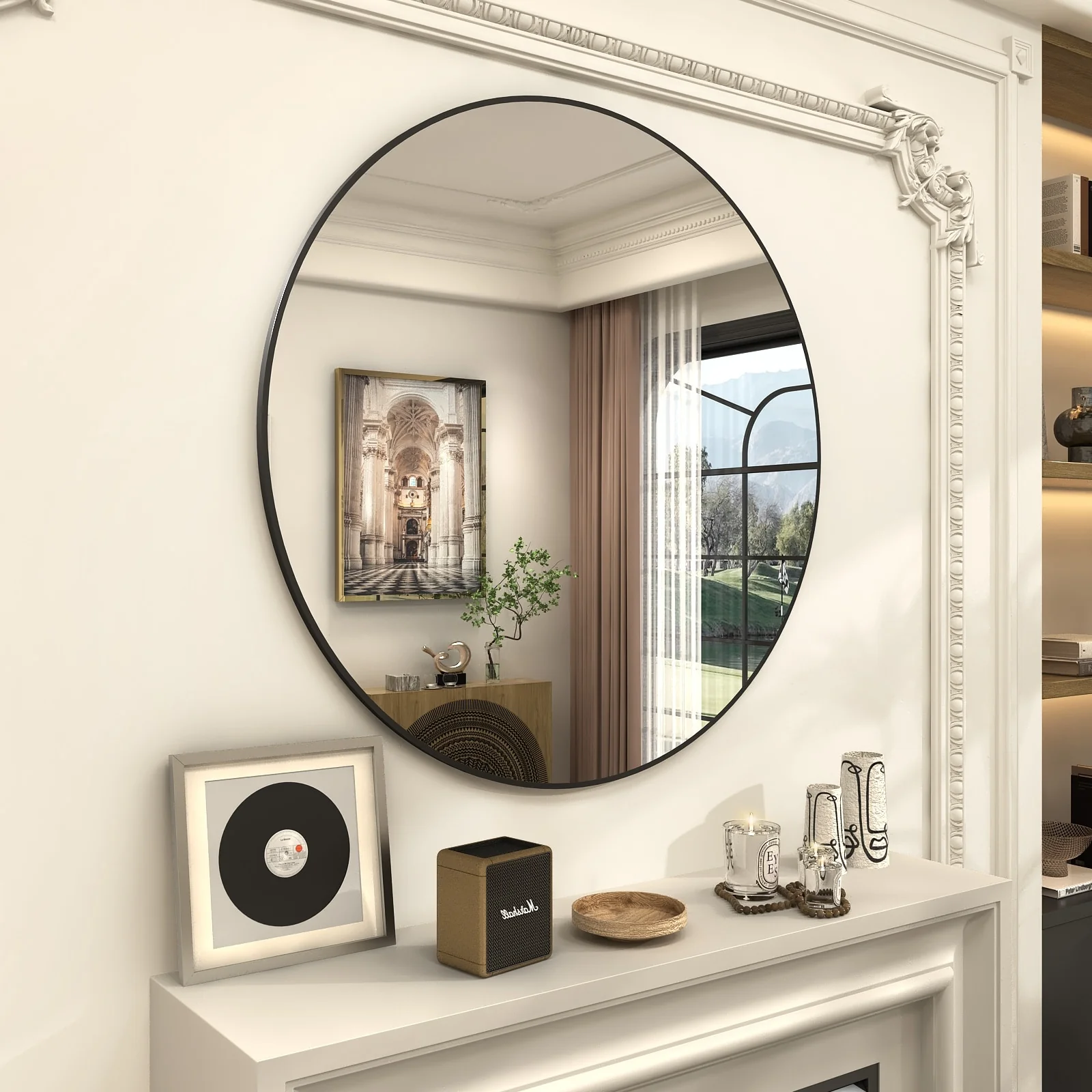 Apmir Round Metal Black Frame Bathroom Vanity Mirror Wall-mounted mirror