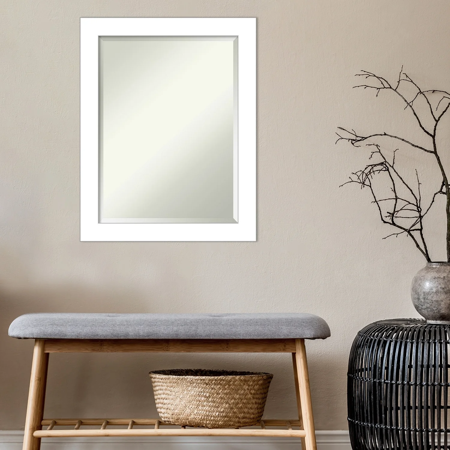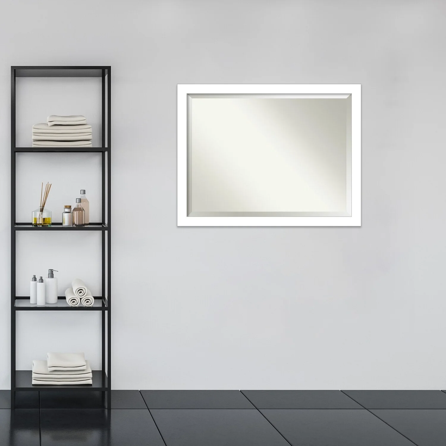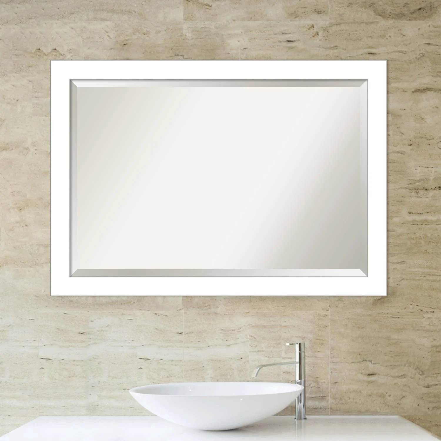 Beveled Bathroom Wall Mirror - Wedge White Frame - Wedge White