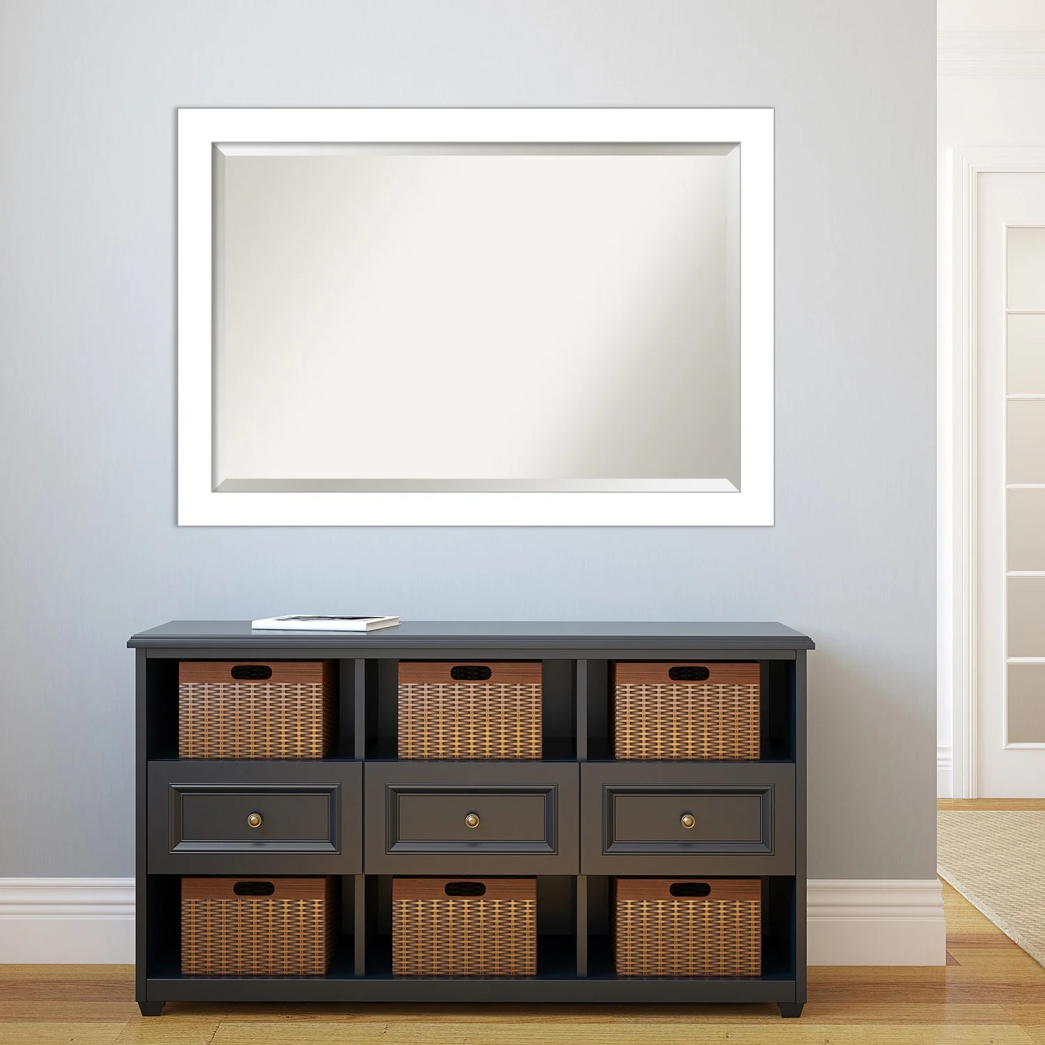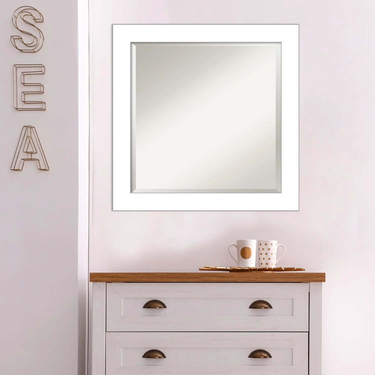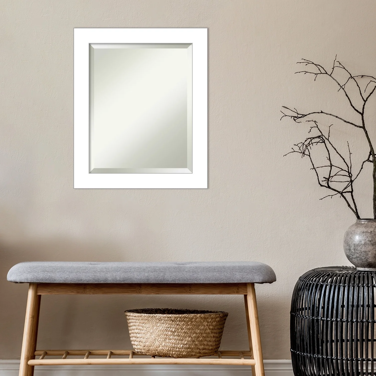 Beveled Bathroom Wall Mirror - Wedge White Frame - Wedge White