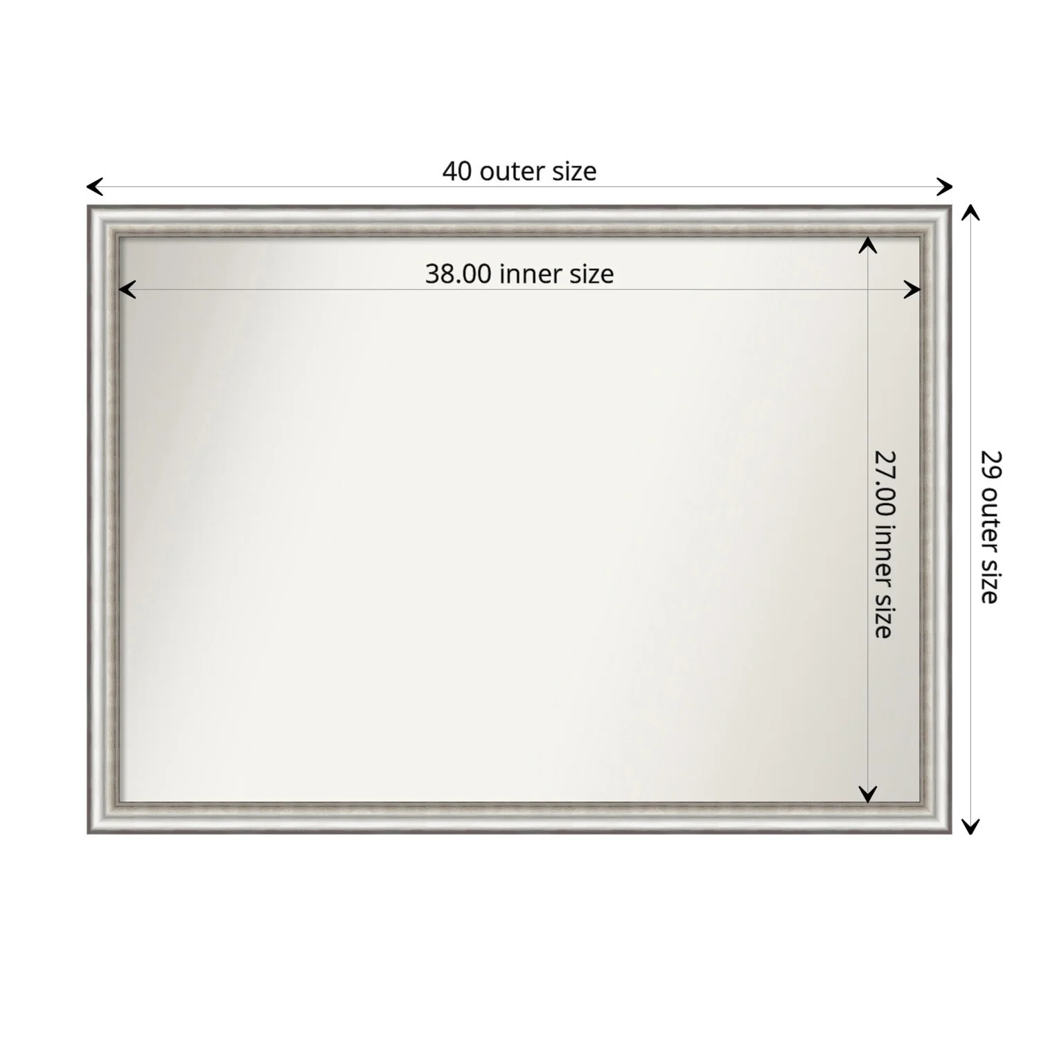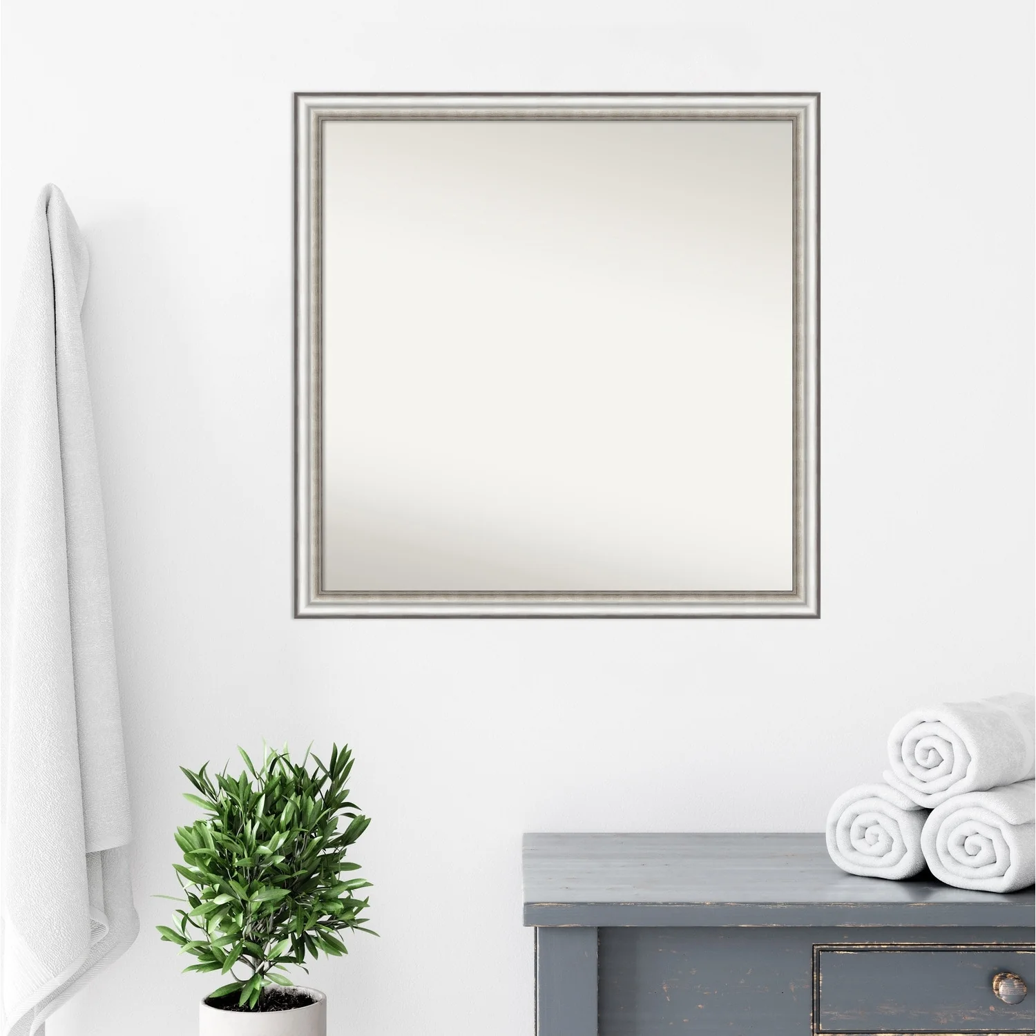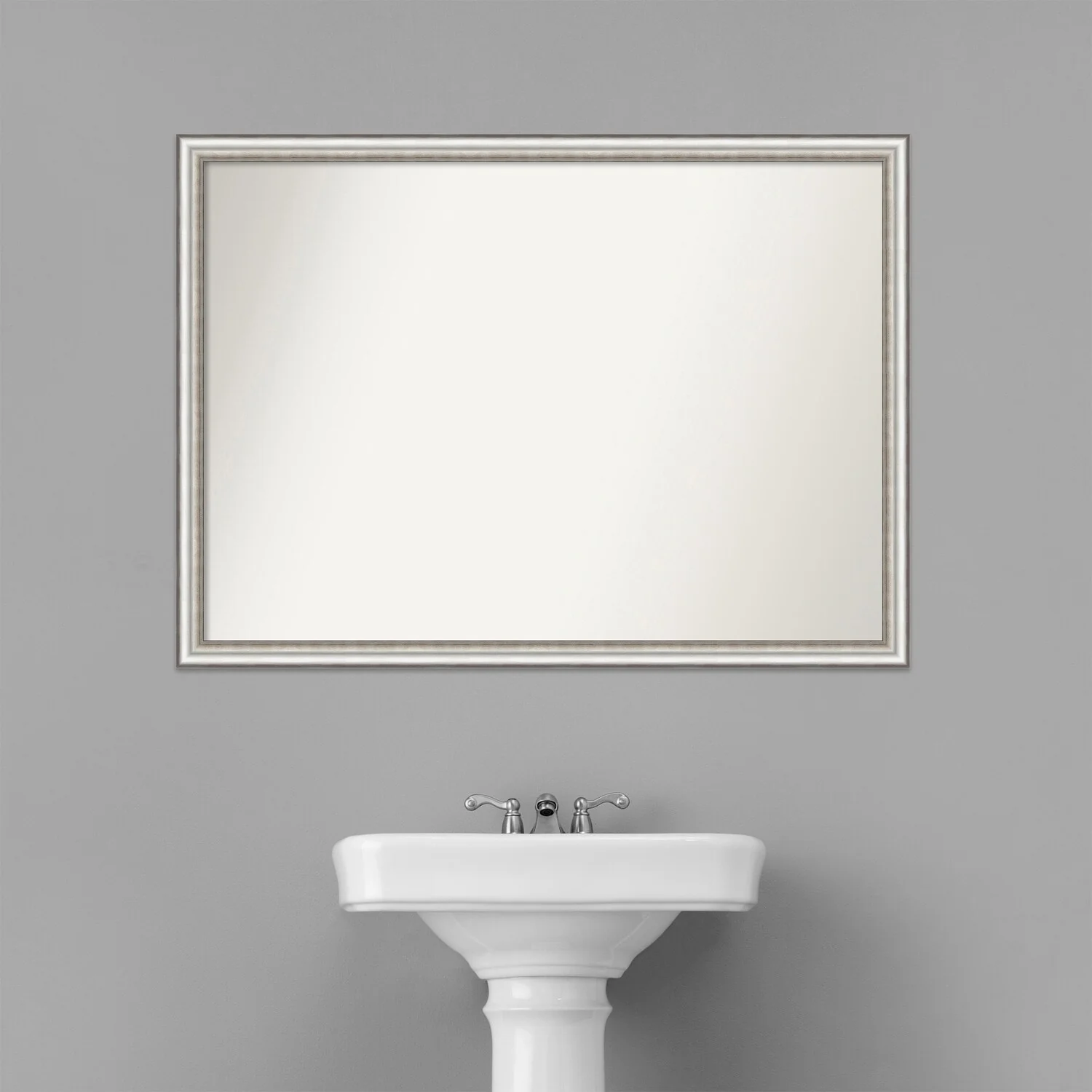 Non-Beveled Bathroom Wall Mirror - Salon Silver Narrow Frame - Salon Silver Narrow