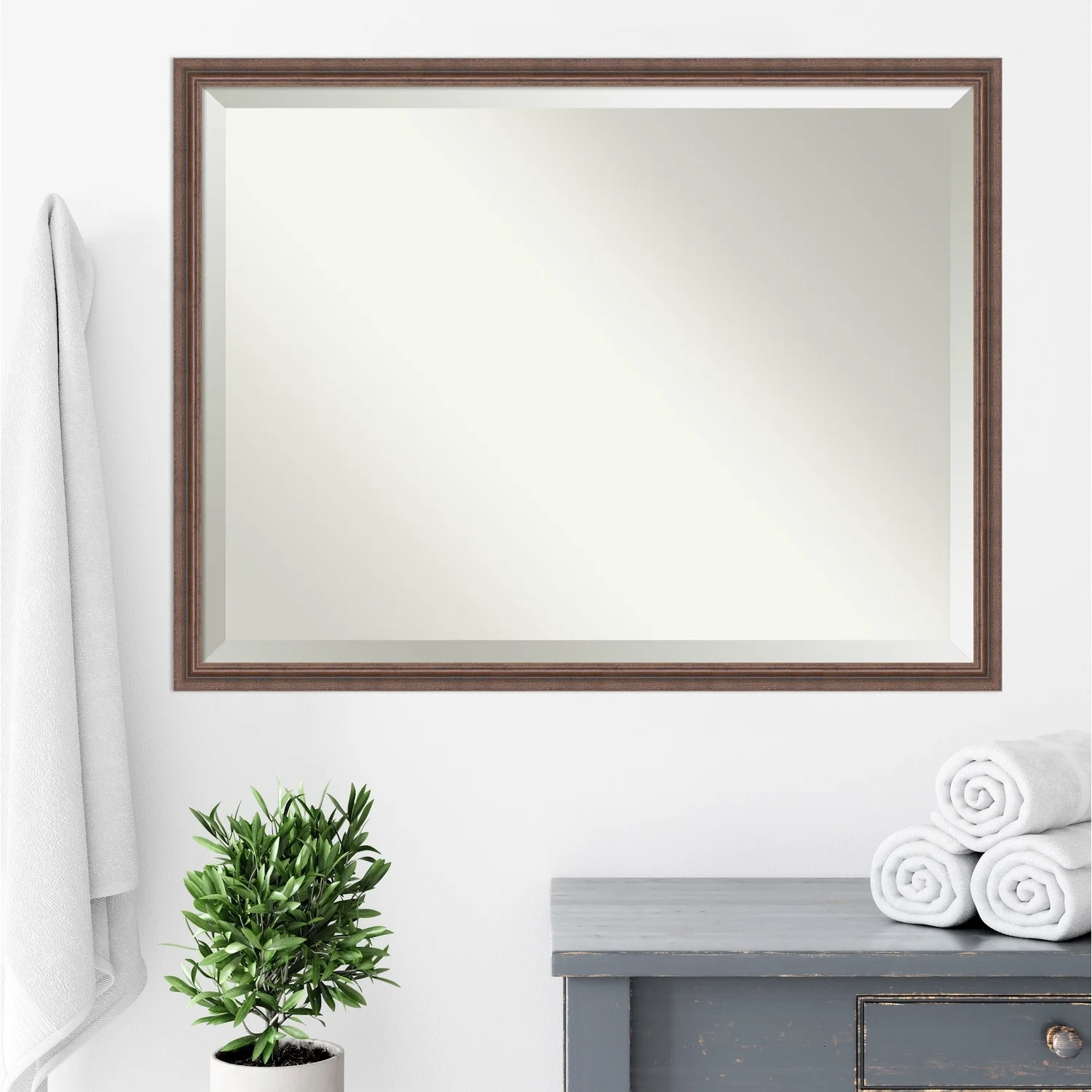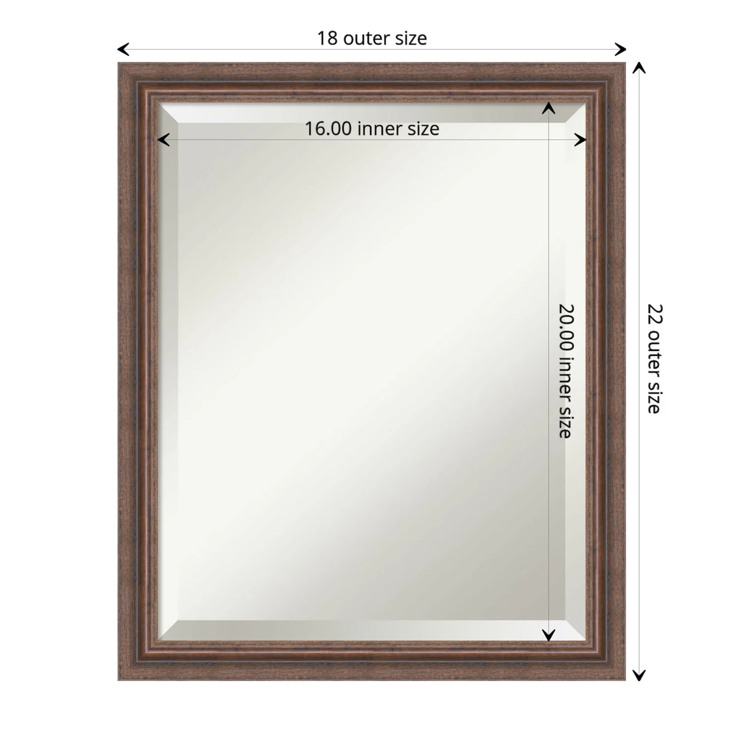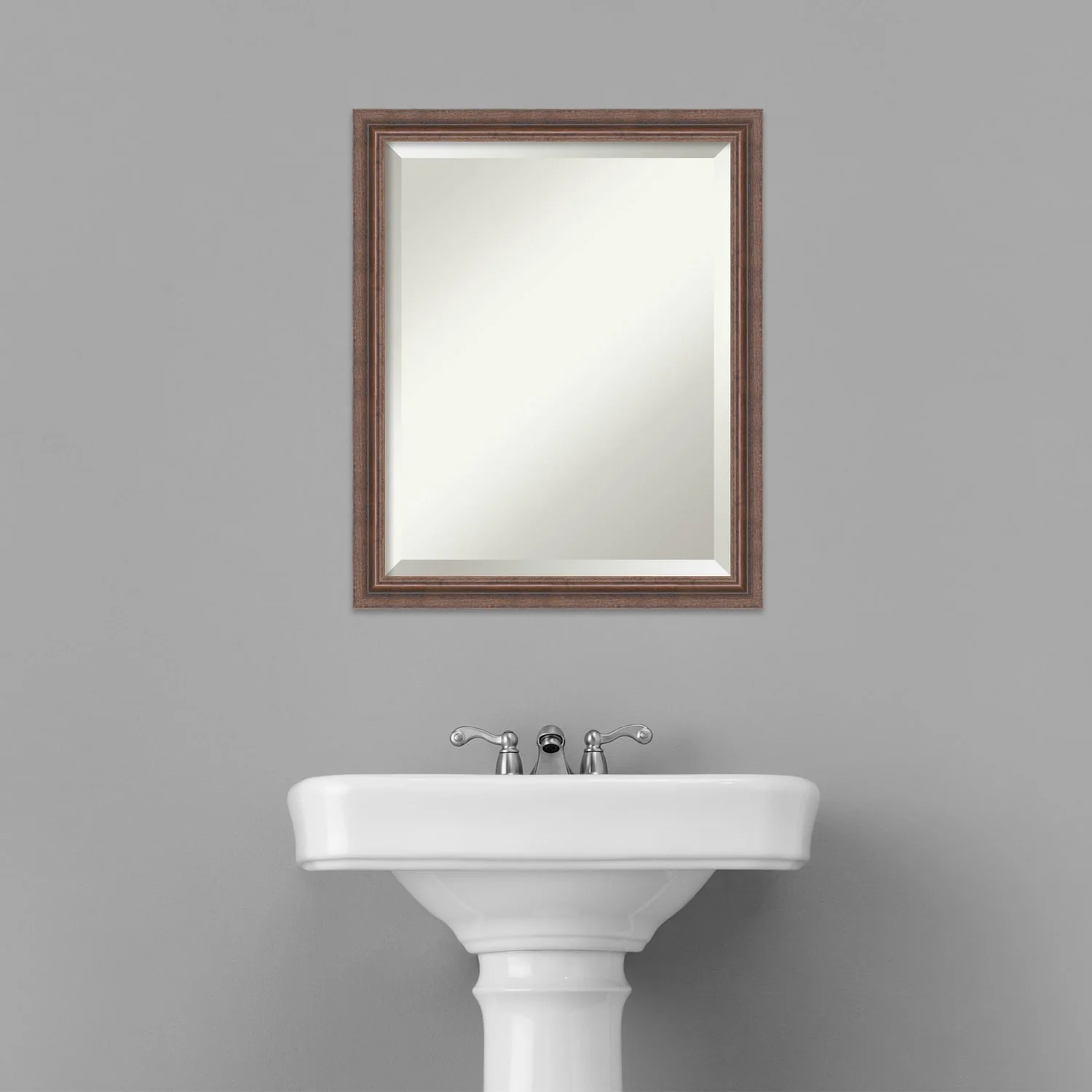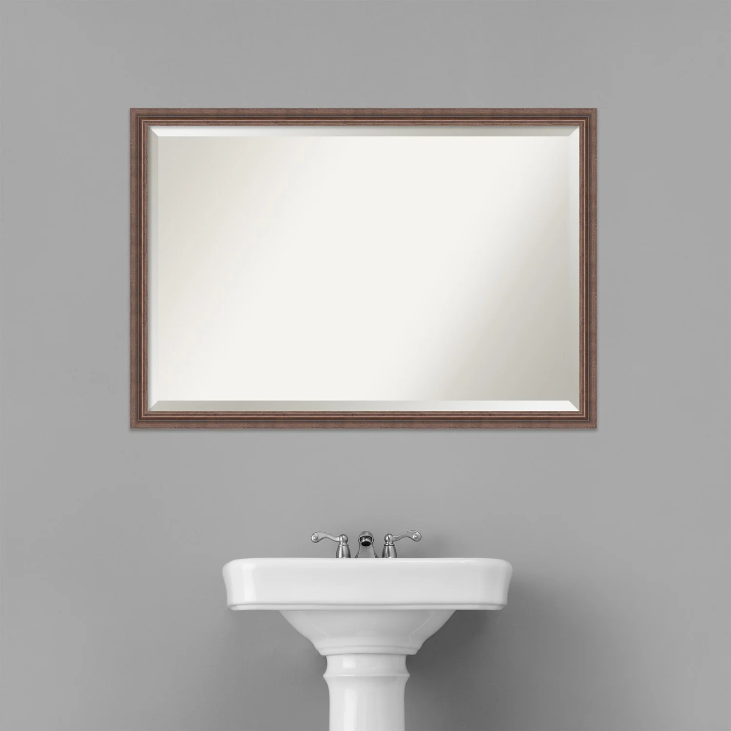 Beveled Wood Bathroom Wall Mirror - Distressed Rustic Brown Frame - Distressed Rustic Brown