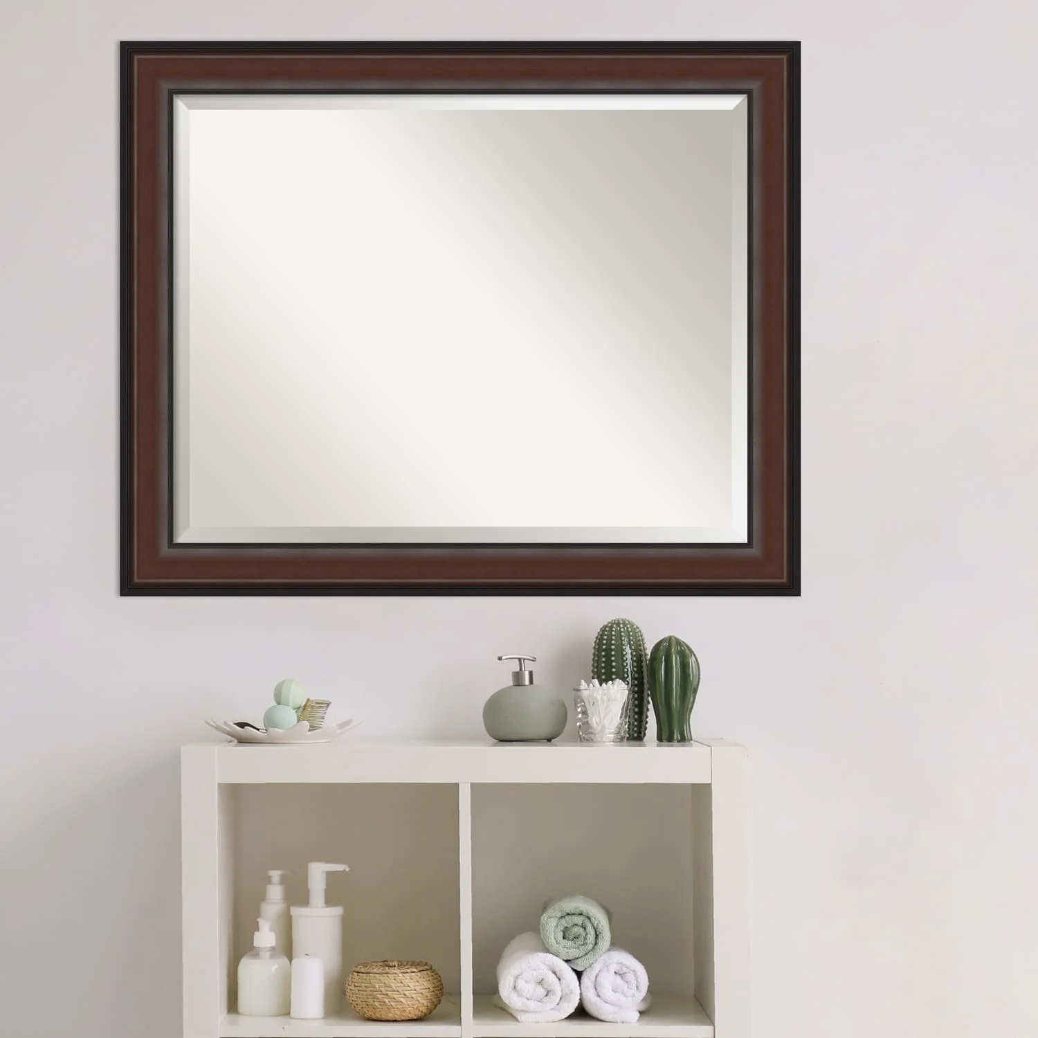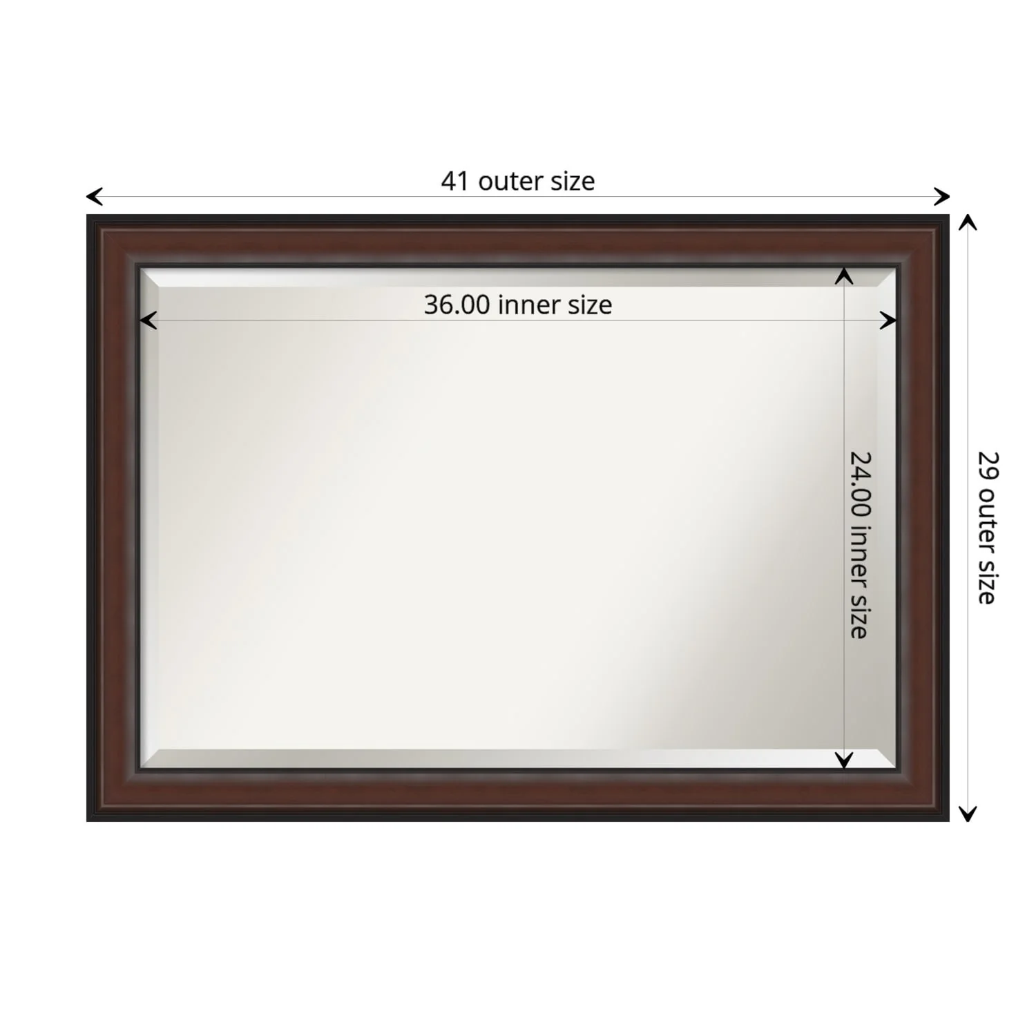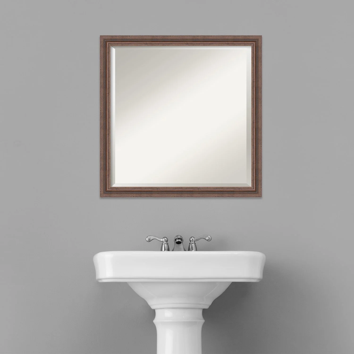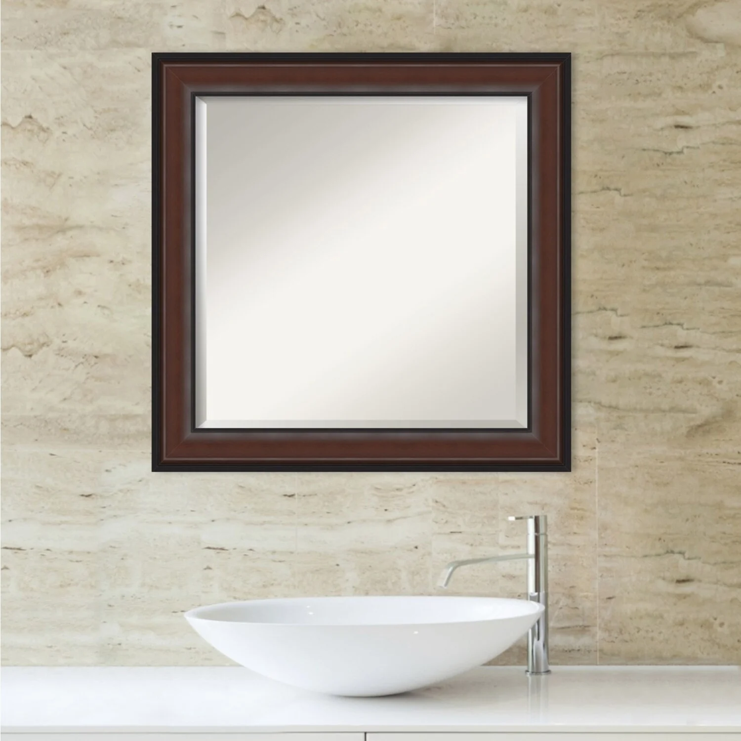Beveled Wood Bathroom Wall Mirror - Distressed Rustic Brown Frame - Distressed Rustic Brown
