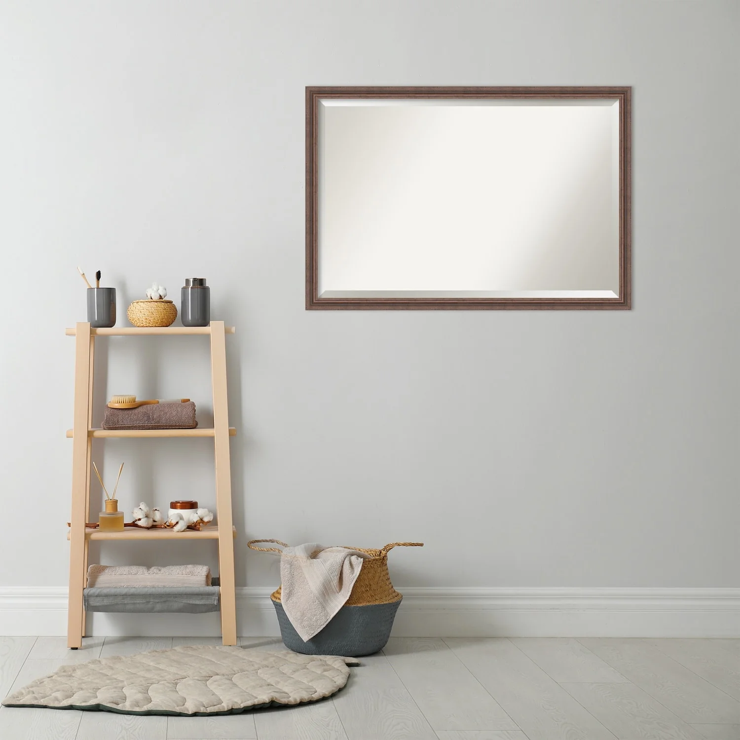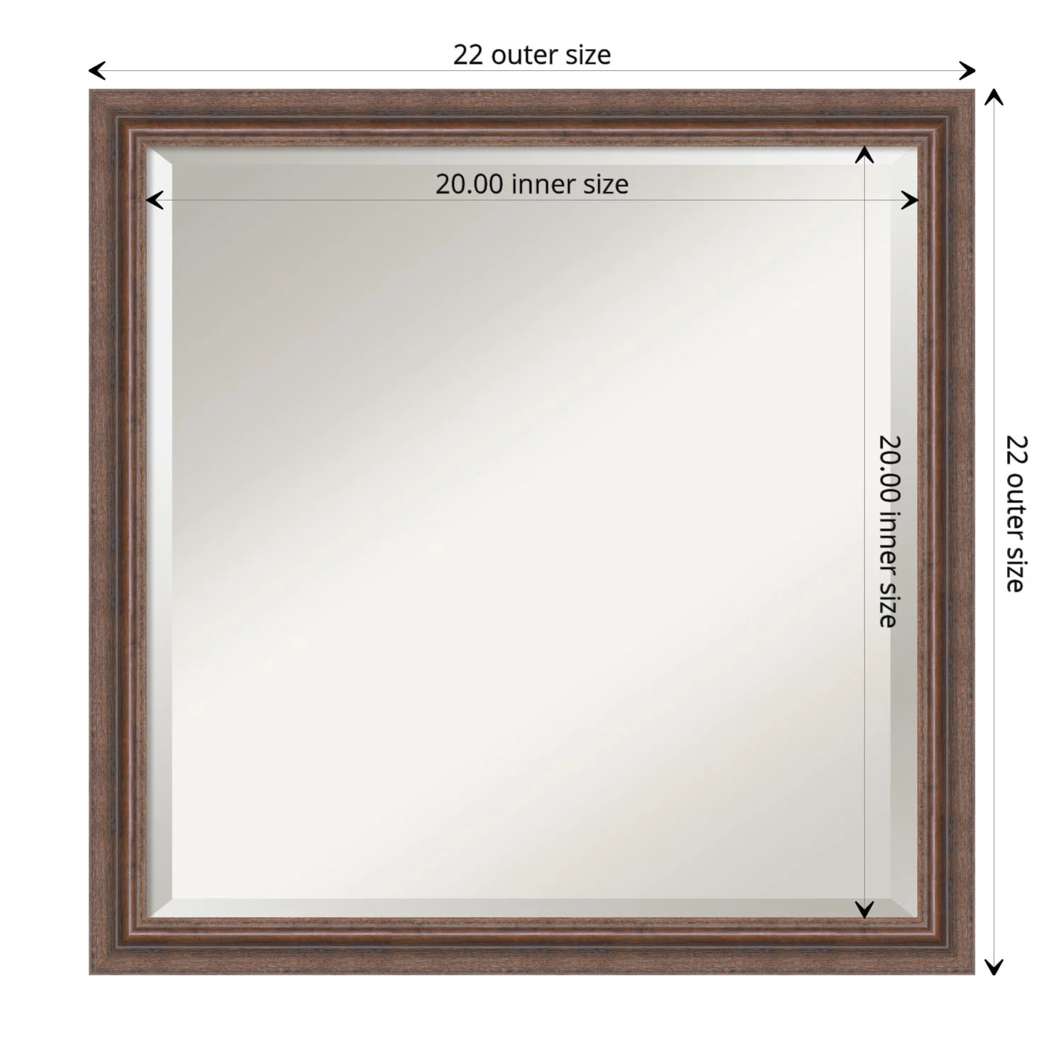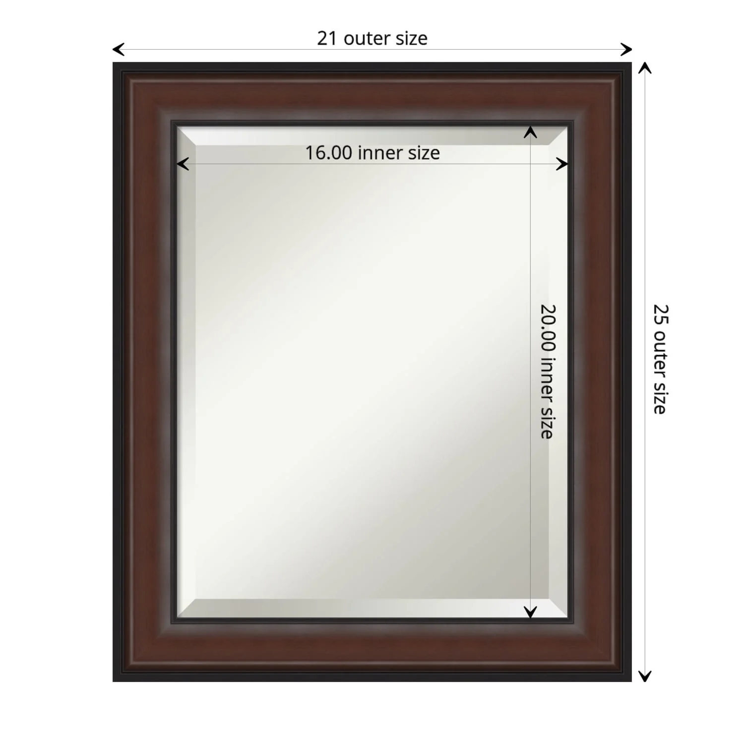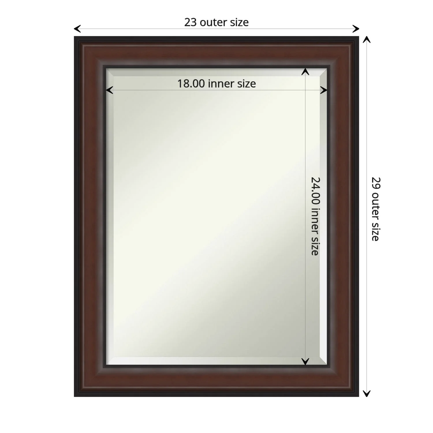 Beveled Wood Bathroom Wall Mirror - Distressed Rustic Brown Frame - Distressed Rustic Brown