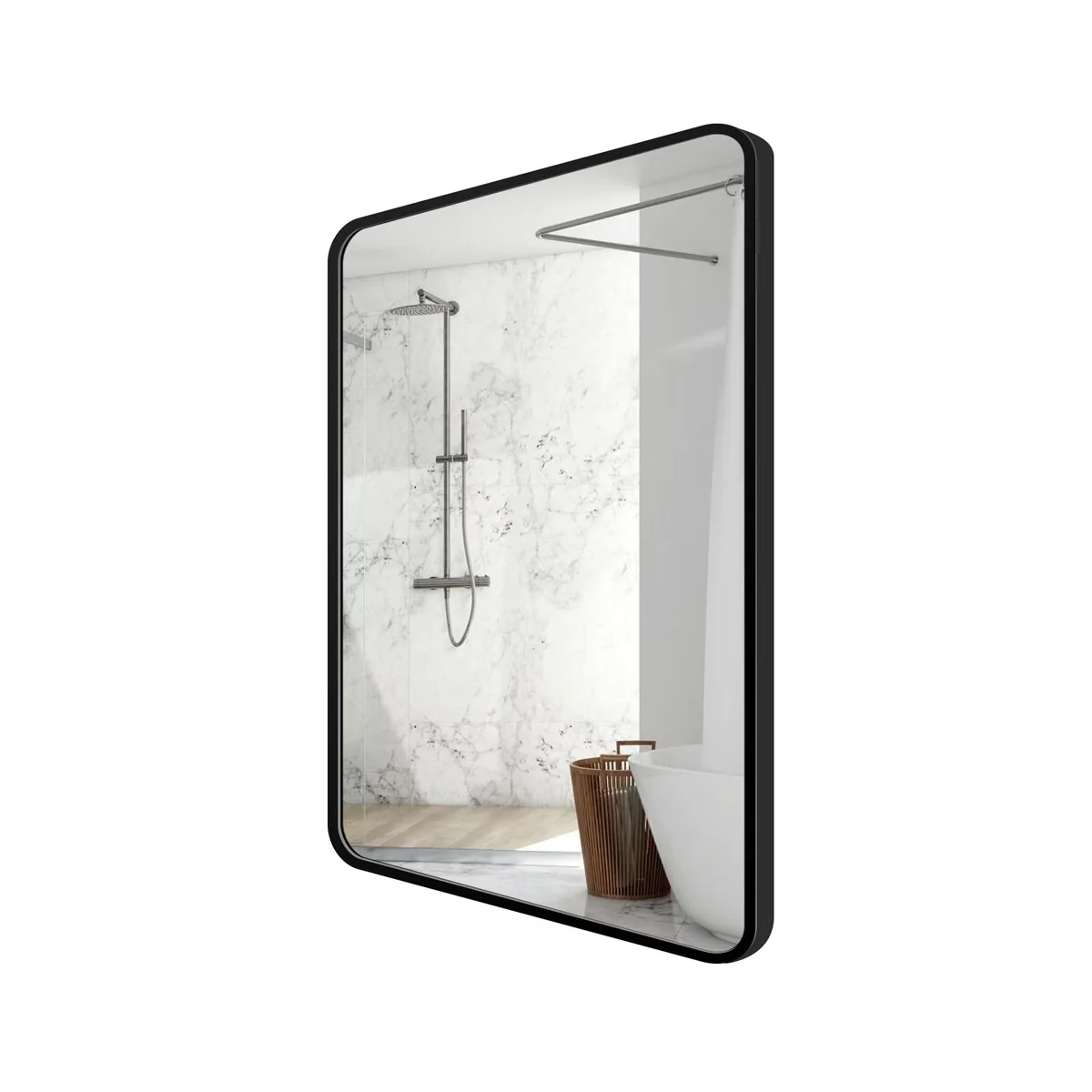 Bathroom Vanity Mirror Rectangular Metal Framed Wall in Matt Black Hang Horizontally and Vertically