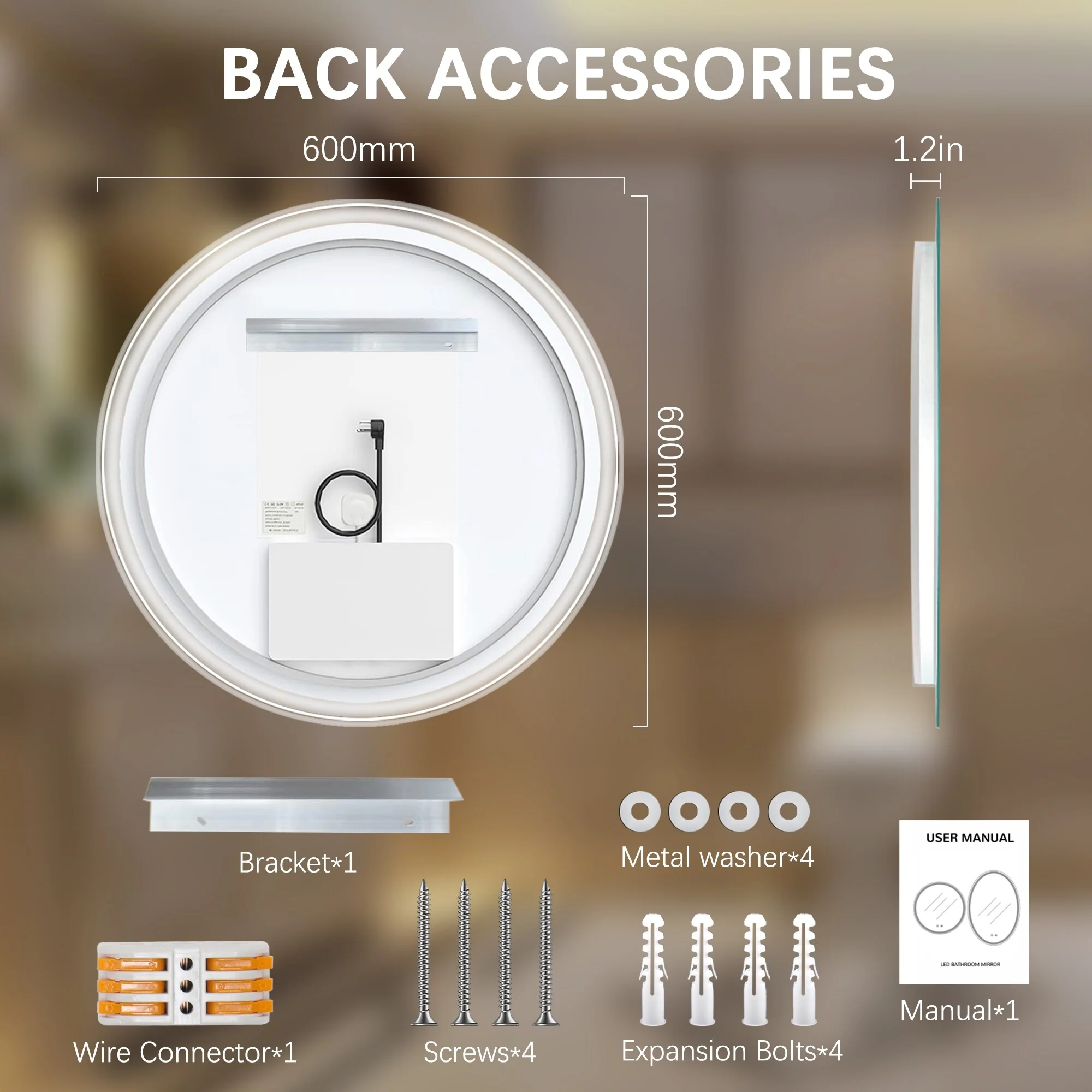 24-Inch Round Metal Bathroom Mirror