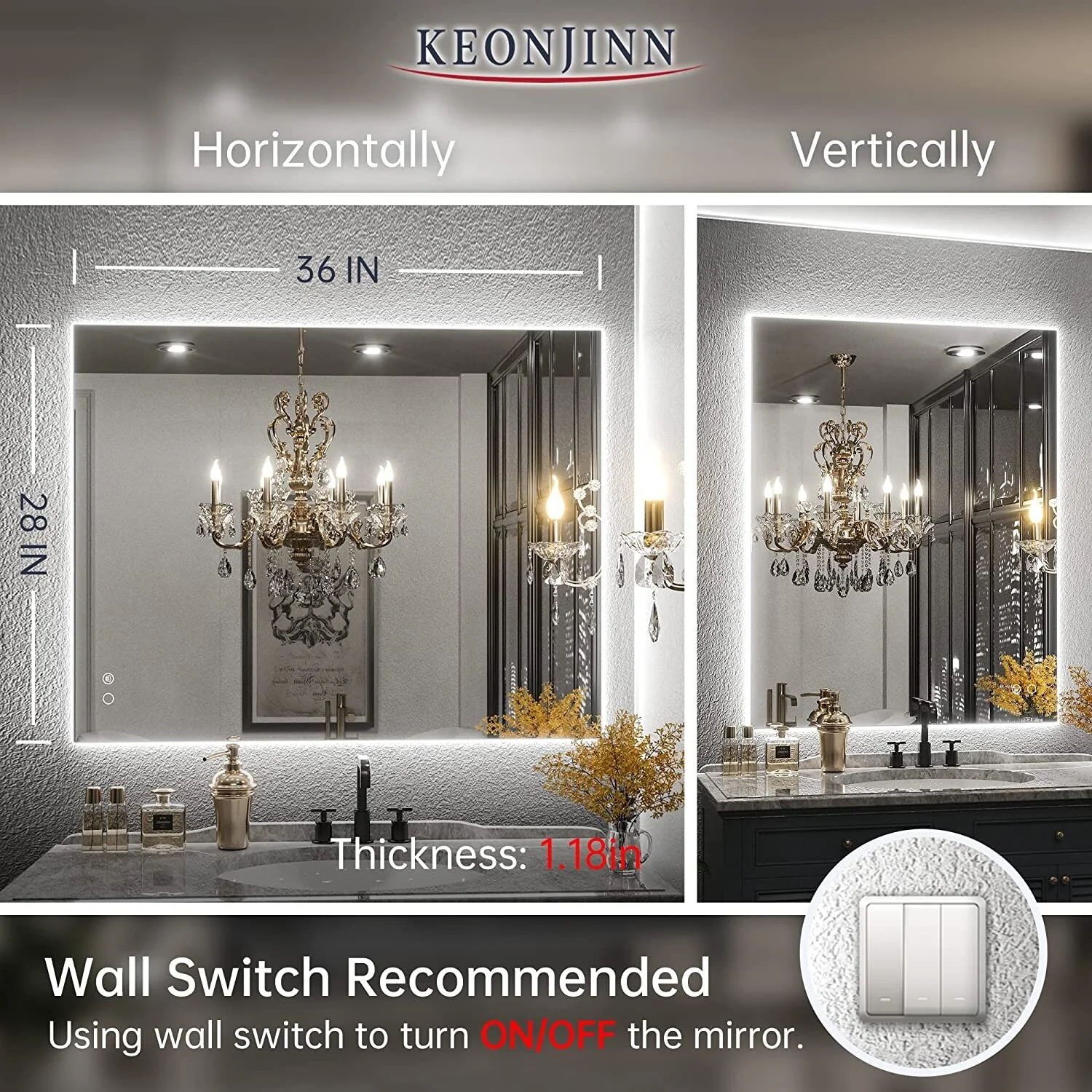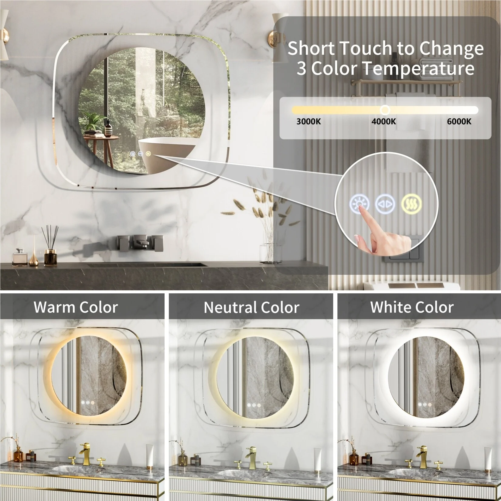 Lyra Led Bathroom Mirror with Antifog, Dimmer, Adjustable Color Temperature, Smart Bathroom Led Mirror