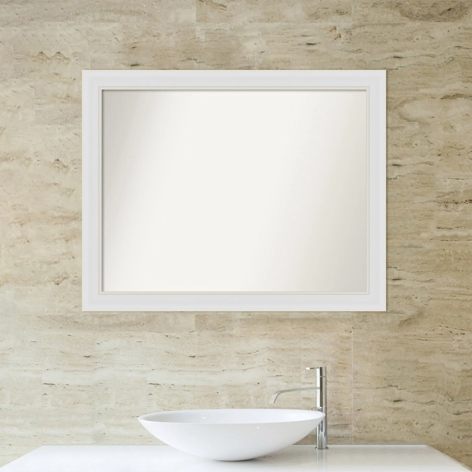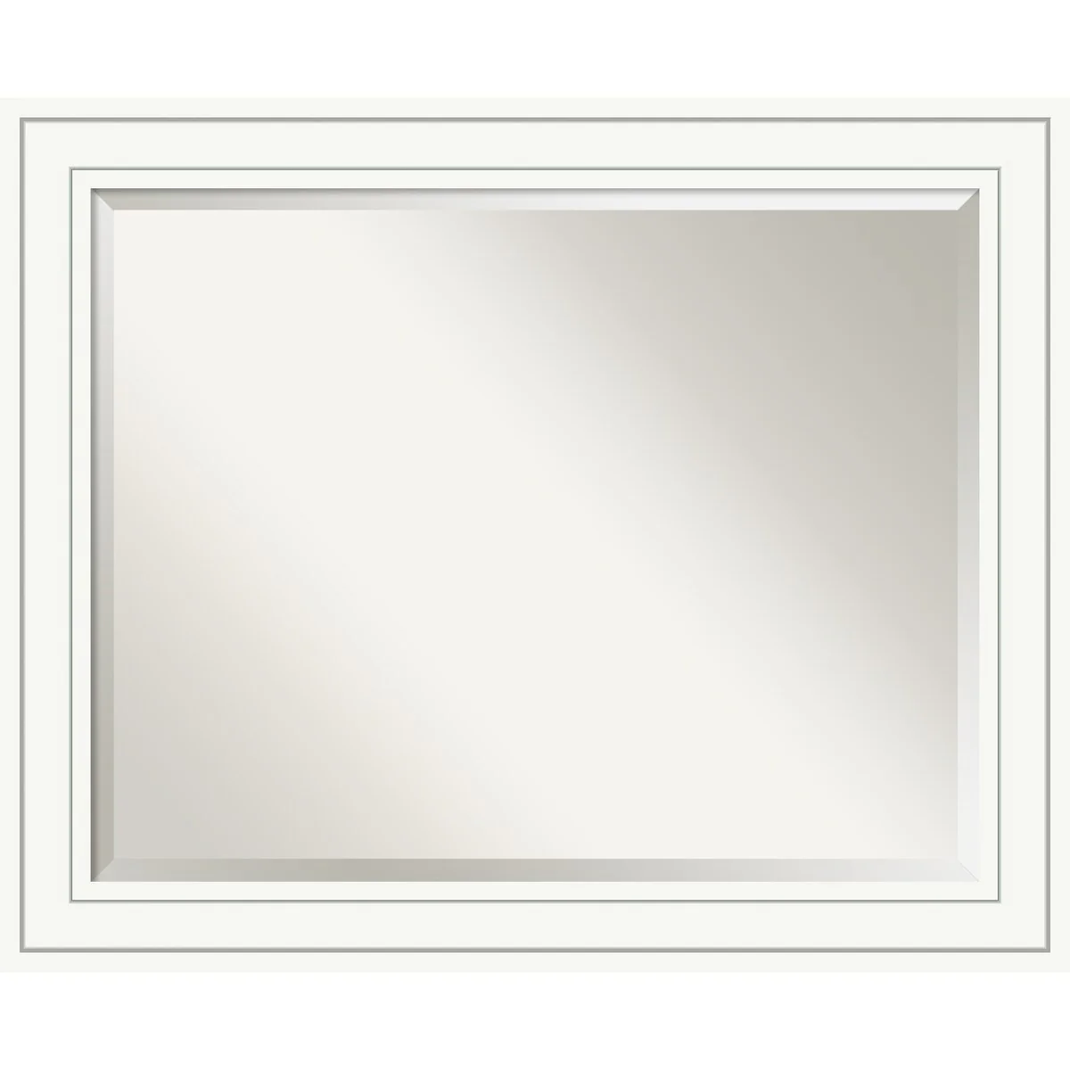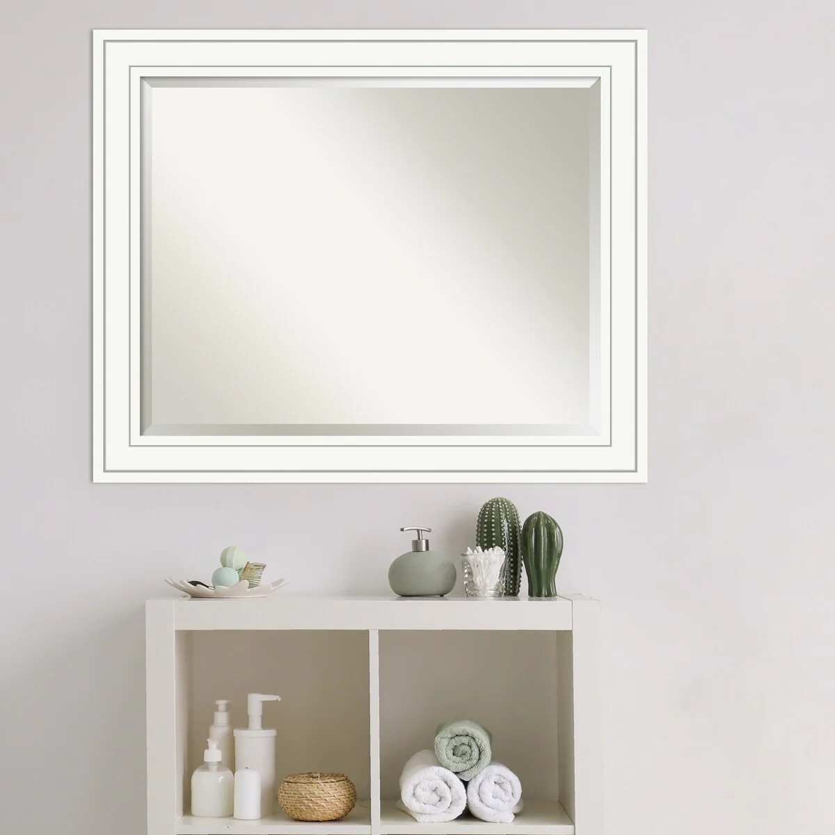 Beveled Wood Bathroom Wall Mirror - Craftsman White Frame - Outer Size: 33 x 27 in