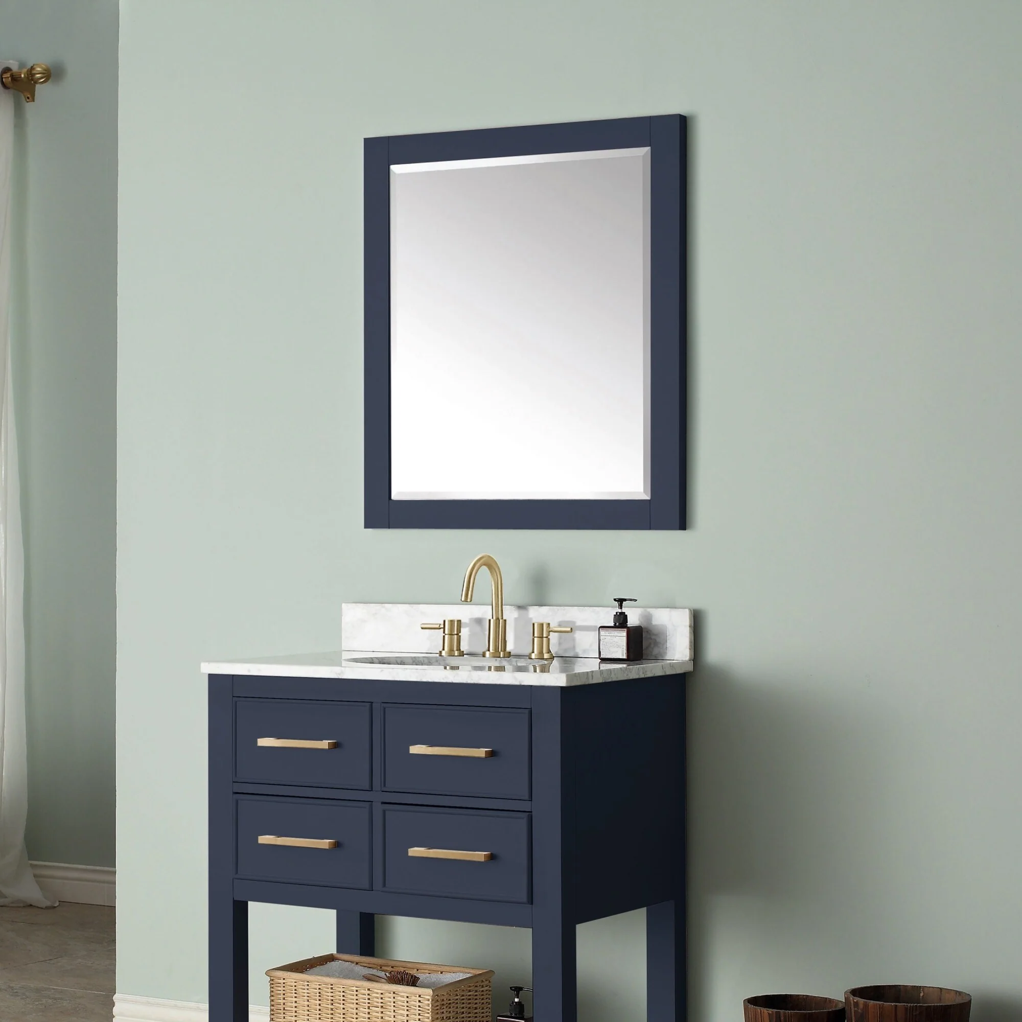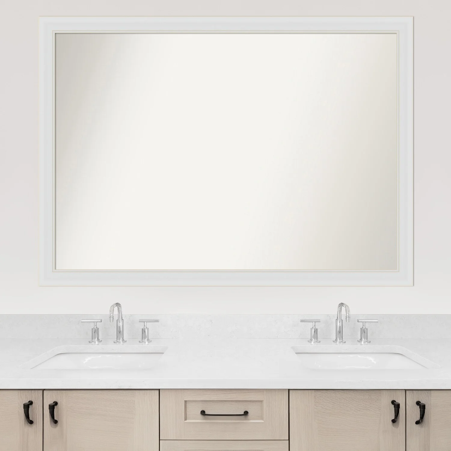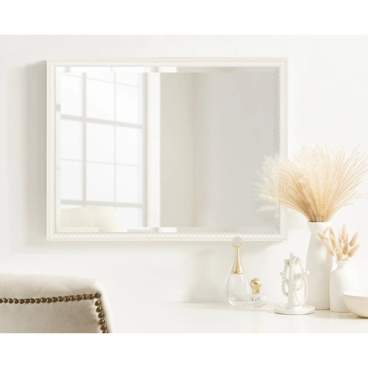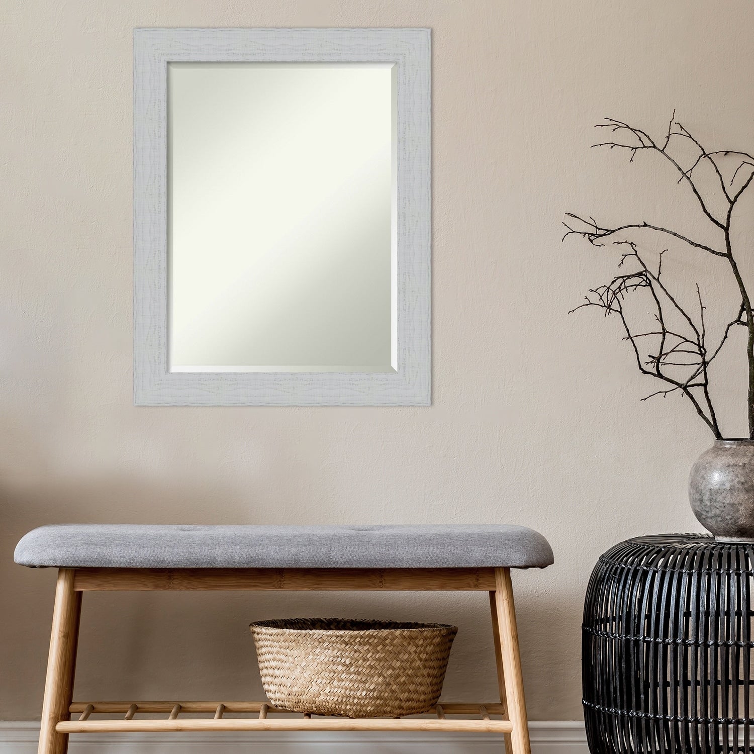 Beveled Wood Bathroom Wall Mirror - Craftsman White Frame - Outer Size: 33 x 27 in
