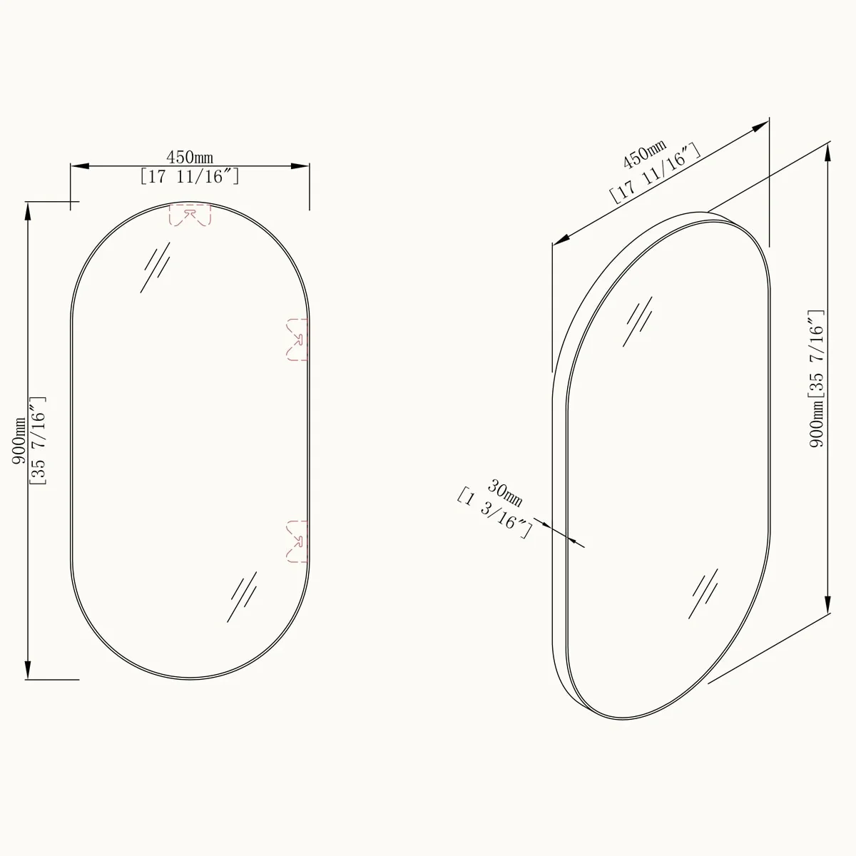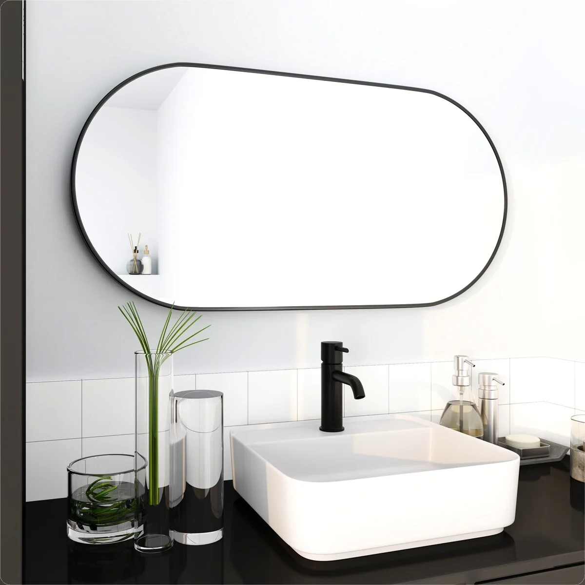 18 x 35 Inch Bathroom Mirror Black Aluminum Frame