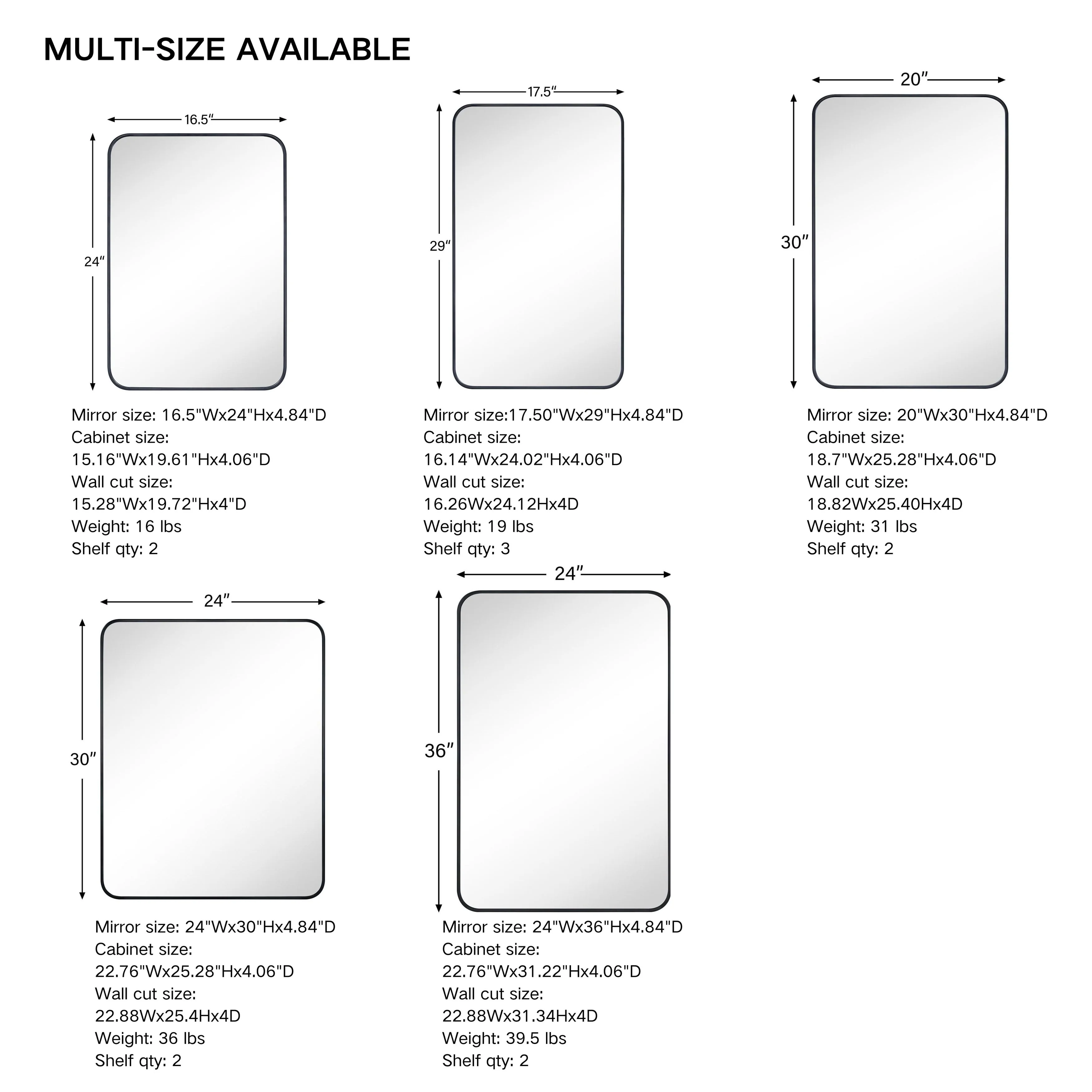 TEHOME Garnes Recessed or Surface Mount Framed Medicine Cabinet with Adjustable Shelves