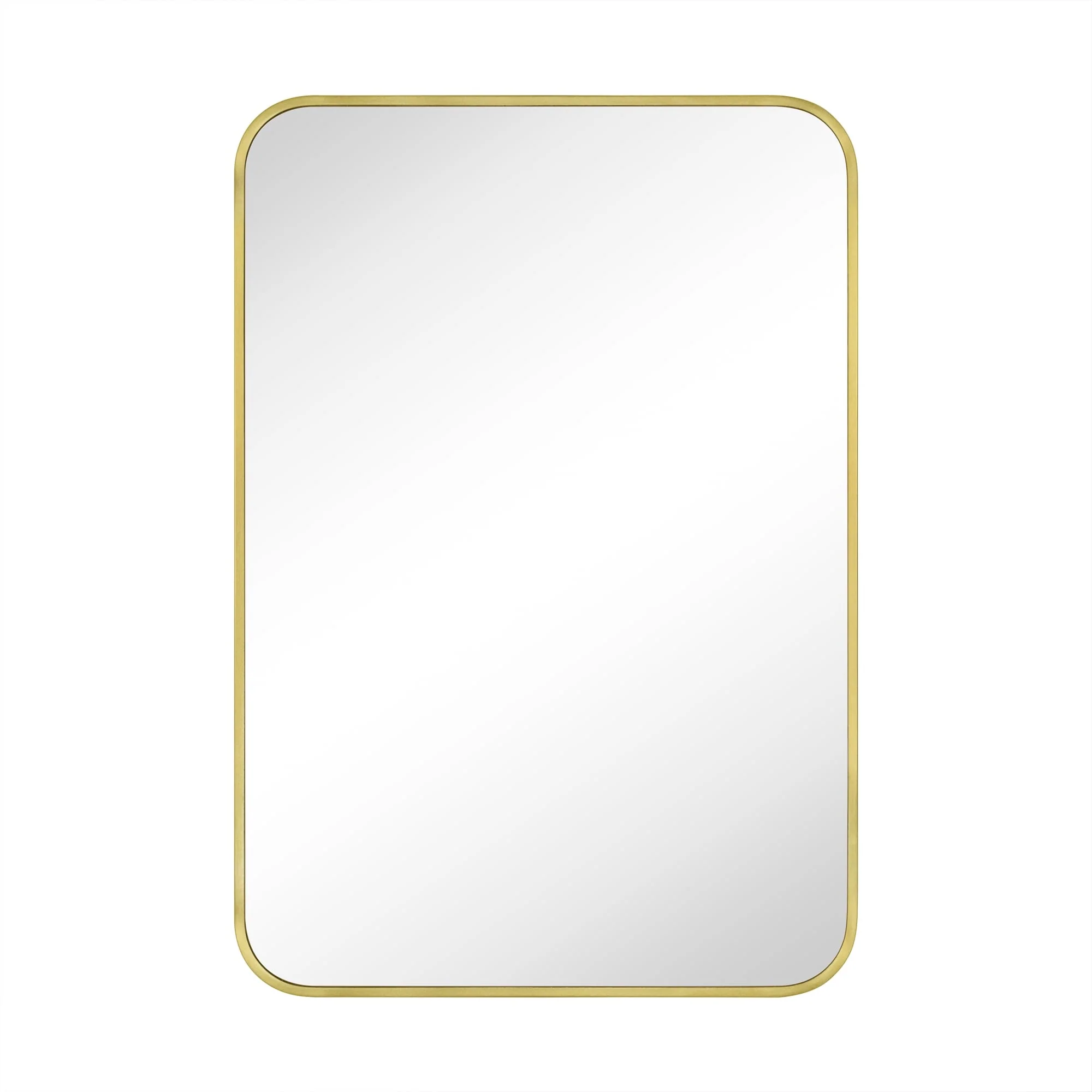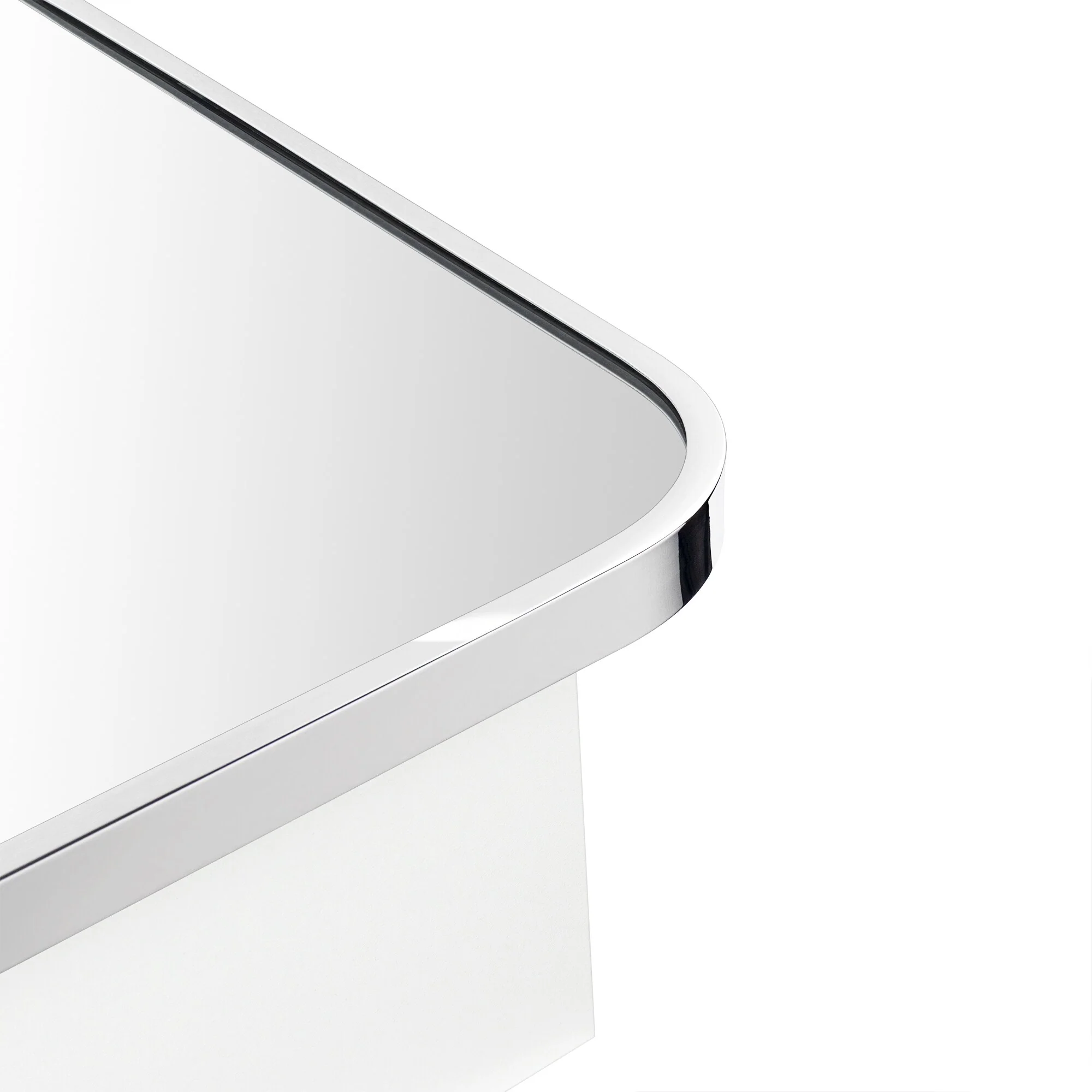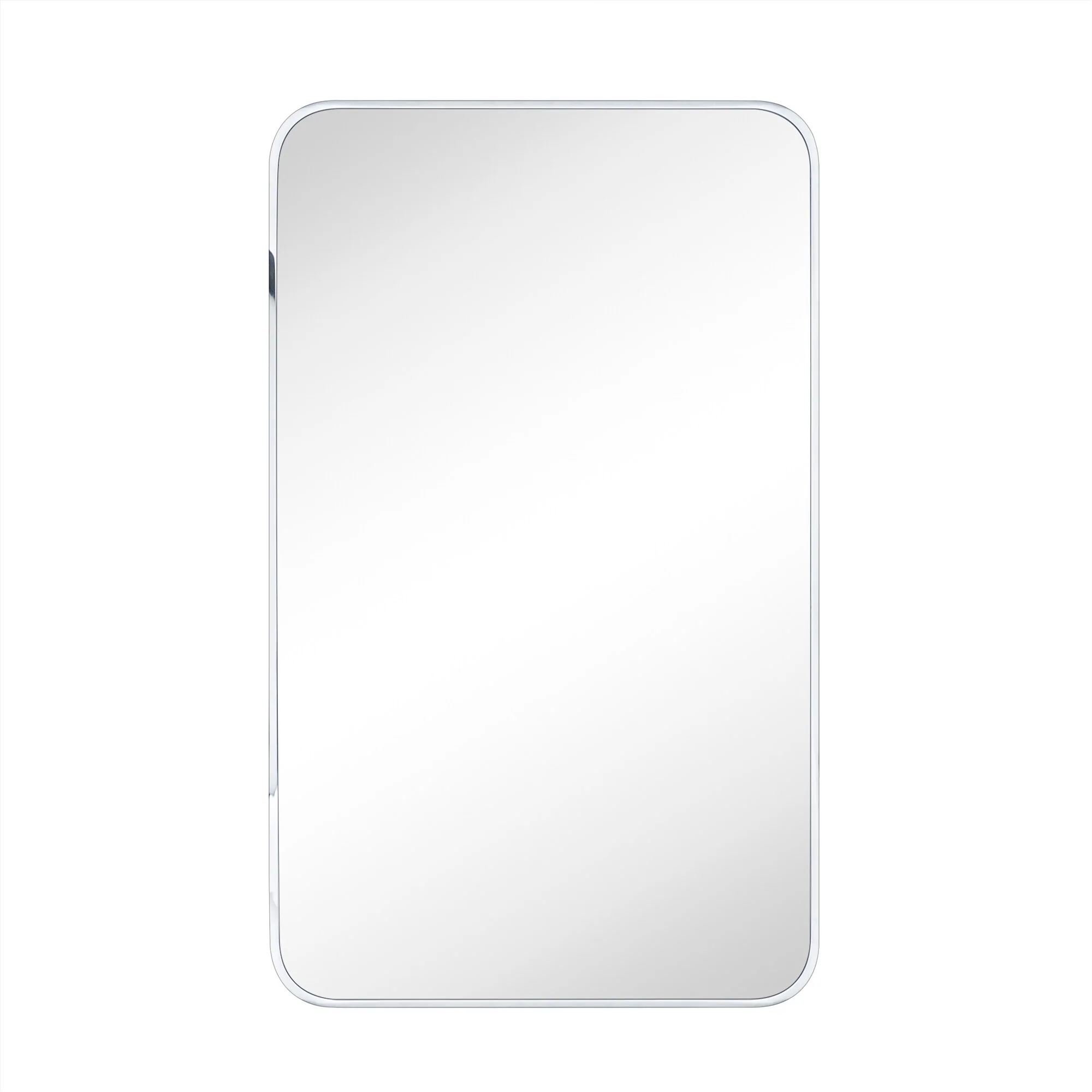 Glossy Silver Modern Rounded Rectangular Aluminum Framed Wall Mounted Bathroom Vanity Mirror with Clear Glass