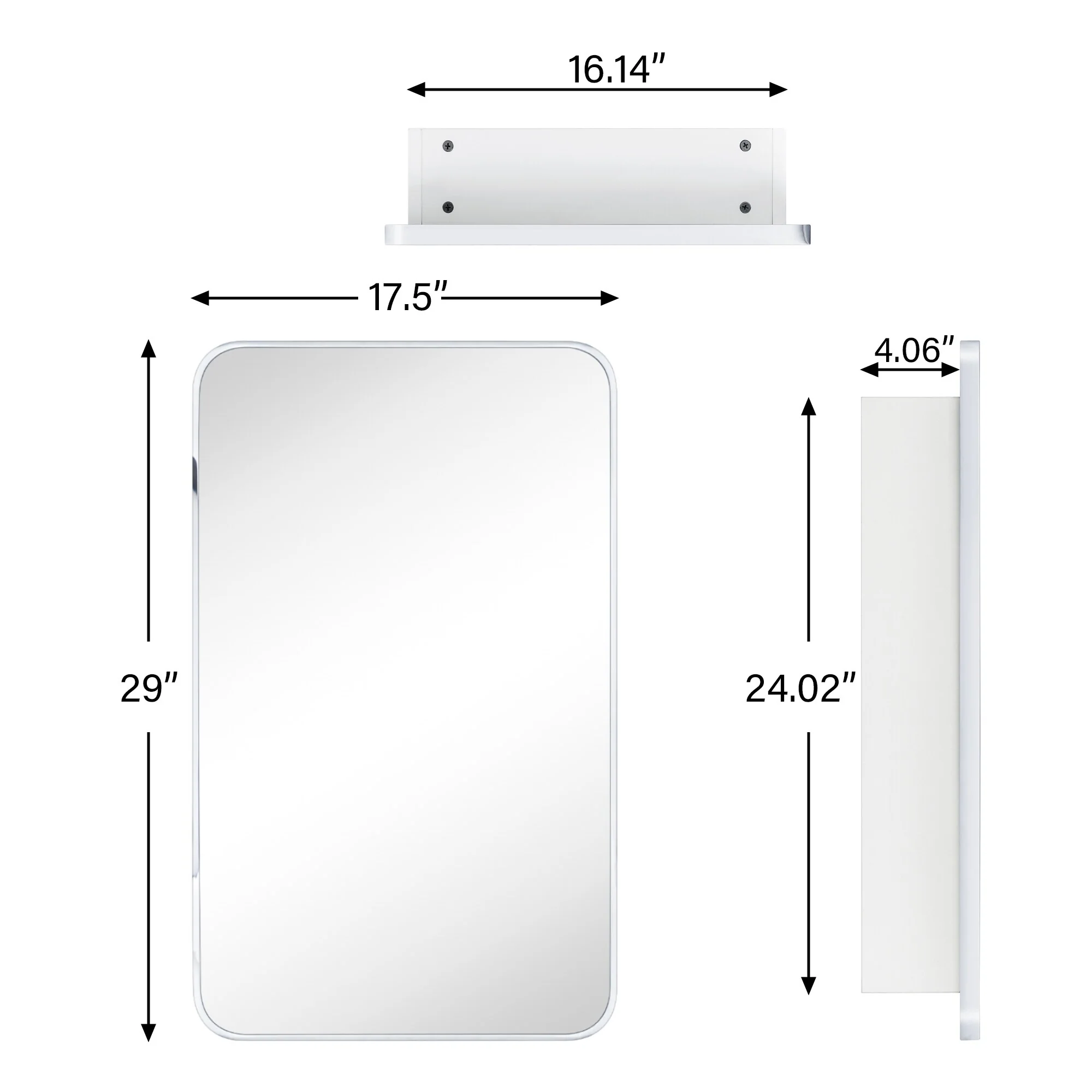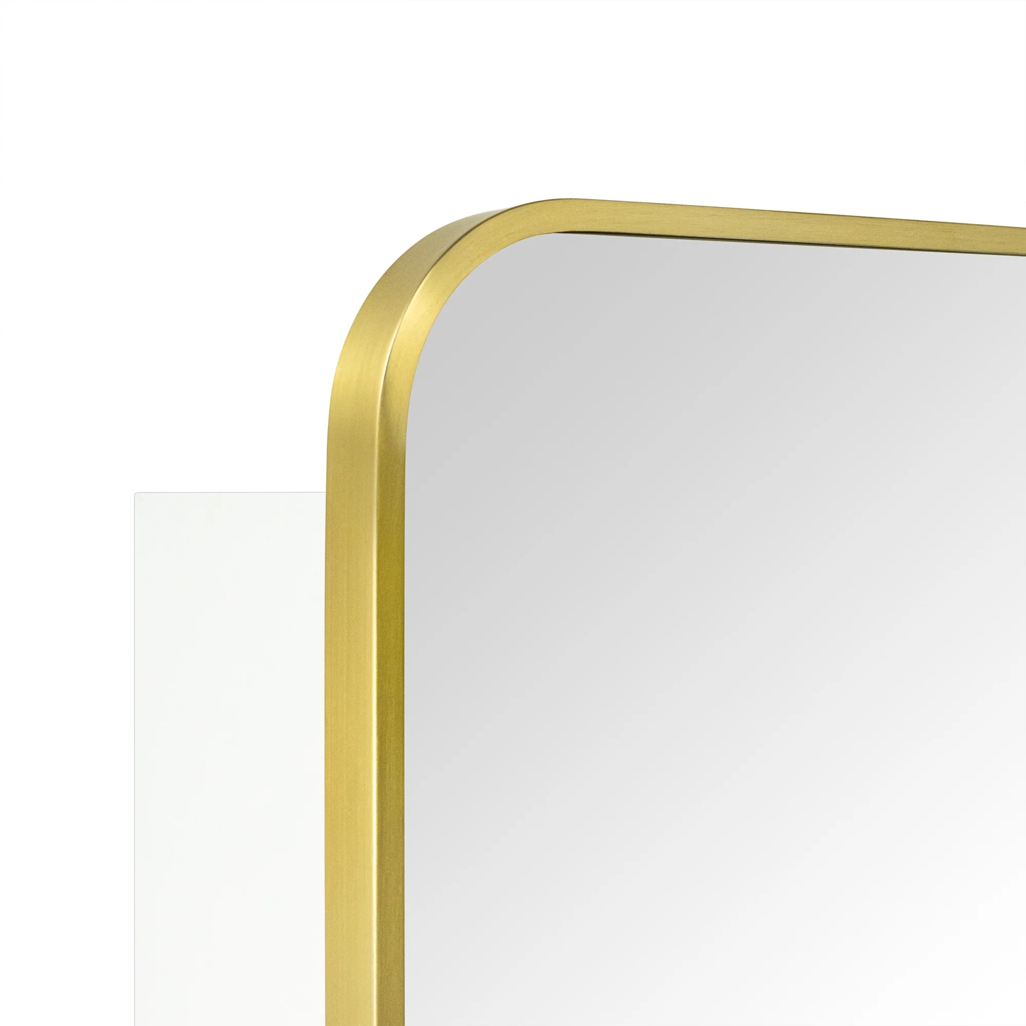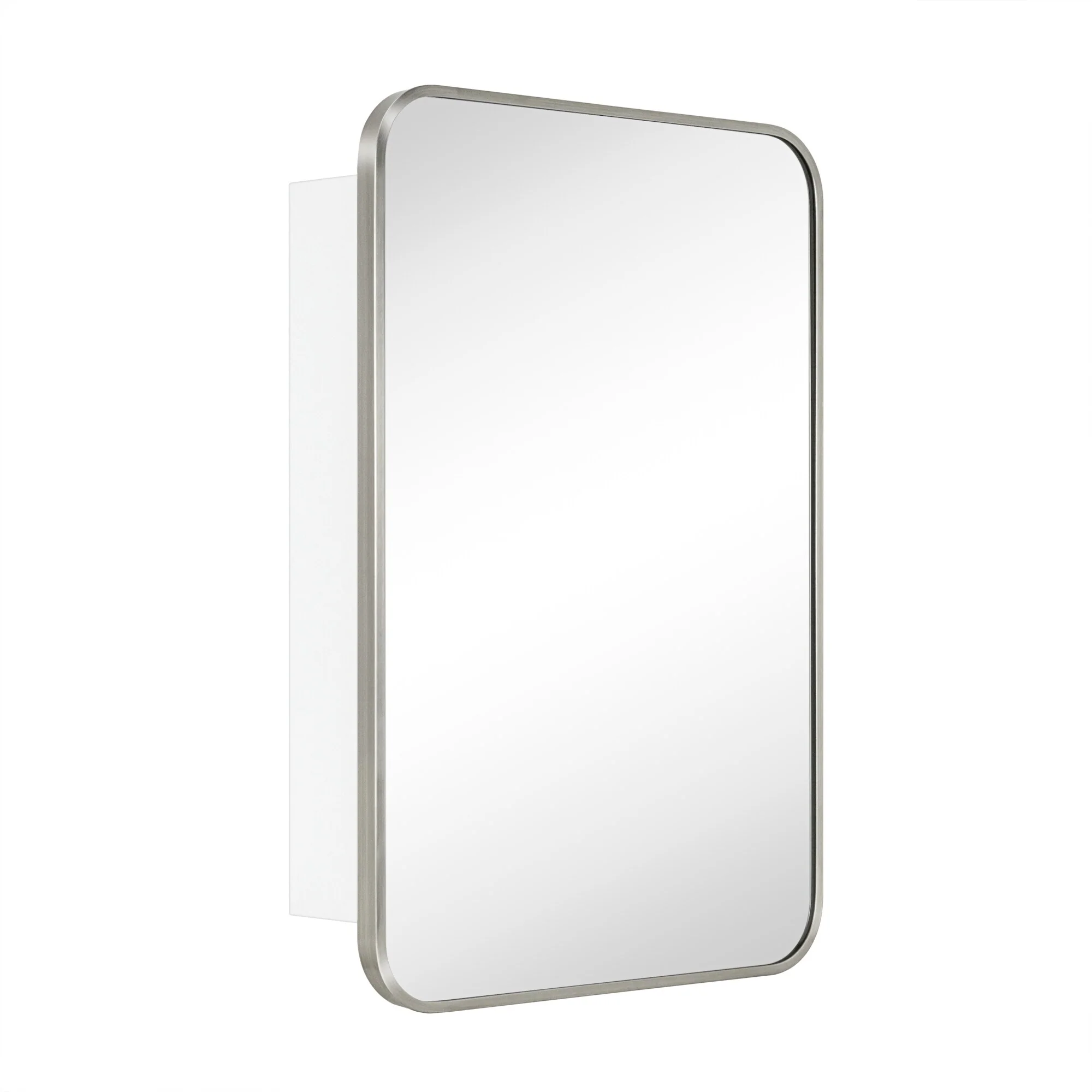 Glossy Silver Modern Rounded Rectangular Aluminum Framed Wall Mounted Bathroom Vanity Mirror with Clear Glass