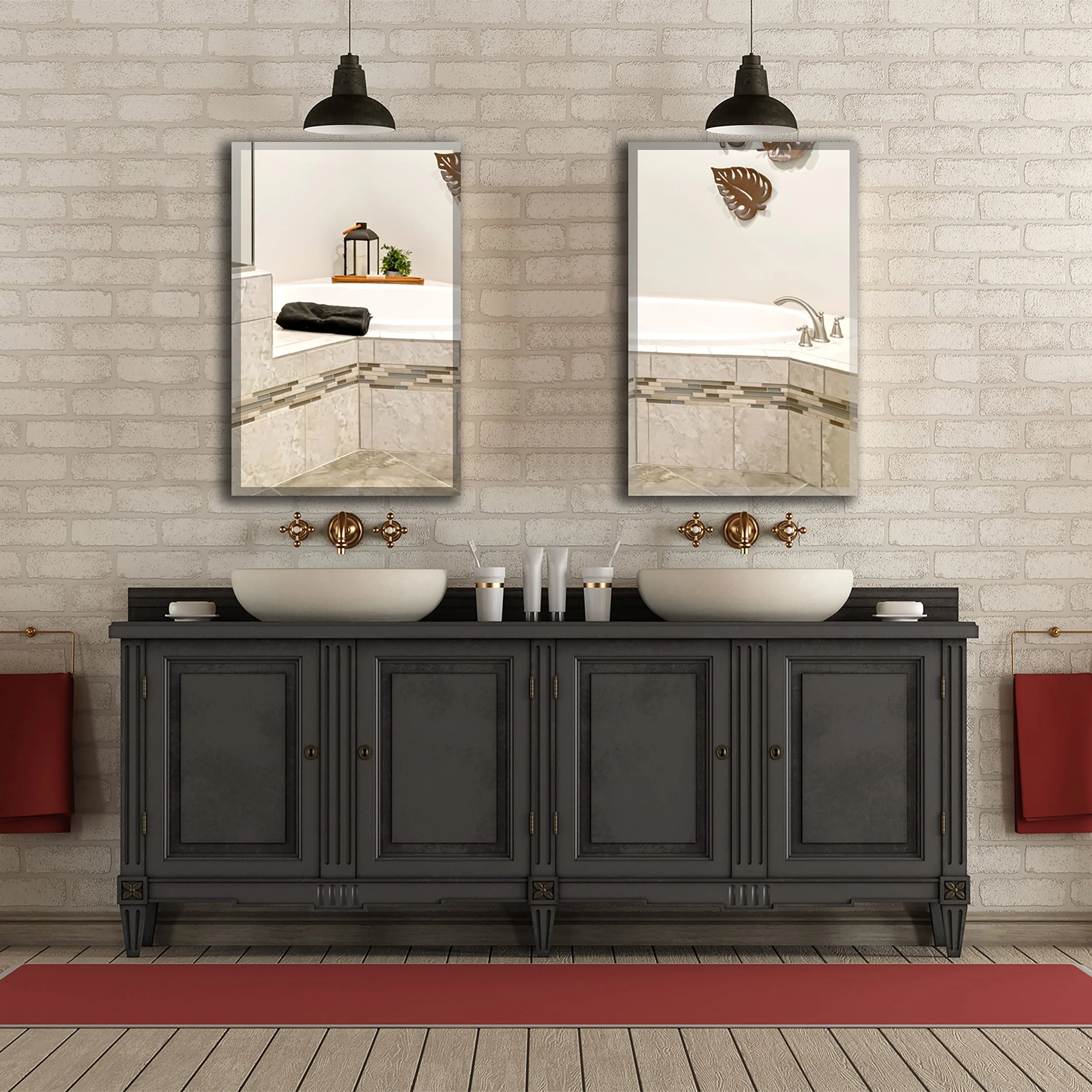 Beveled Bathroom Wall Mirror - Varied Black Frame - Varied Black