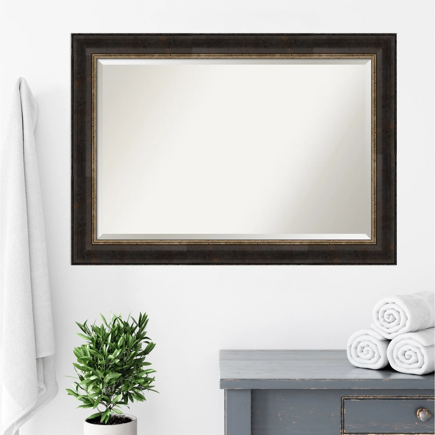 Beveled Wood Bathroom Wall Mirror - Manhattan Bronze Frame