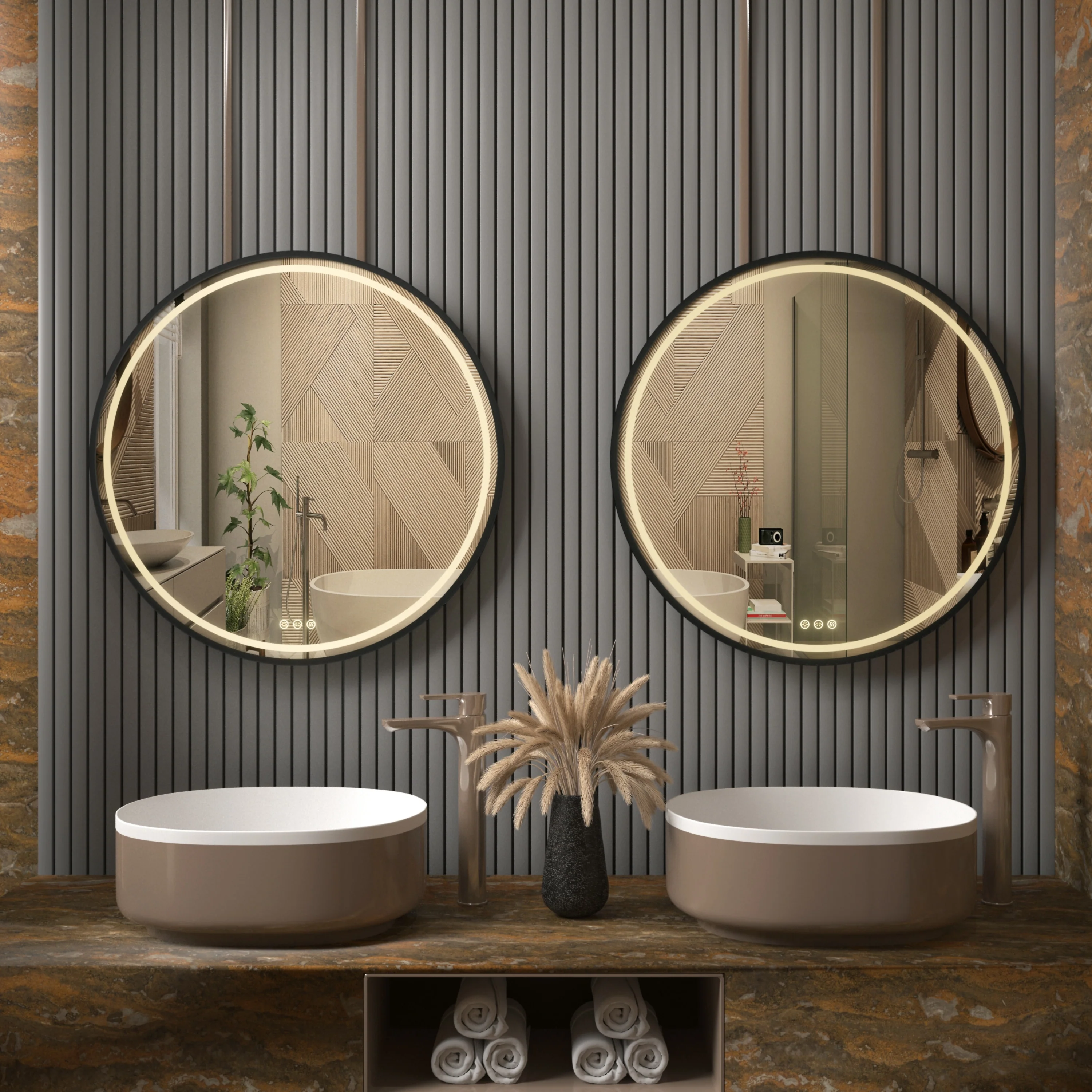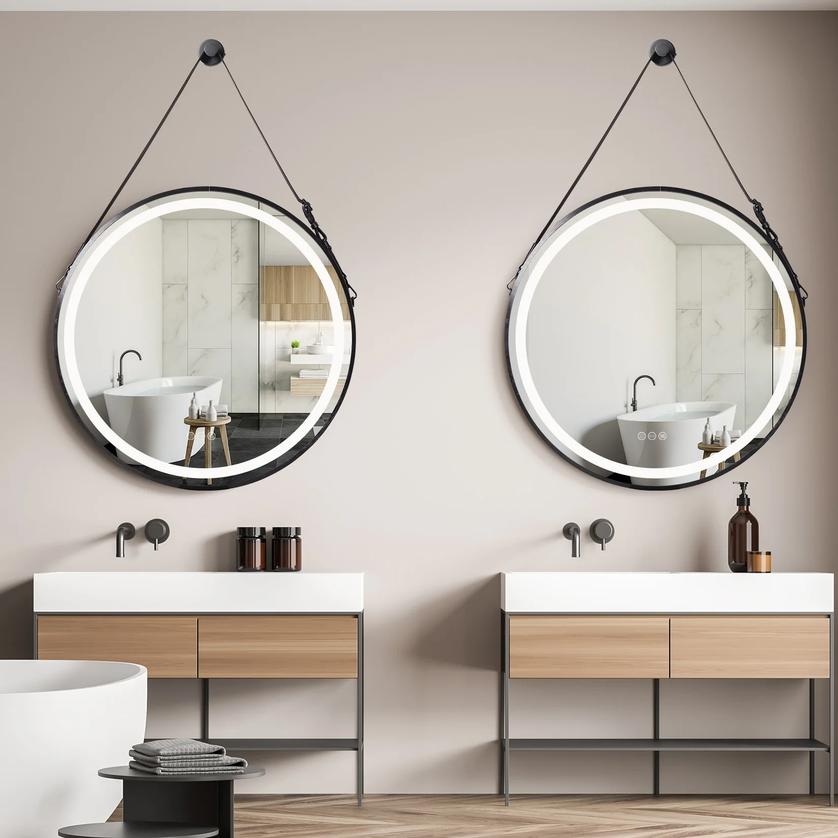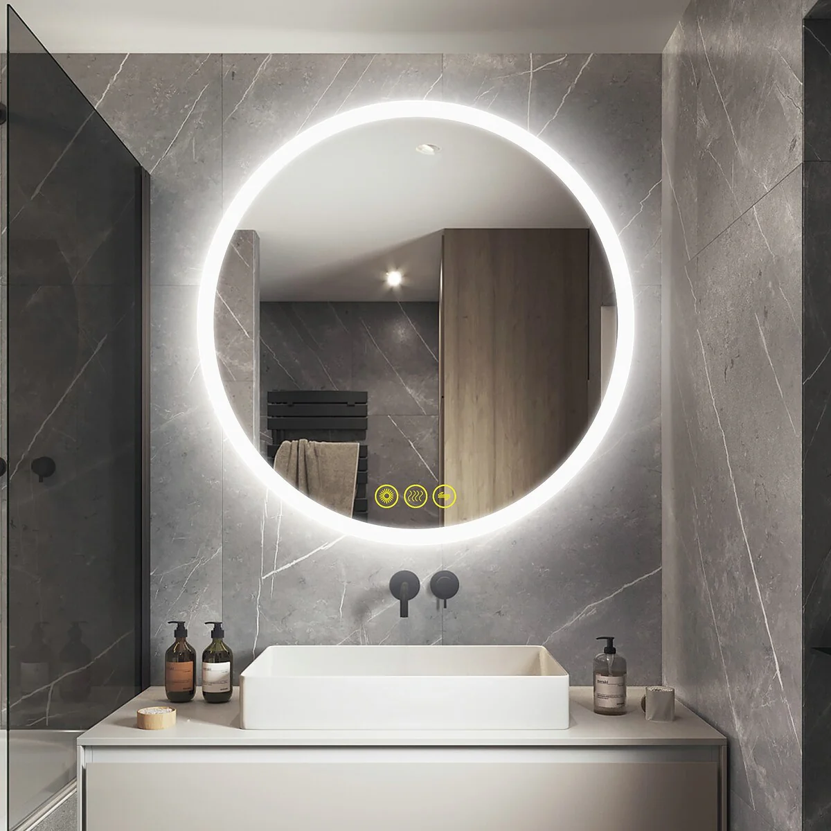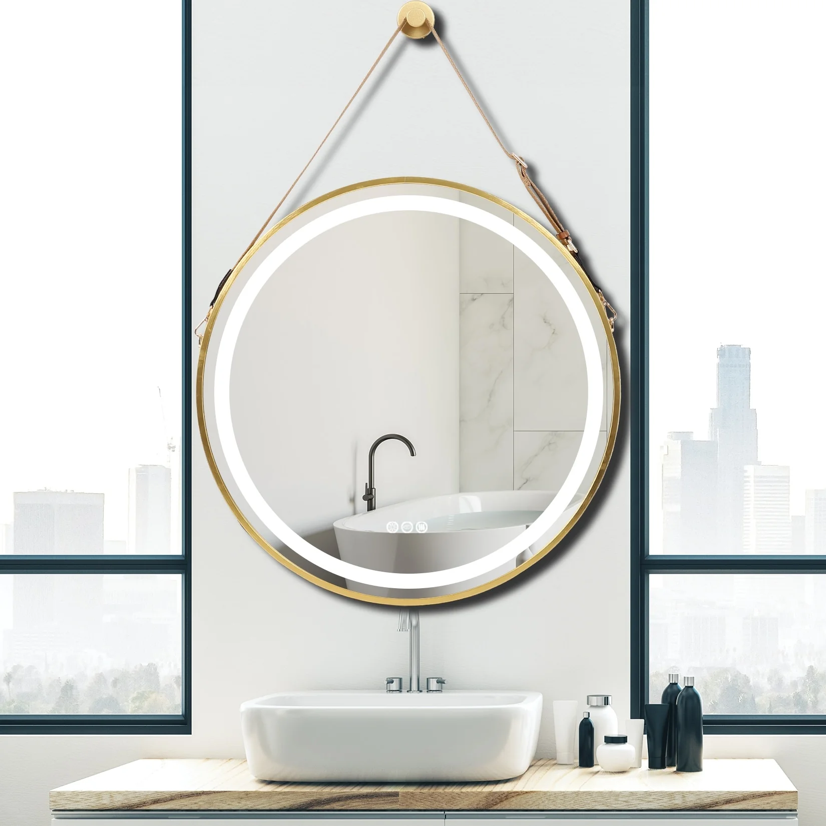 SmartReflect Modern 24" Round LED Dimmable Anti-Fog Frameless Bathroom Vanity Mirror - Clear