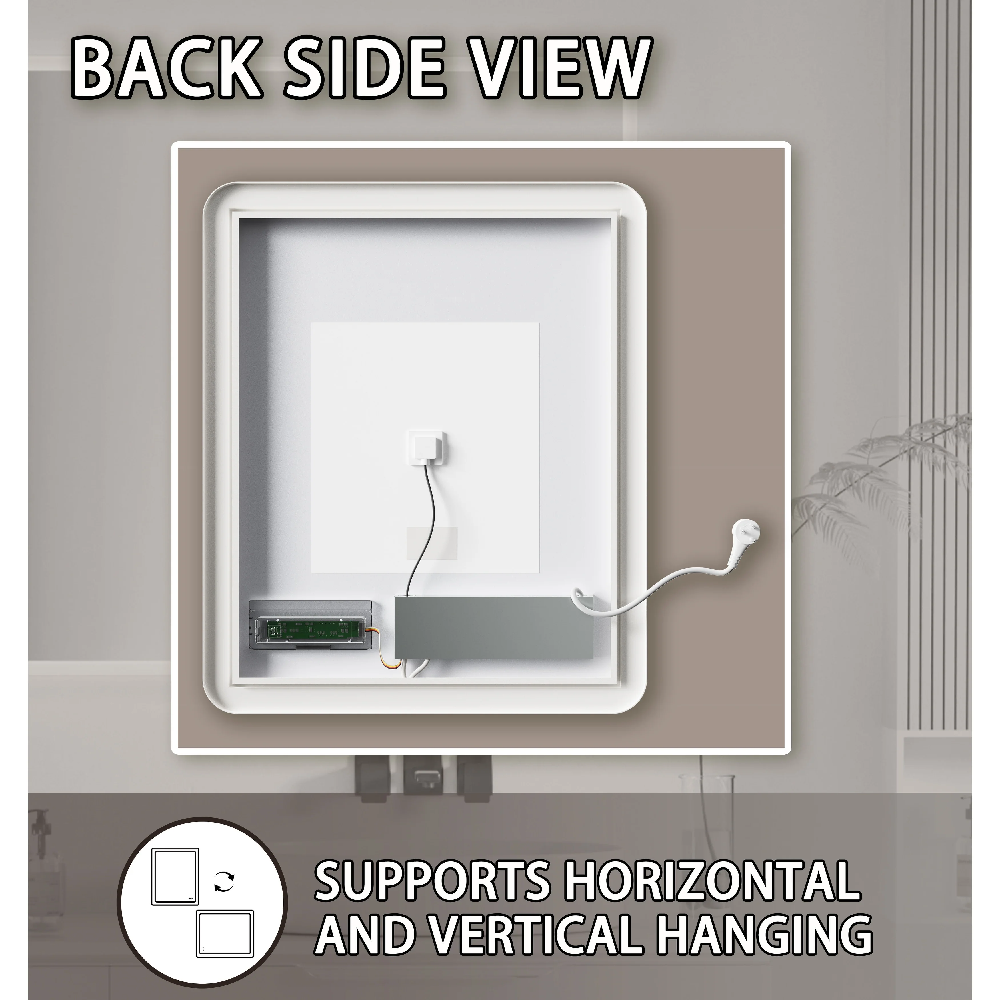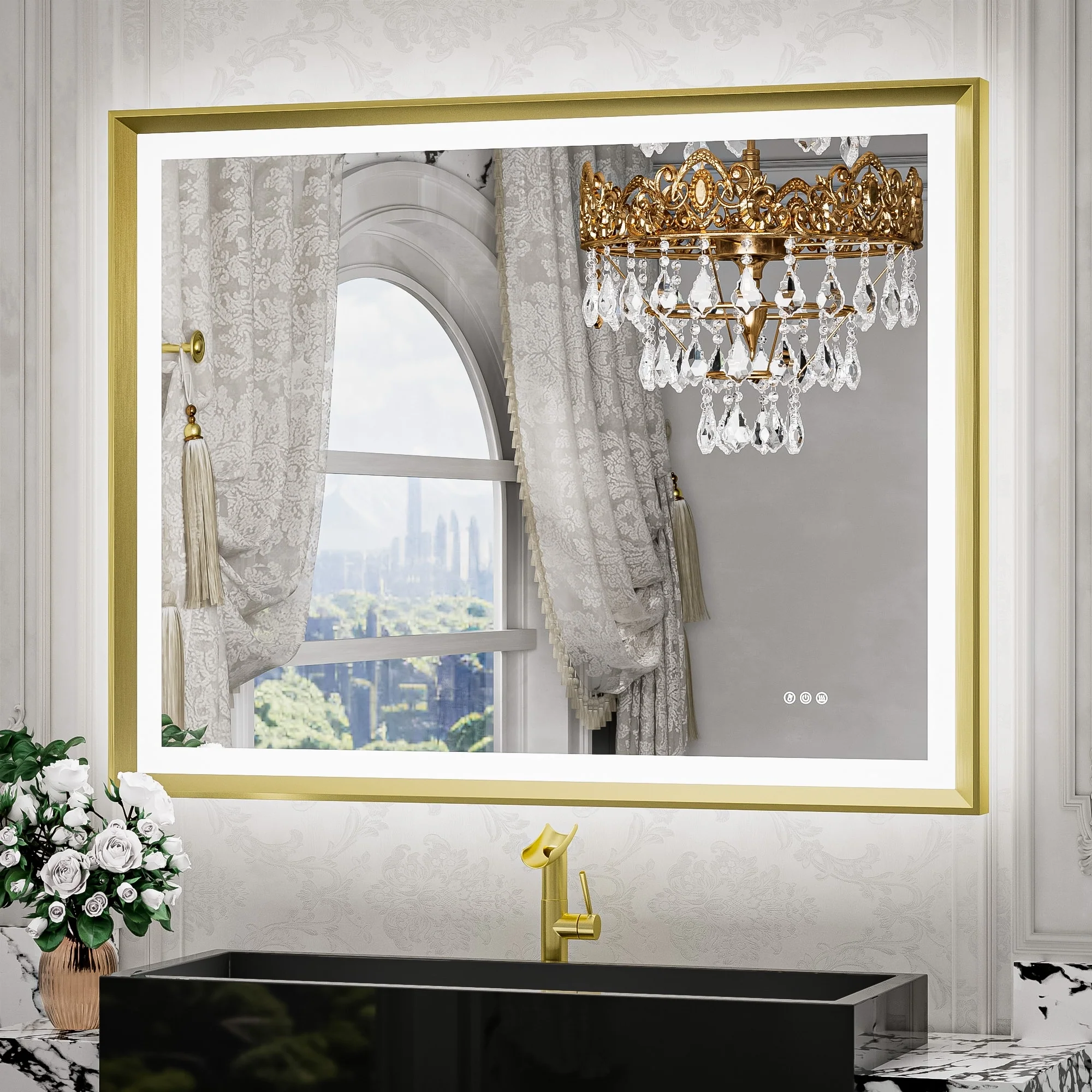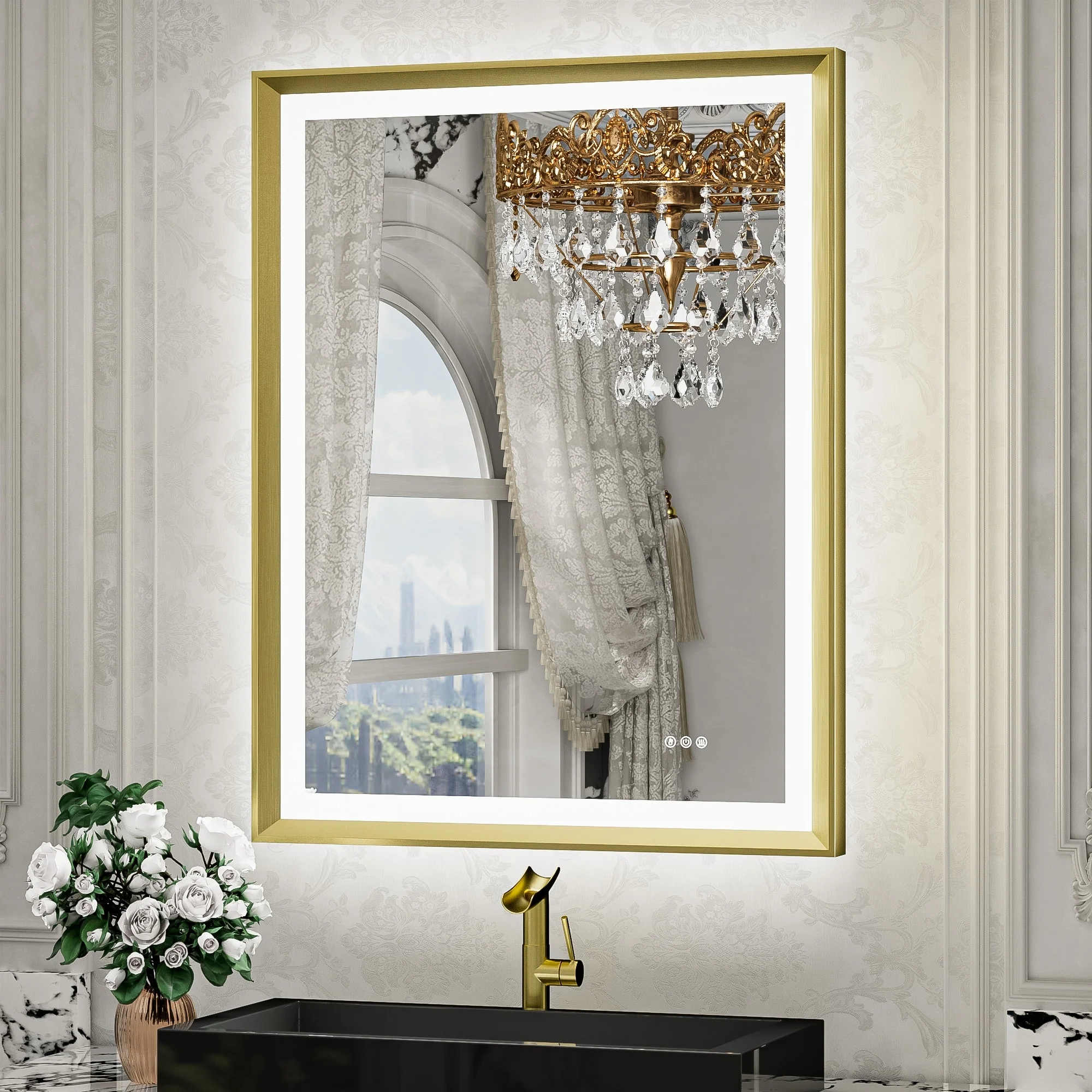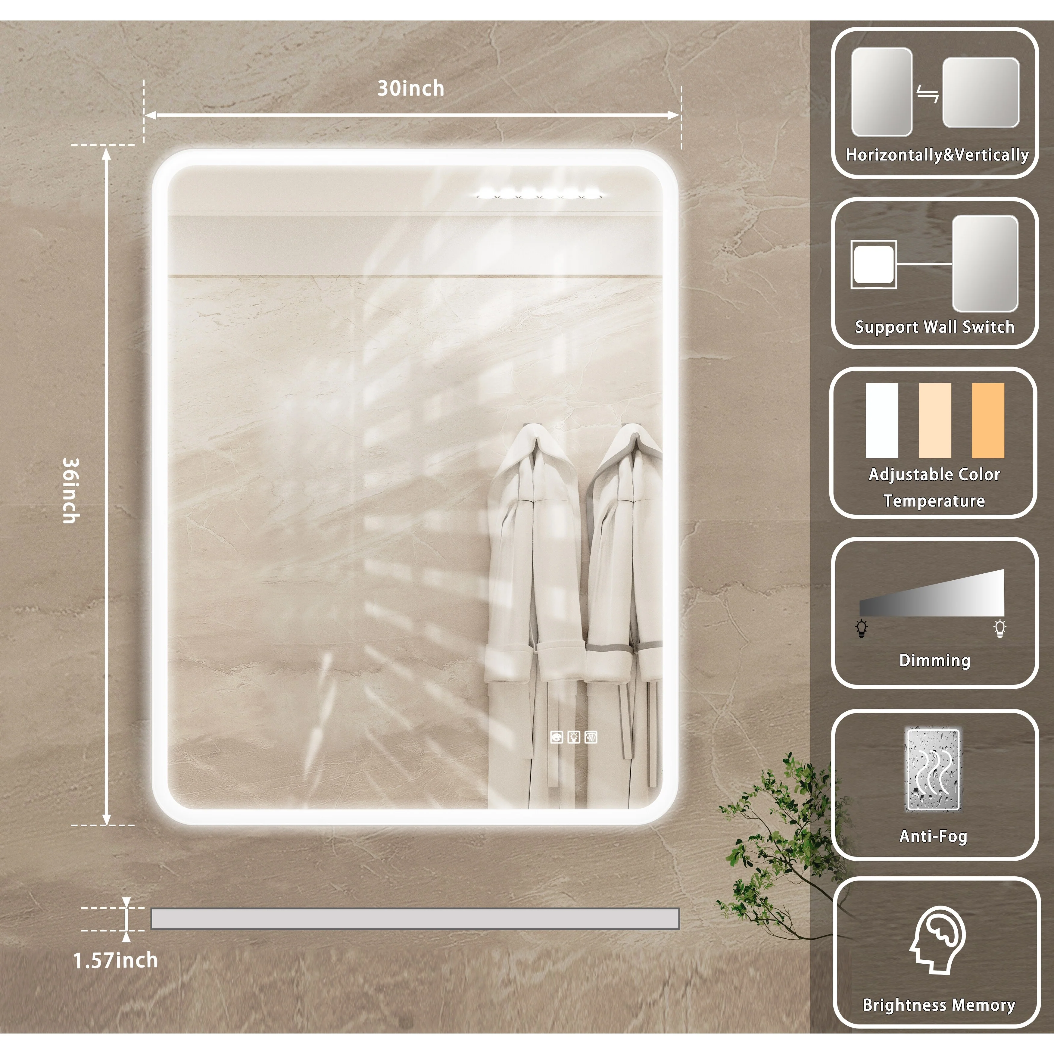 LED Bathroom Vanity Mirror, 36 in. Height, Polished Crystal Glass with Anti-Fog and Horizontal or Vertical Mounting