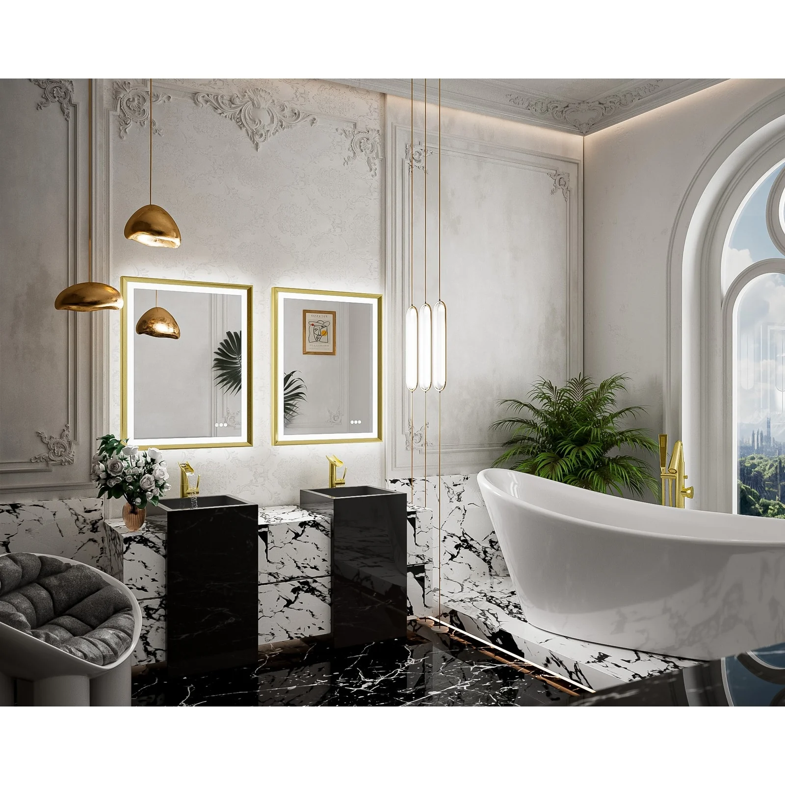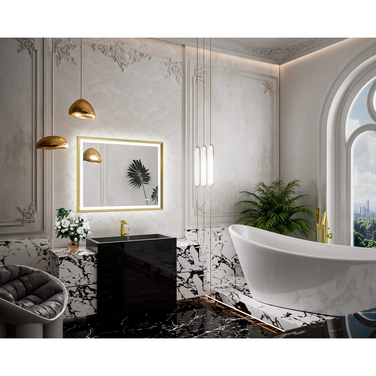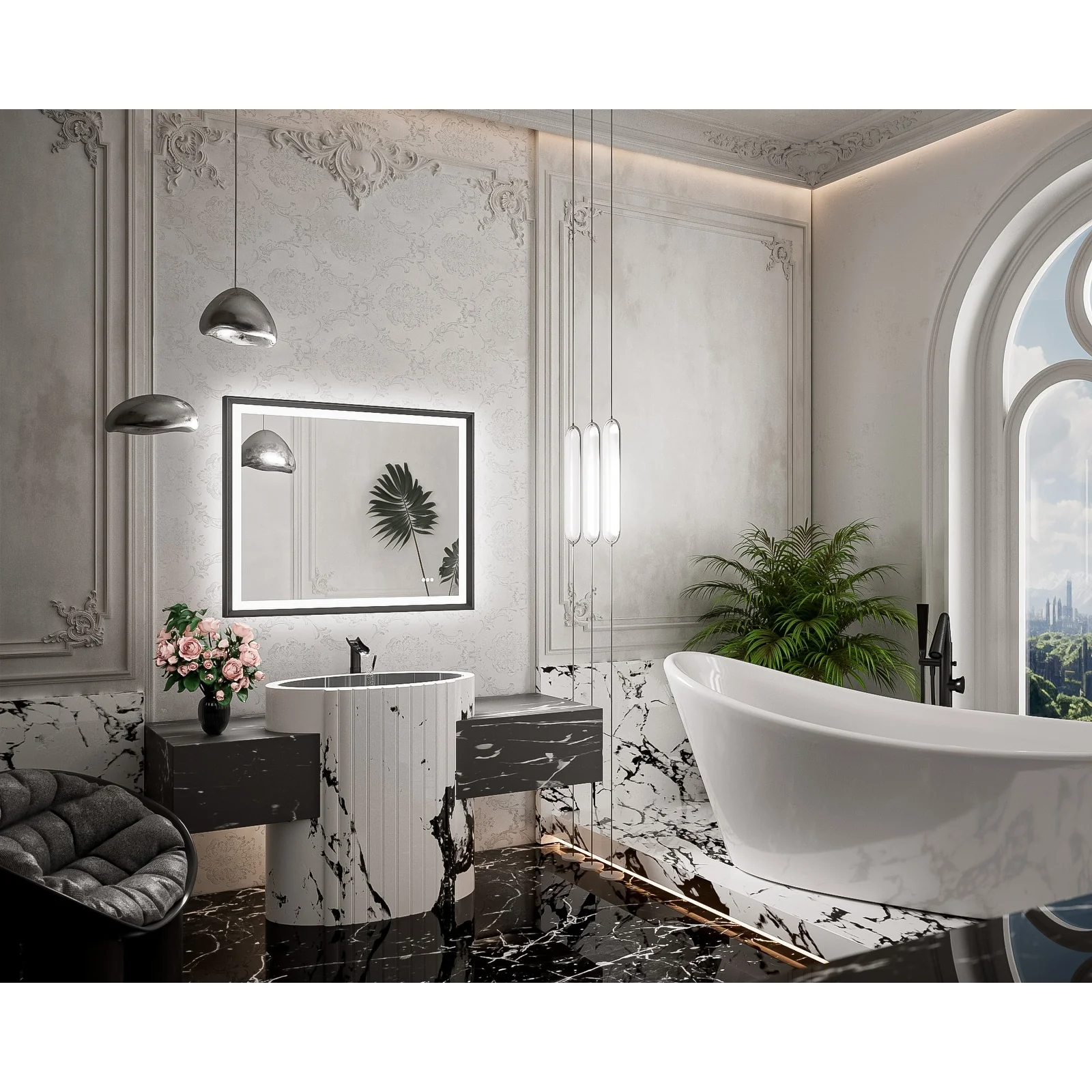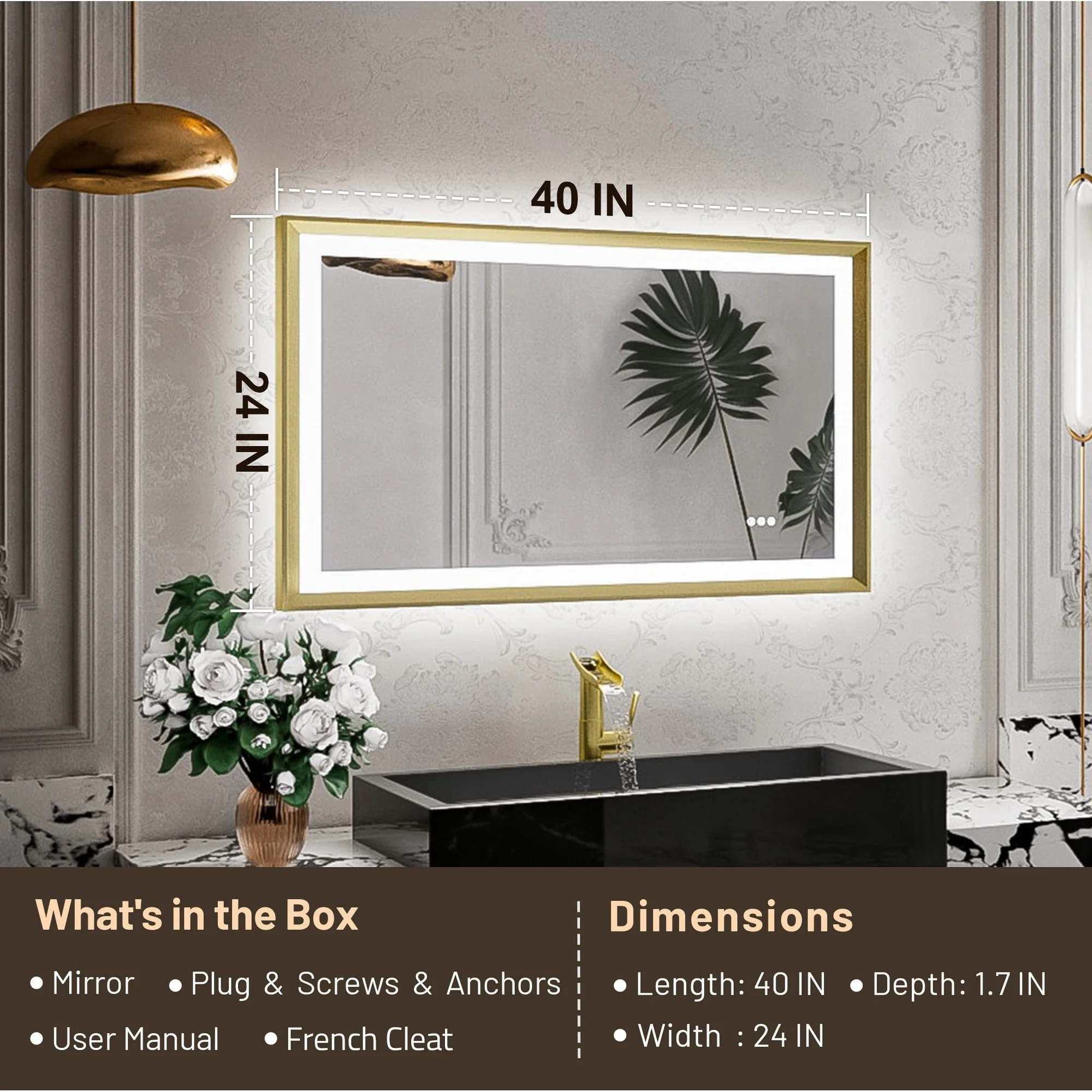 LED Bathroom Vanity Mirror, 36 in. Height, Polished Crystal Glass with Anti-Fog and Horizontal or Vertical Mounting