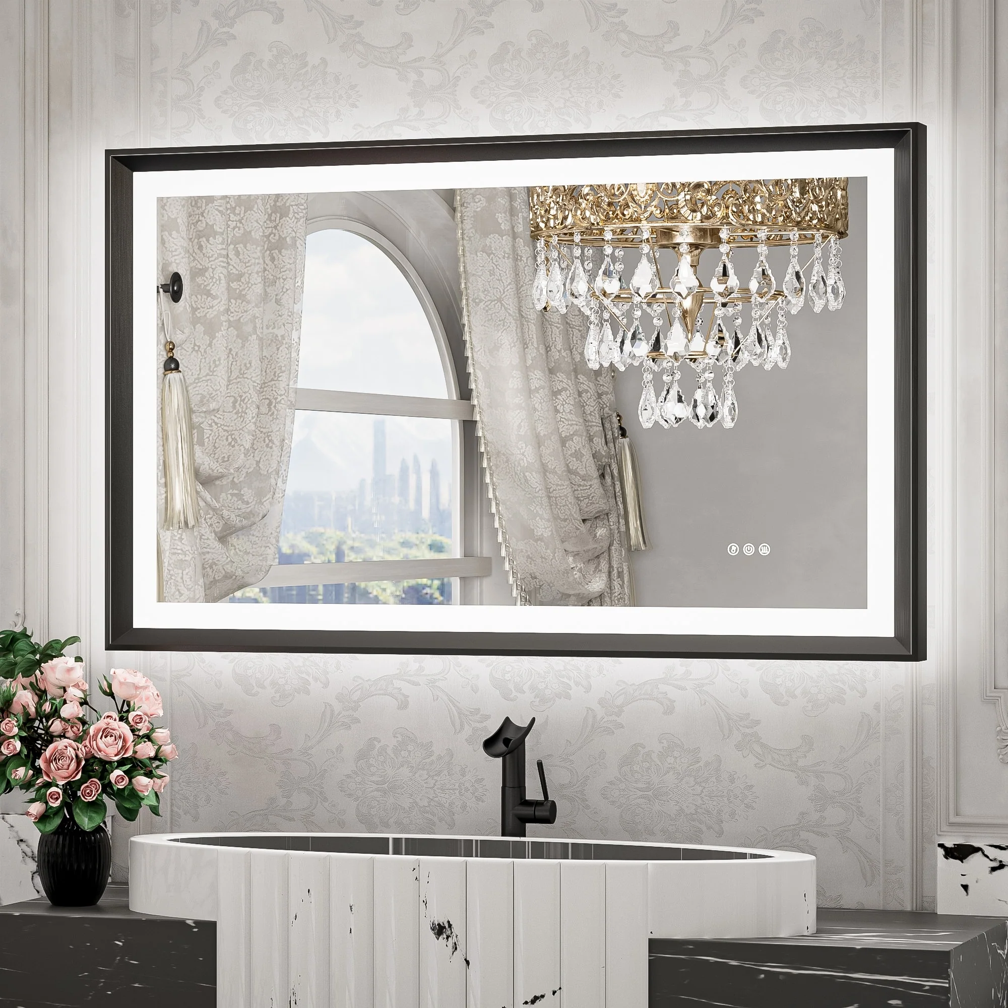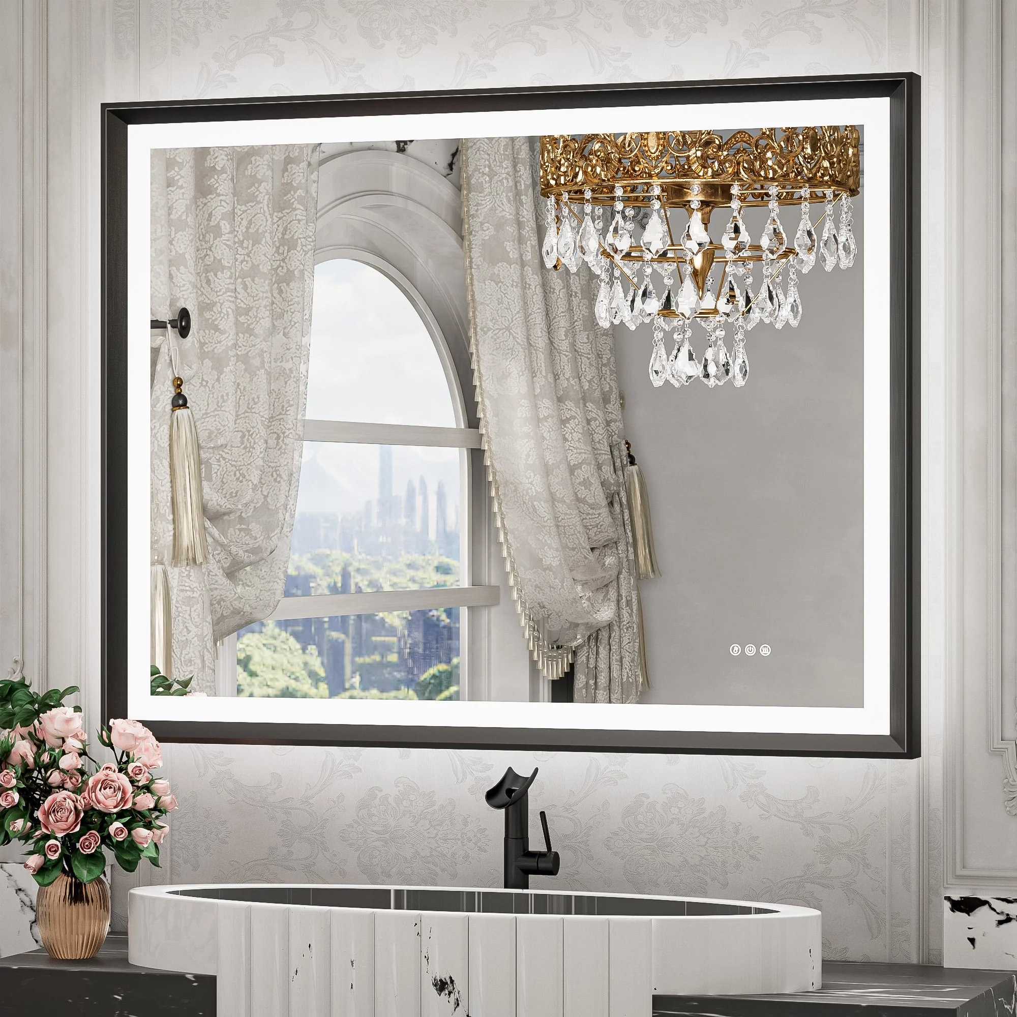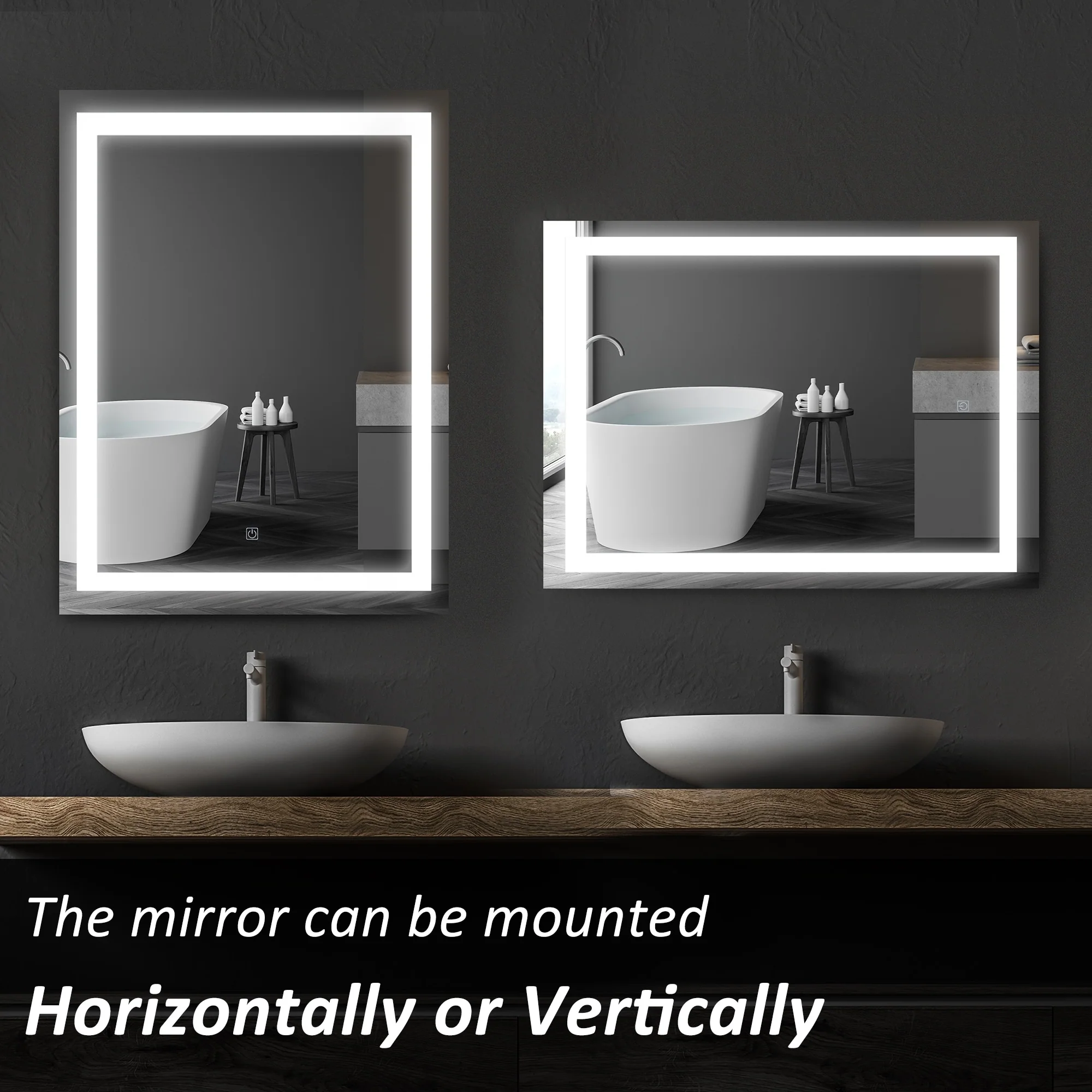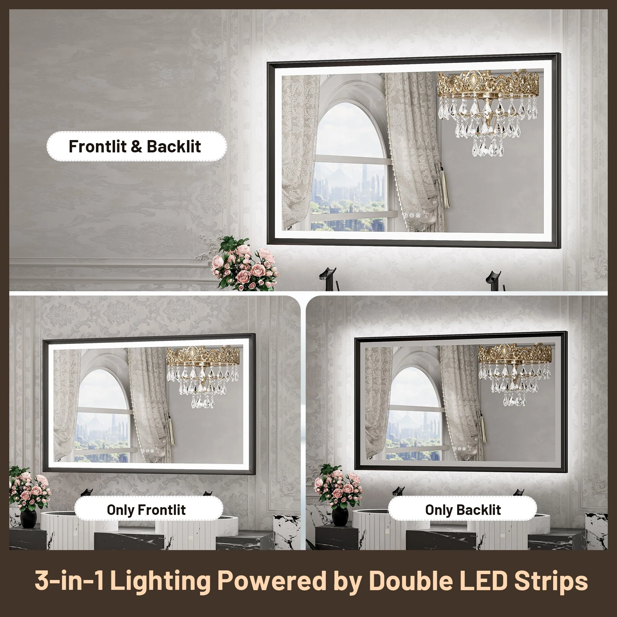 TETOTE LED Frontlit & Backlit Bathroom Vanity Wall Mirror, Metal Frame, Anti Fog, Dimmable